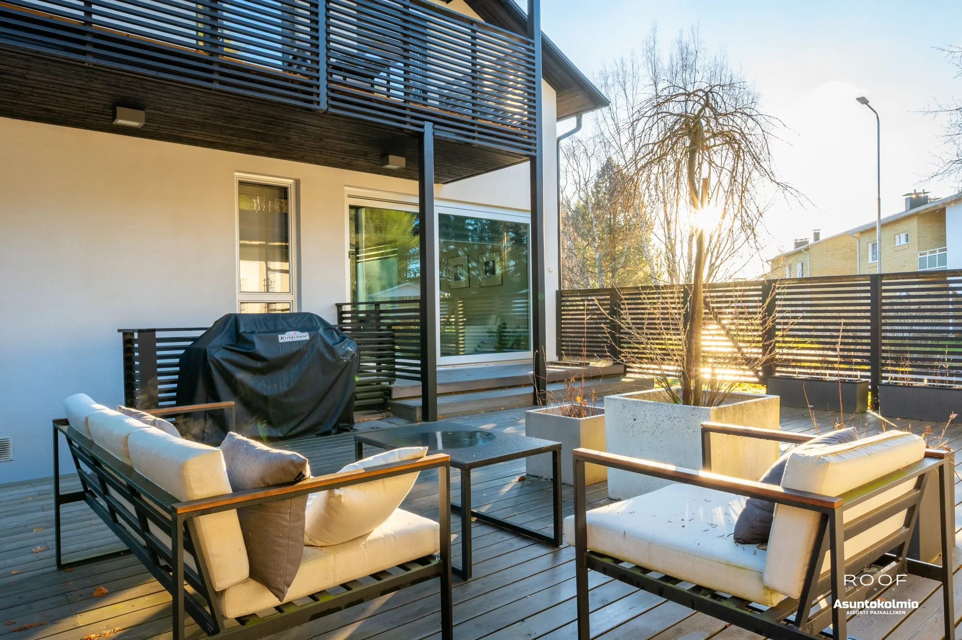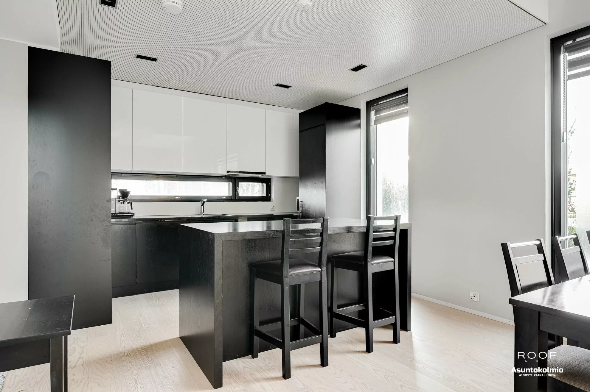 Tervetuloa Knuutilantielle, tähän 2013 valmistuneeseen, lähes 200 neliöiseen asuntoon, jollaisia ei Oulun talousalueella ole montaa. Asunto on kolmessa kerroksessa ja jokaisessa on oma kylpyhuone. Keskikerroksessa on yhden makuuhuoneen lisäksi tilavat keittiö, ruokailutila ja pääolohuone, josta on käynti suurelle terassille. Pääkylpyhuone, sauna ja kodinhoitotila ovat kellarikerroksessa ja makuuhuoneita on yhteensä neljä. Tilaa on siis isommallekin porukalle ...