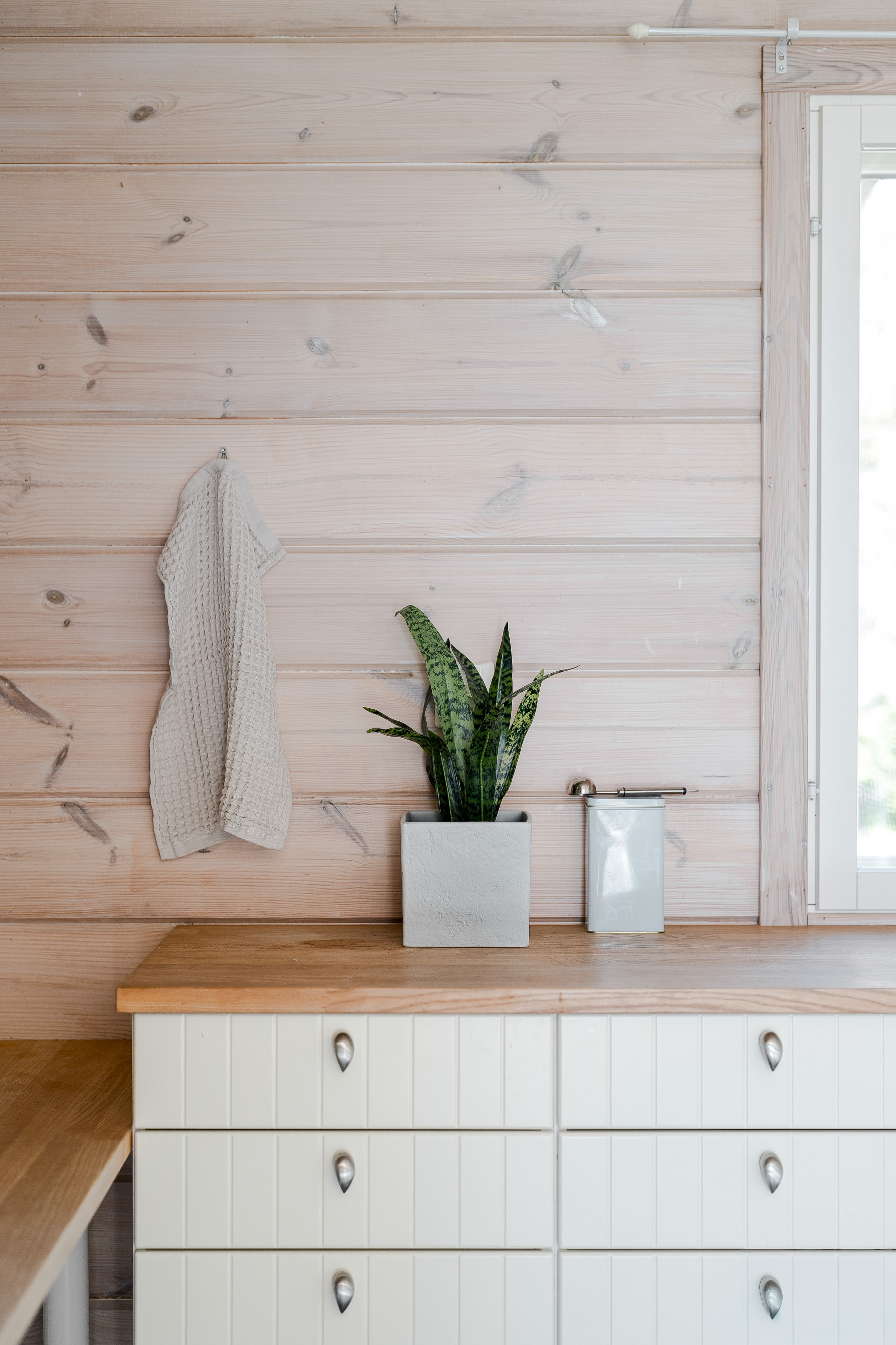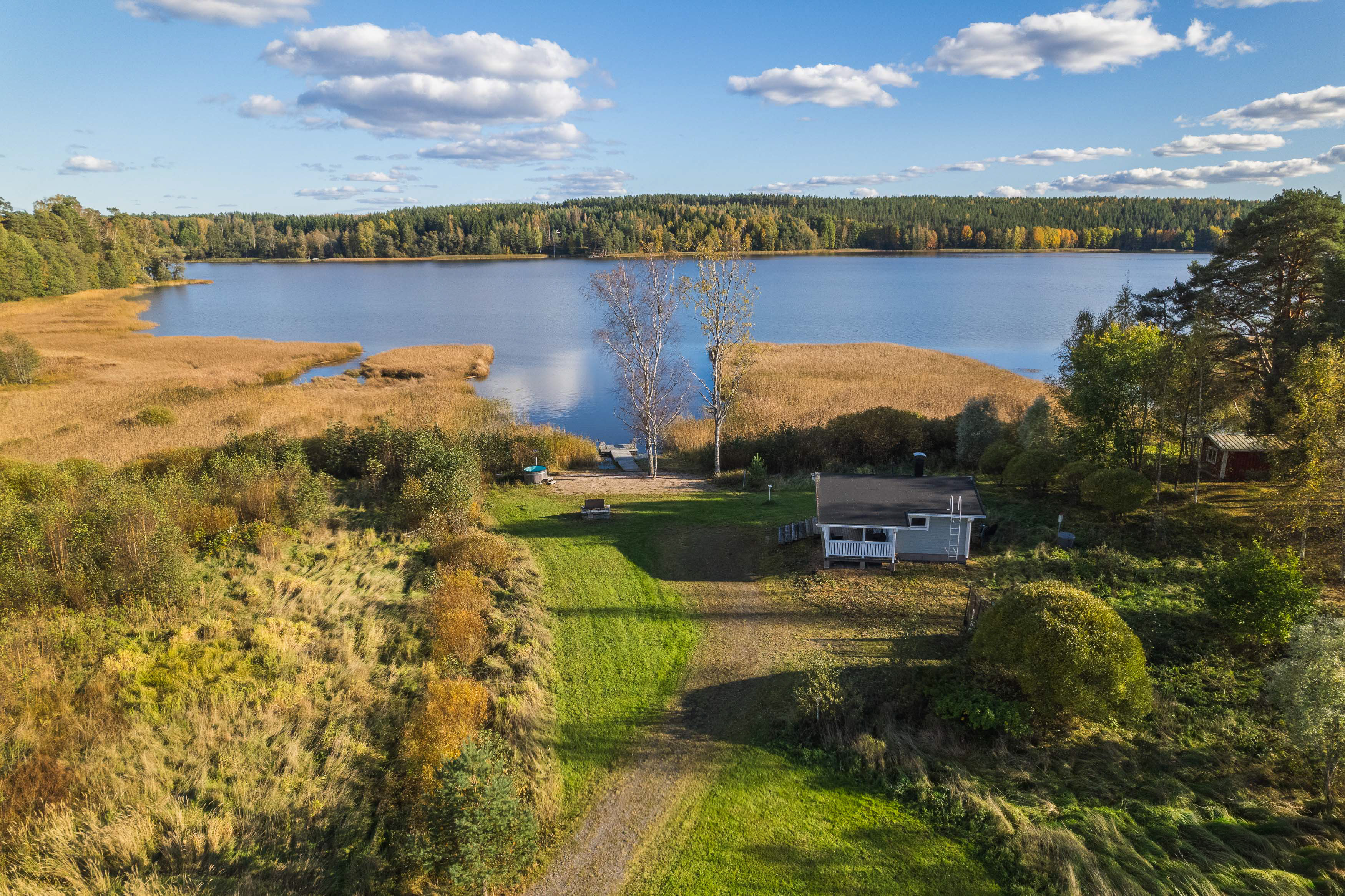Rantaan rakennetun saunan yhteydessä on erillinen takalla varustettu huone sekä iso terassi, jossa kelpaa vilvoitella saunan jälkeen. Kaunis oma hiekkaranta, palju ja laituri.