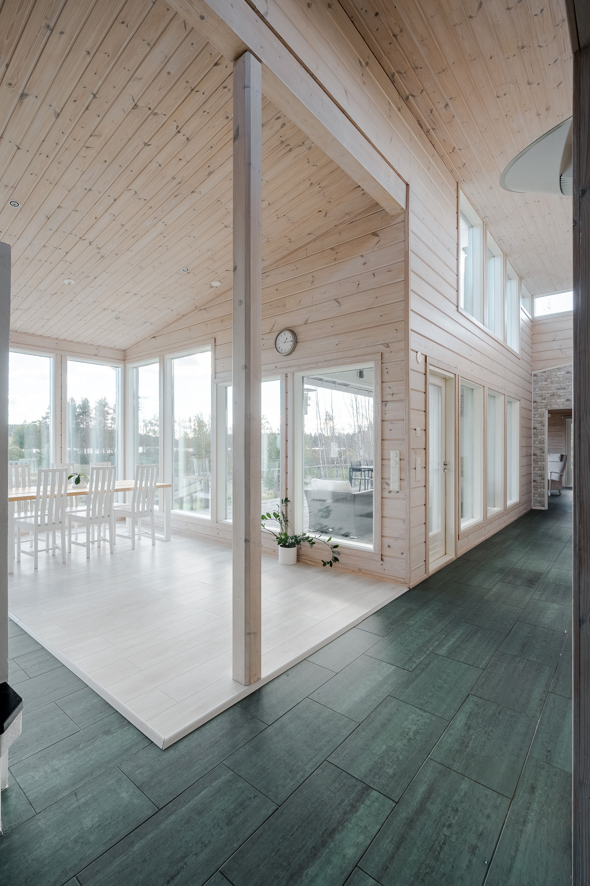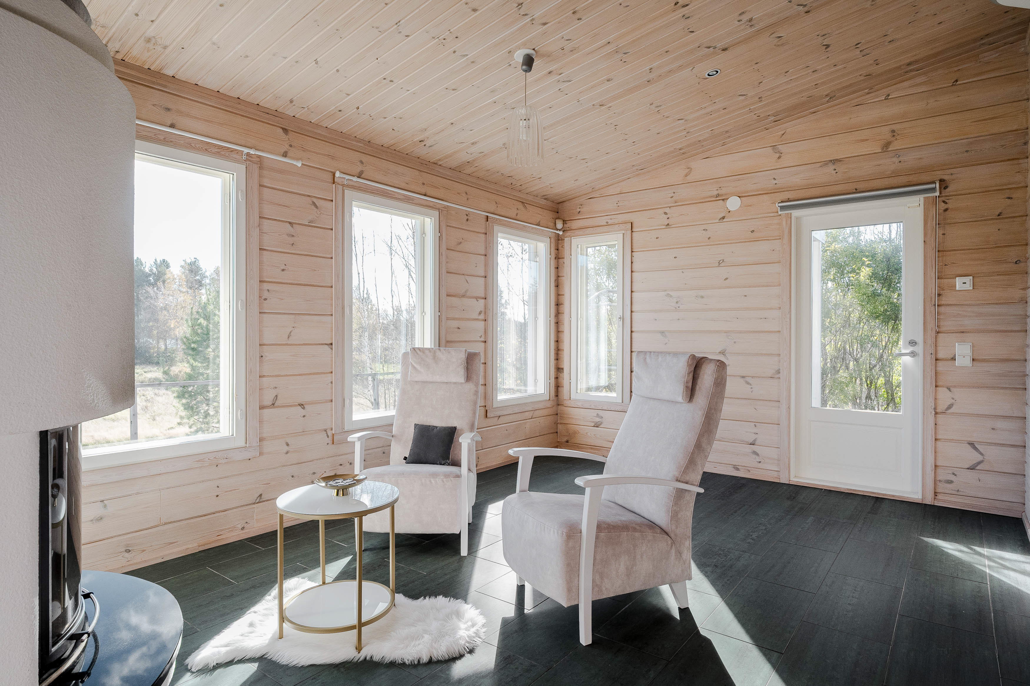 Yksikerroksisesta talosta löytyy 4 makuuhuonetta, olohuone, yhdistetty keittiö ja kodinhoitotila, saunaosasto sekä takkahuone, josta on oma pääsy terassille. Terassilta löytyy vielä oma avotakka tunnelmointia varten. Täällä on tilaa yhdessäoloon ja tarvittaessa löytyy myös omaa rauhaa.