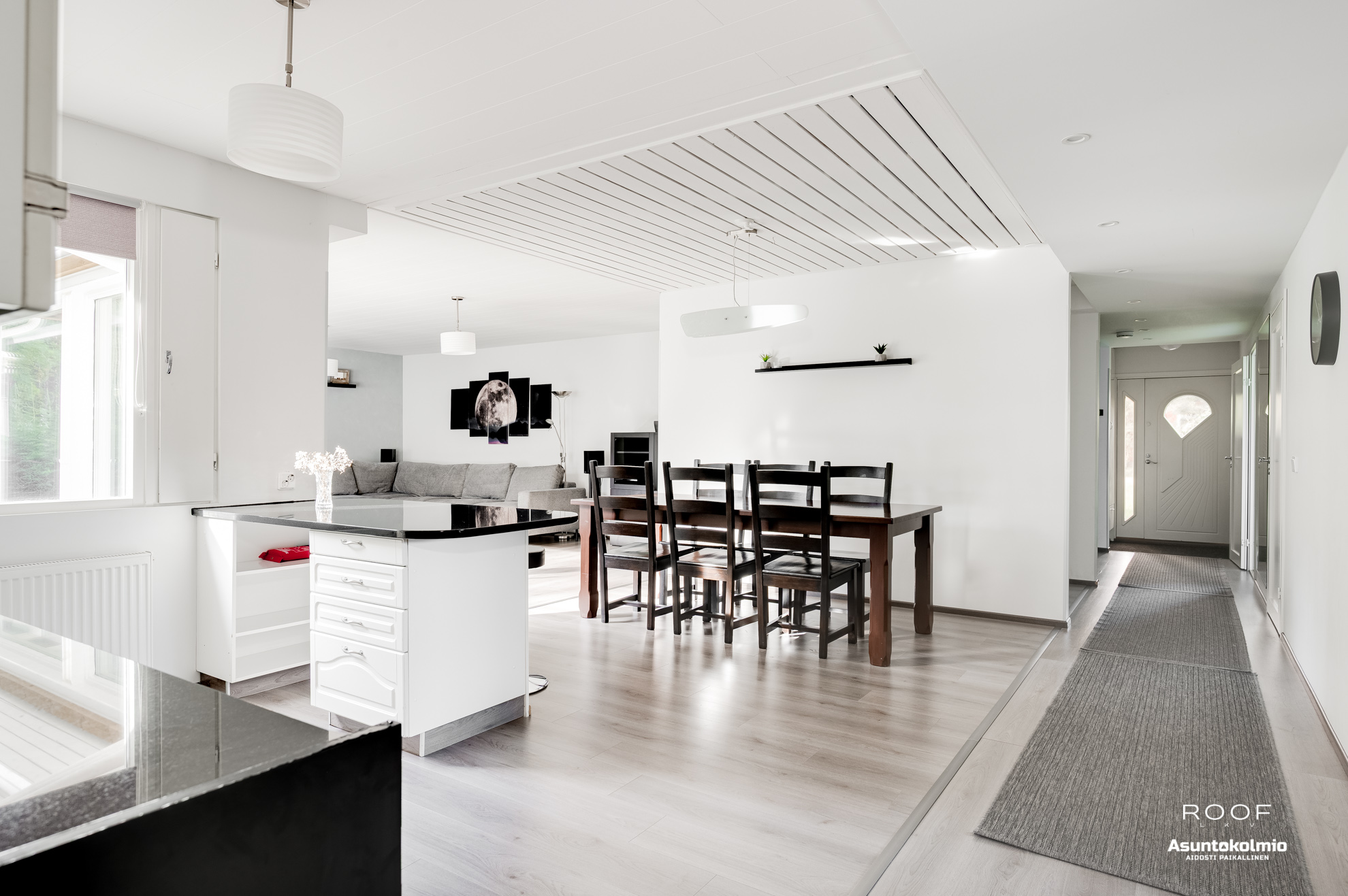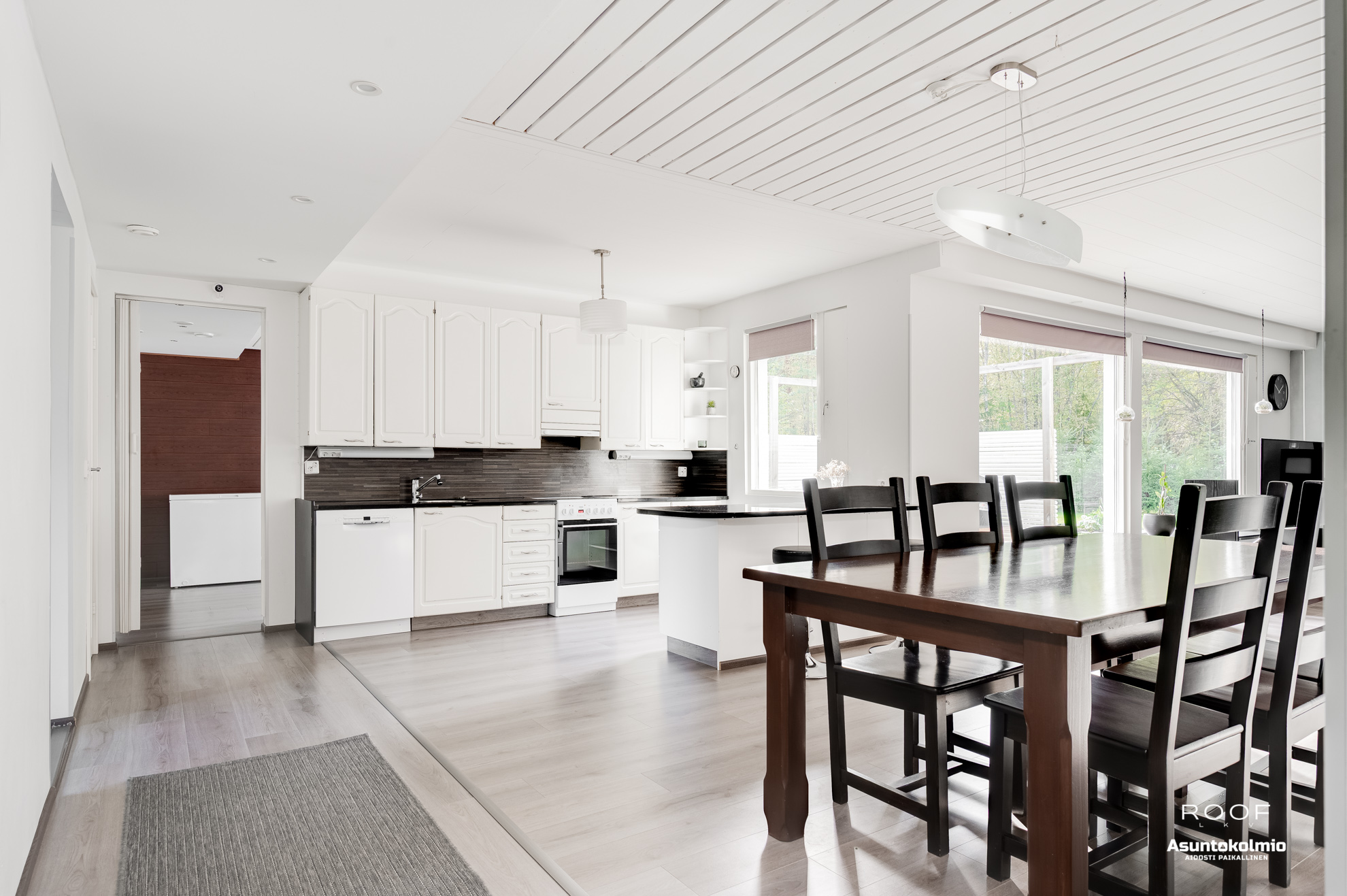 Tervetuloa tutustumaan tähän kodikkaaseen omakotitaloon, joka sijaitsee viihtyisällä alueella ja omalla tontilla. Kodin sydän on tilava ja valoisa keittiö, jossa on hyvin tilaa ruoanlaittoon ja yhdessäoloon. Keittiö yhdistyy luontevasti avaraan olohuoneeseen, joka tarjoaa erinomaiset puitteet perheen yhteisiin hetkiin ja viihtymiseen.