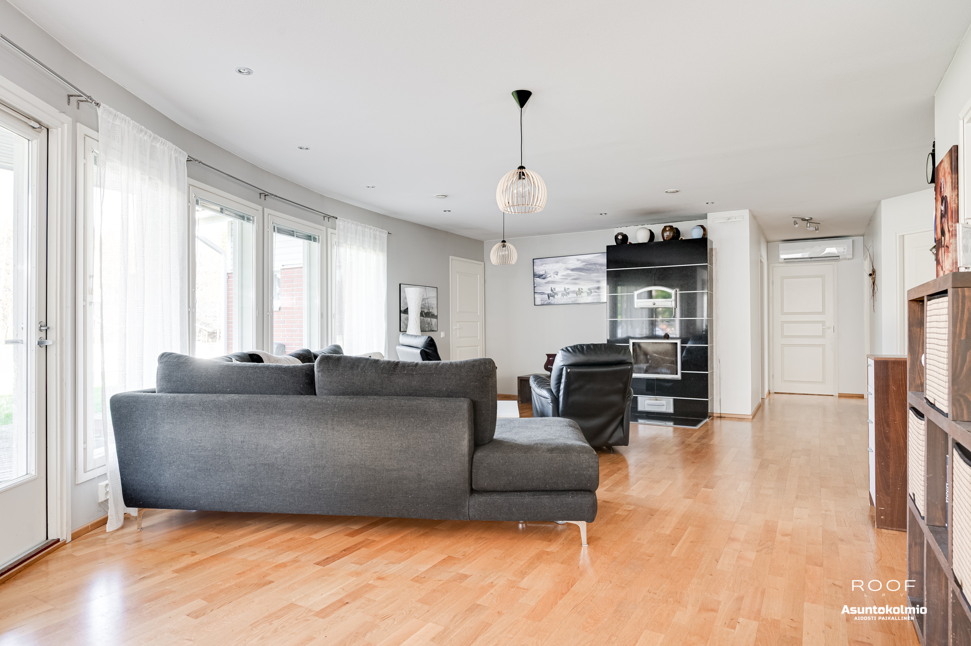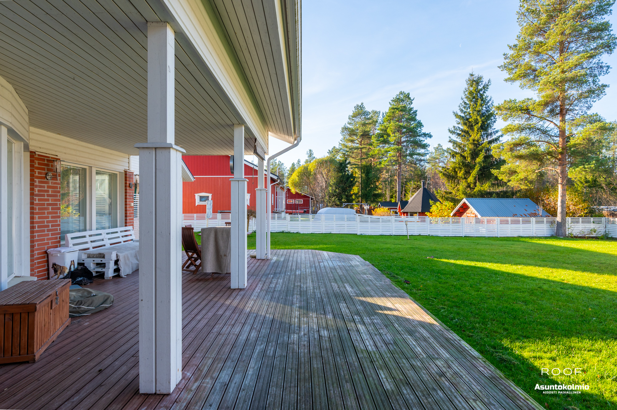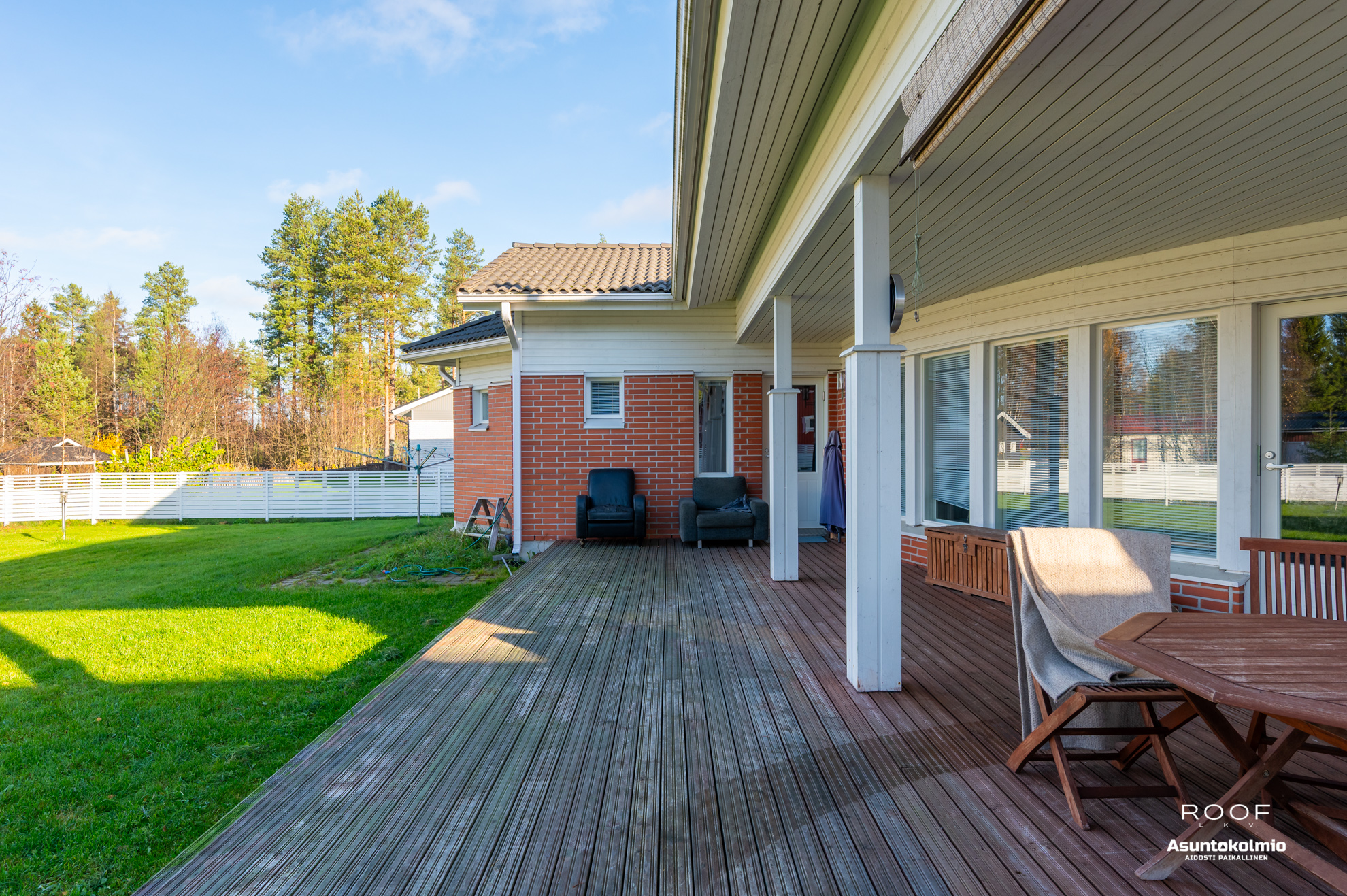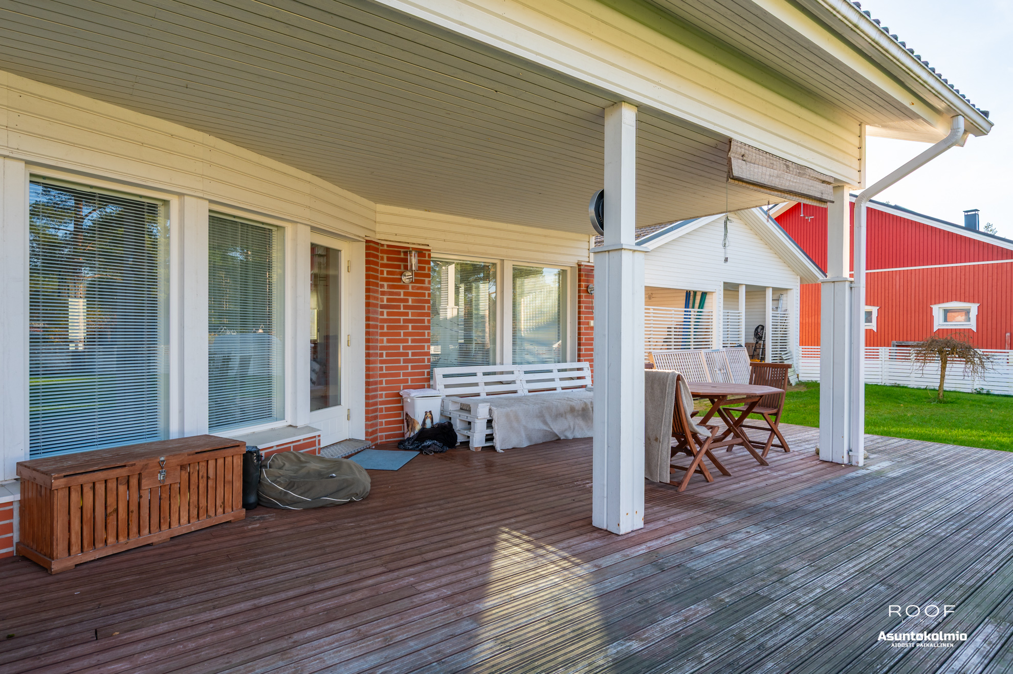 Tämä upea kokonaisuus erottuu edukseen – kyse ei ole tavanomaisesta talosta, vaan huolella suunnitellusta ja laadukkaasti rakennetusta kodista. Jo rakennuksen ylväs ulkomuoto ja materiaalivalinnat kertovat viimeistellystä tyylistä ja ajattomasta kauneudesta. Sisätiloissa viihtyisyyttä lisää mm. Puustellin kiintokalusteet, tilavat makuuhuoneet suurine kaapistoineen, oleskelutilan upea varaava takka/ leivinuuni, sekä kylpyhuone kahde...