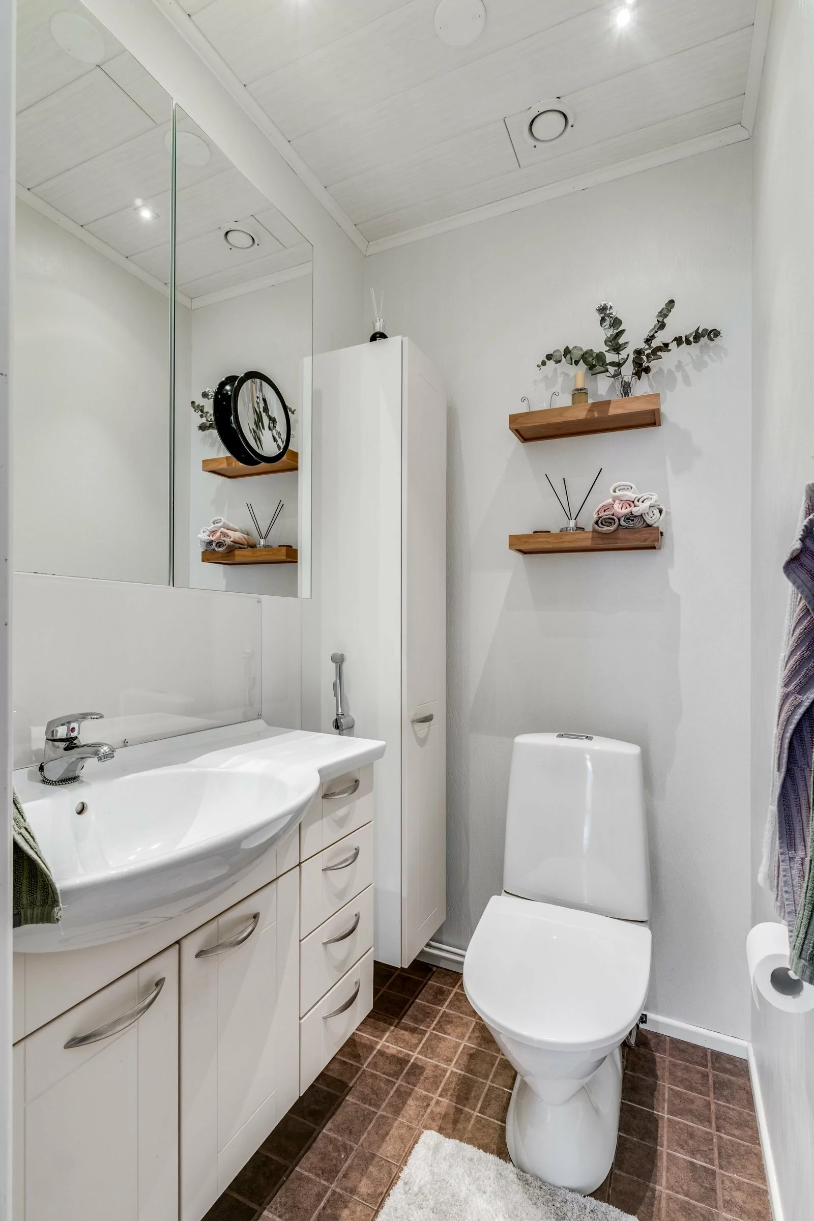 Kolme makuuhuonetta ja kaksi askartelu-/harrastetilaa alakerrassa tarjoavat runsaasti tilaa perheen tarpeisiin. Saunassa pääset nauttimaan rentouttavista löylyistä, ja kodinhoitohuoneen oma uloskäynti helpottaa arjen sujuvuutta.