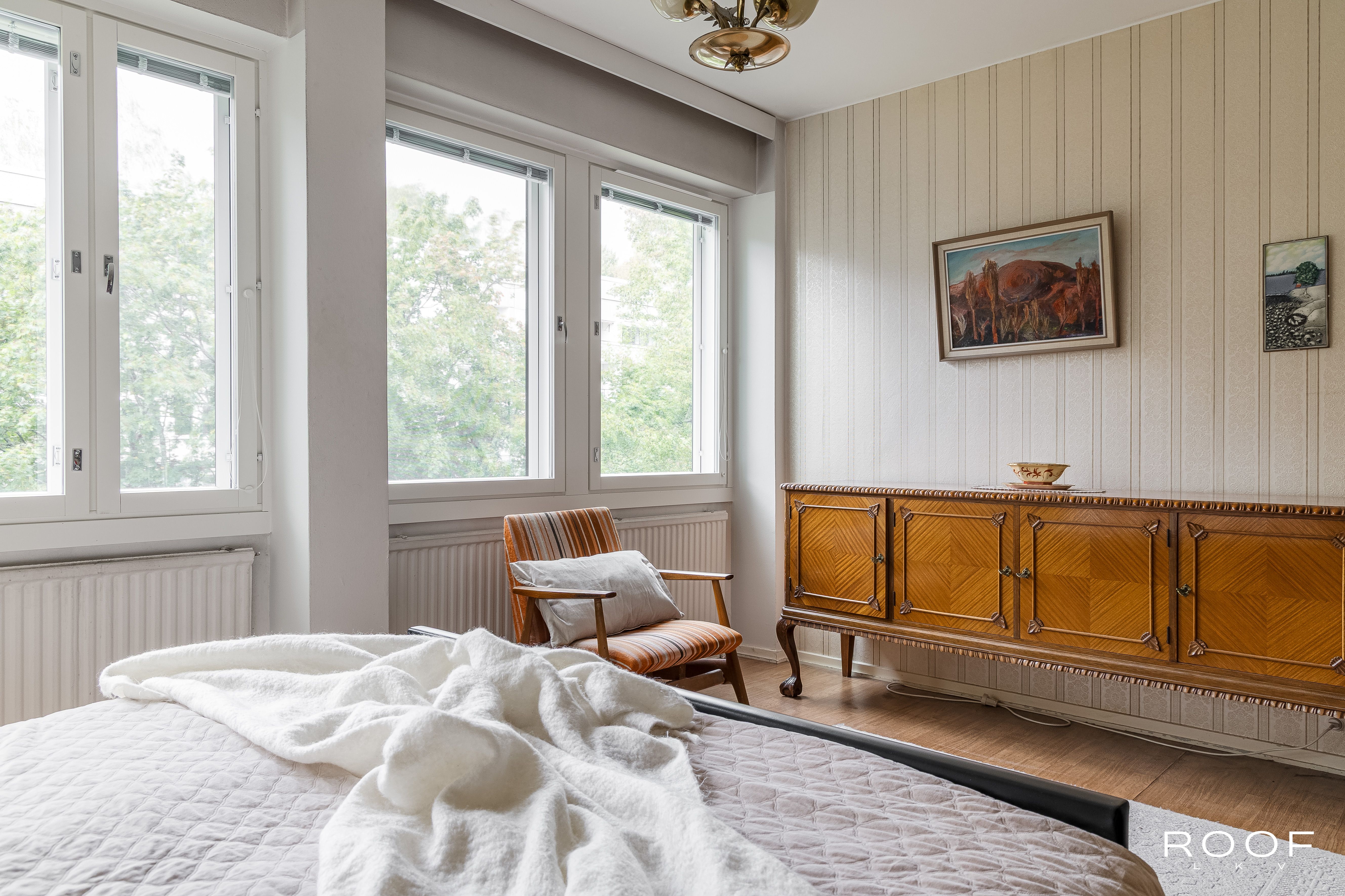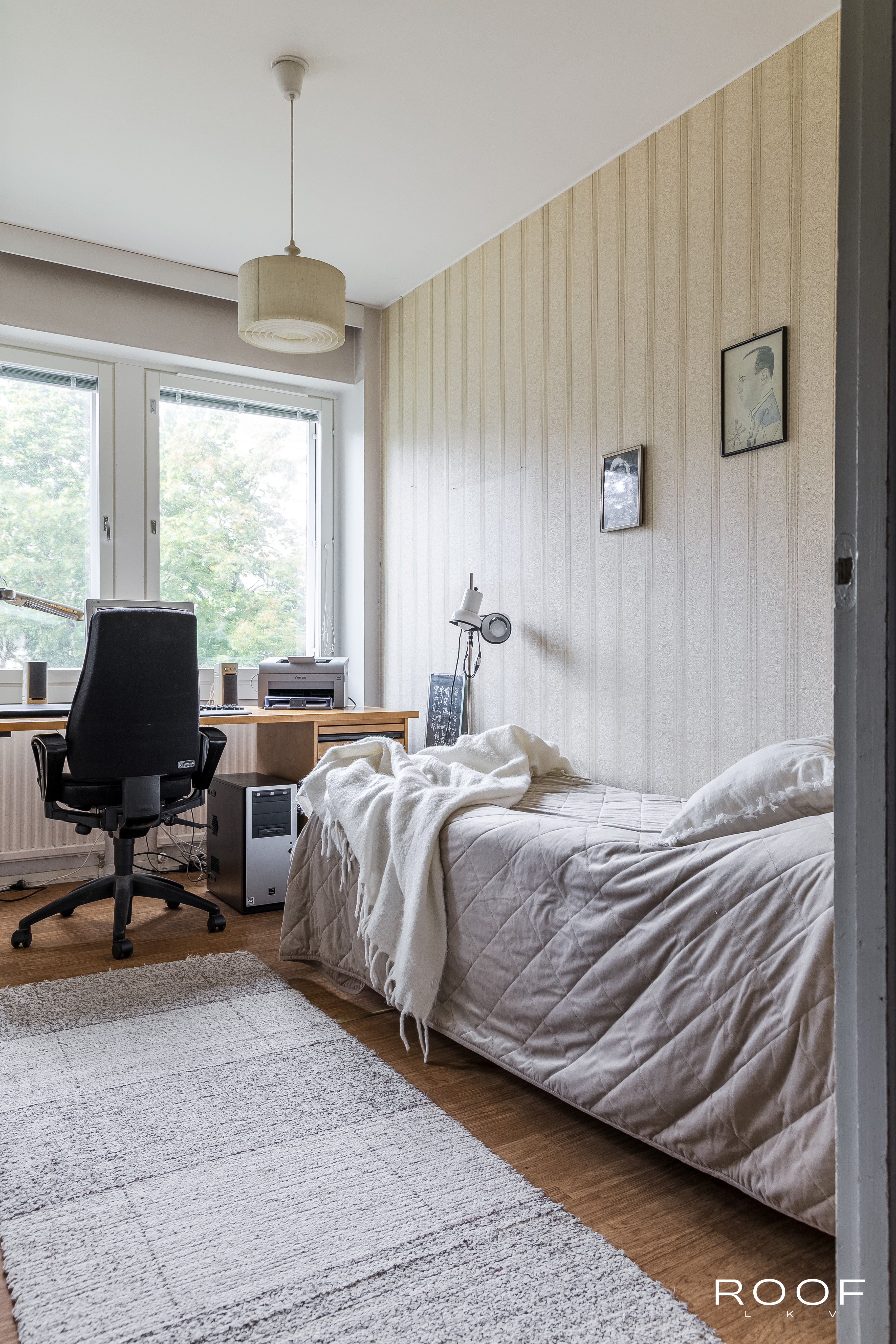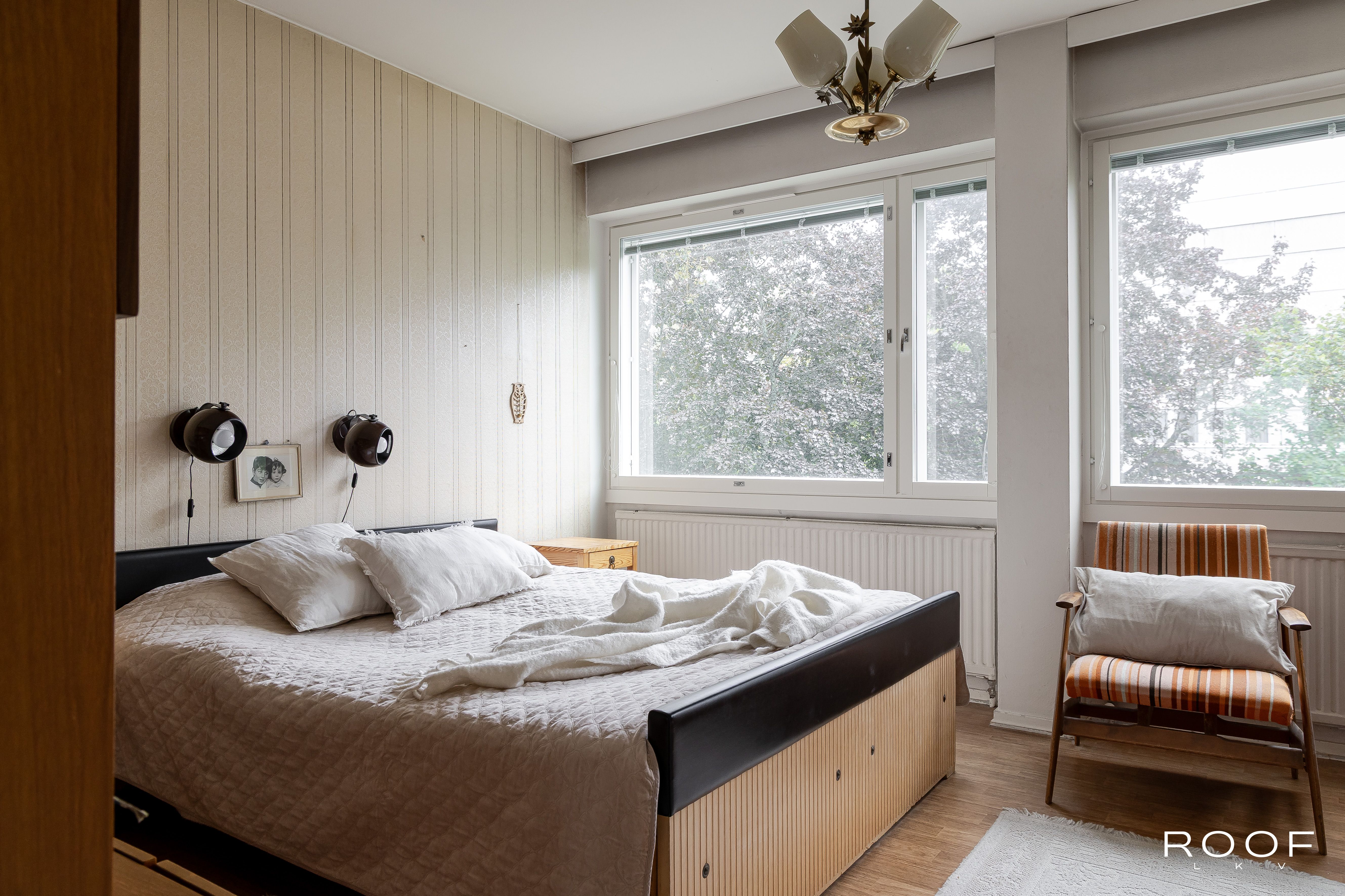Asunnossa on yhteensä neljä makuuhuonetta, joista on myös tarvittaessa helppo kaataa seiniä.