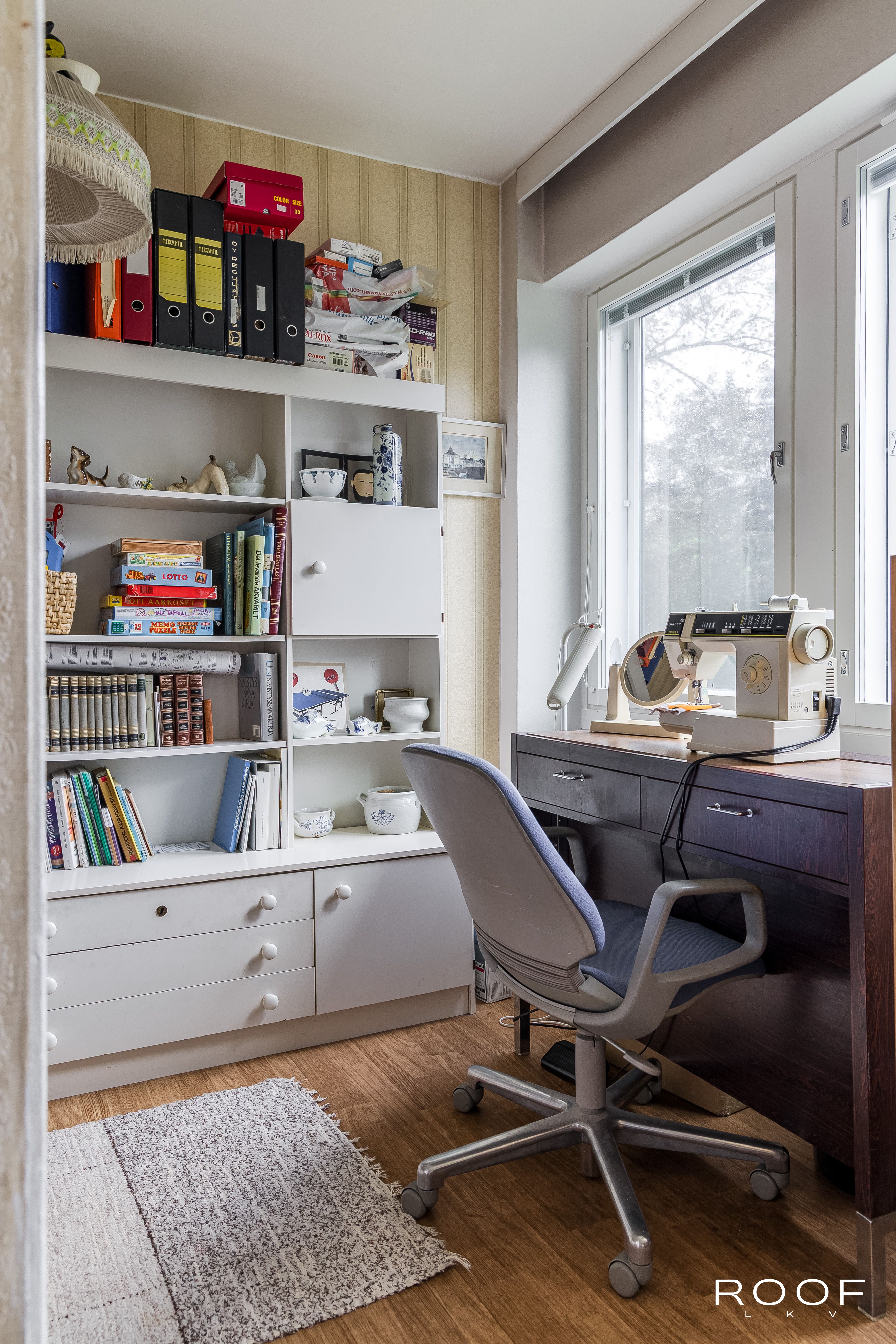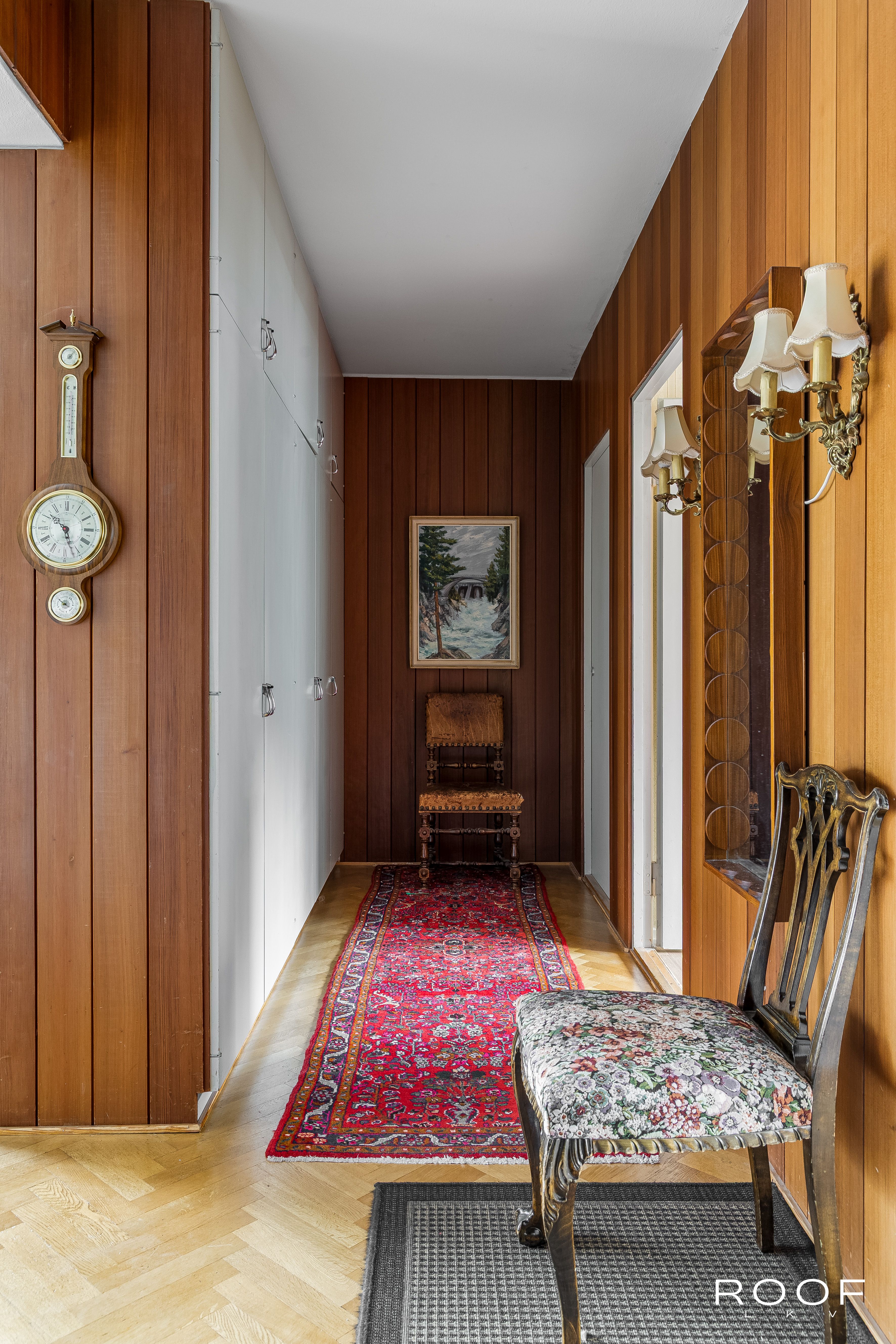 Kodissa on säilynyt alkuperäisiä yksityiskohtia, kuten kaunis parkettilattia ja 1960-luvun arkkitehtuurin tunnelma, jotka remontoimalla voi nostaa uudelleen esiin.