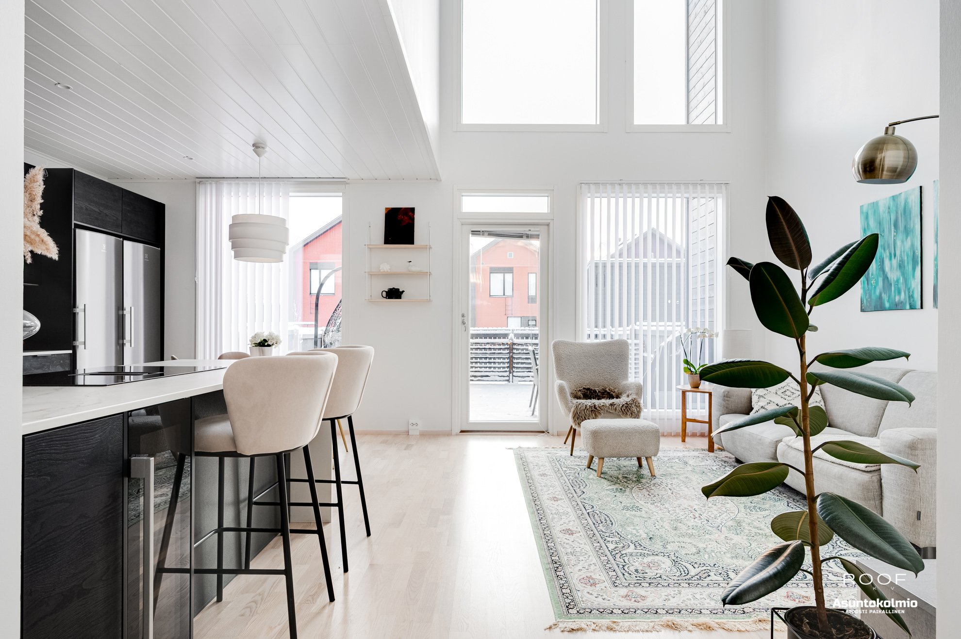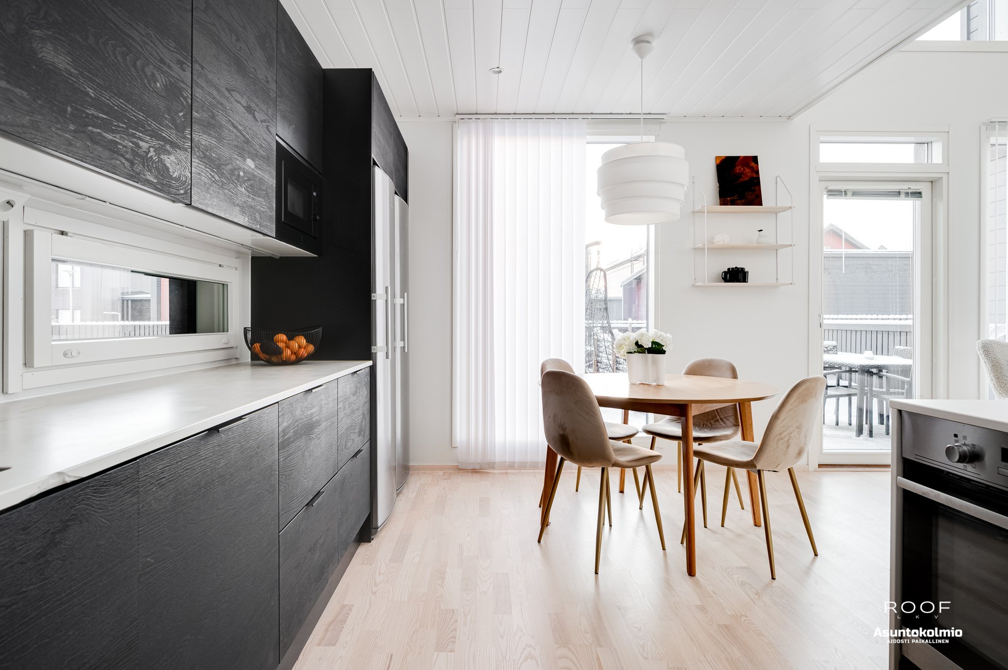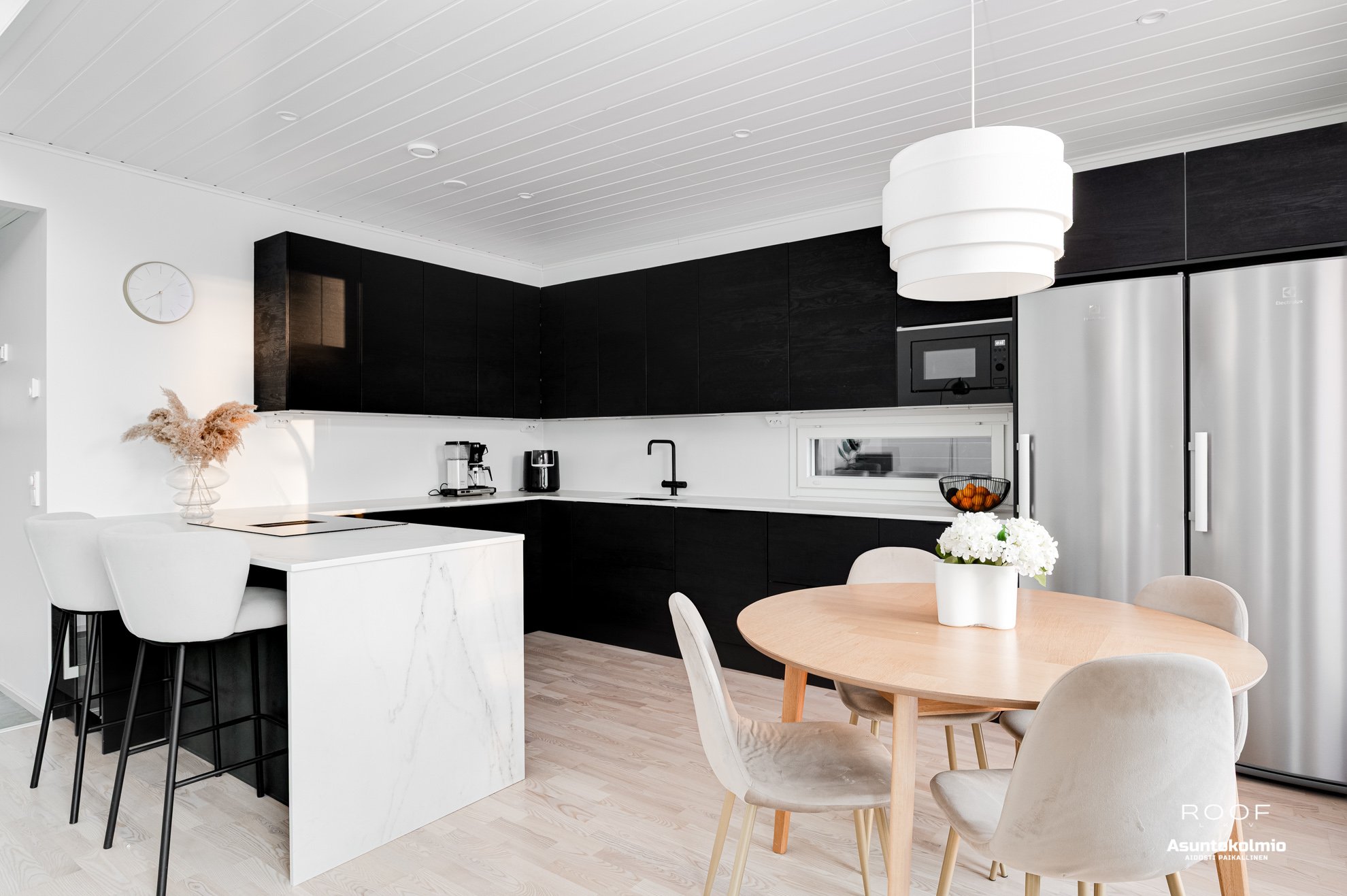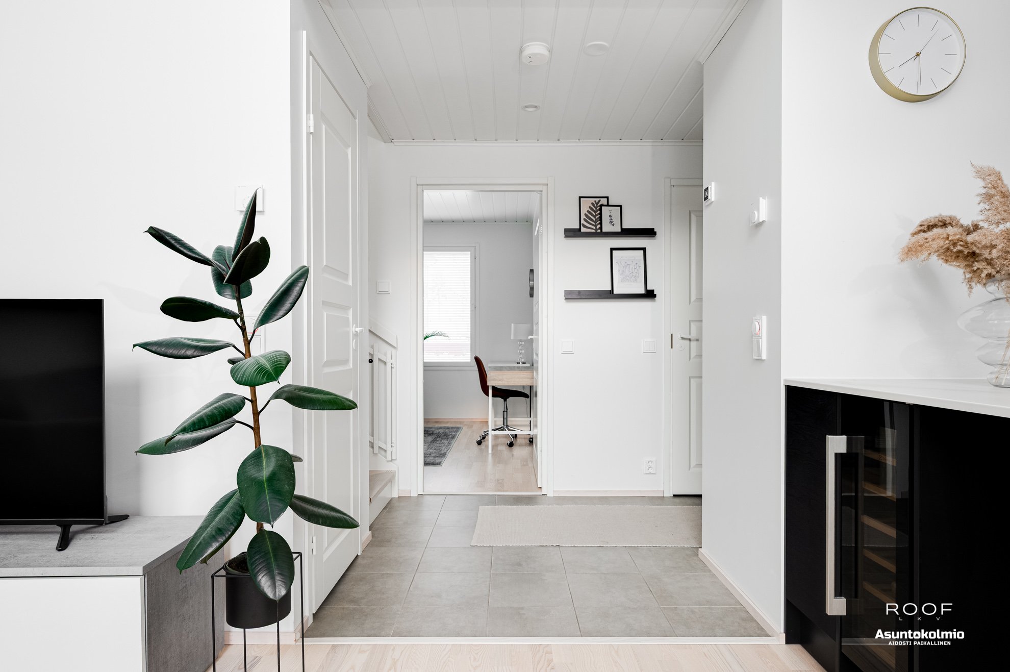 Tervetuloa Soittajankujalle! Tätä kotia on muokattu rakennusvaiheessa useilta osin, mutta selkeästi upein osa on kokonaan uudelleen suunniteltu sekä toteutettu keittiö. Suuresta keittiöstä ei varmasti lopu kaappi- tai laskutila kesken, ja esimerkiksi työtasoina on huippulaadukkaat Dekton- kivitasot. Kaikki makuuhuoneet ovat yli 11m2 ja päämakuuhuone on jopa yli 15m2.