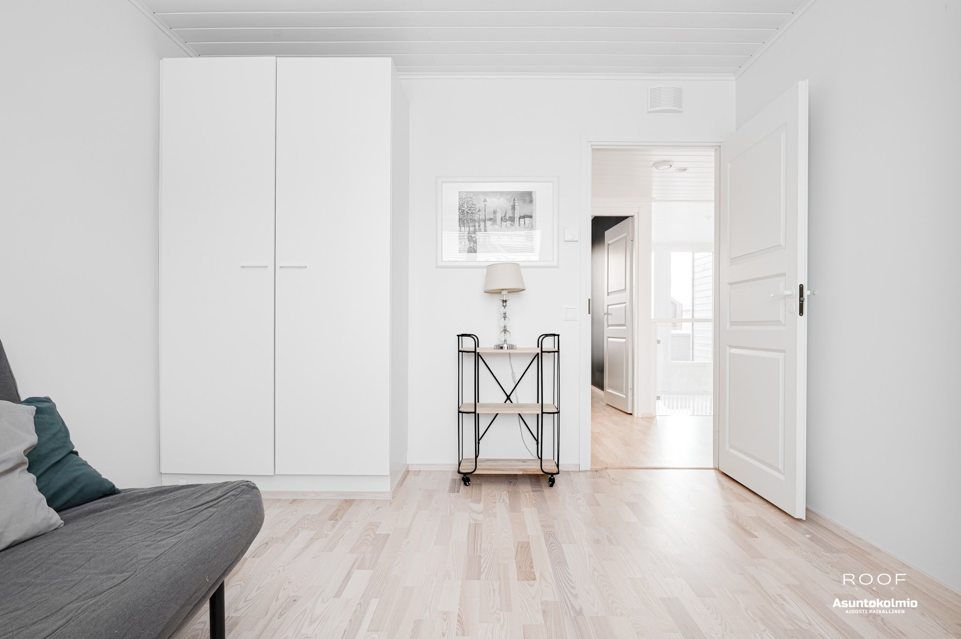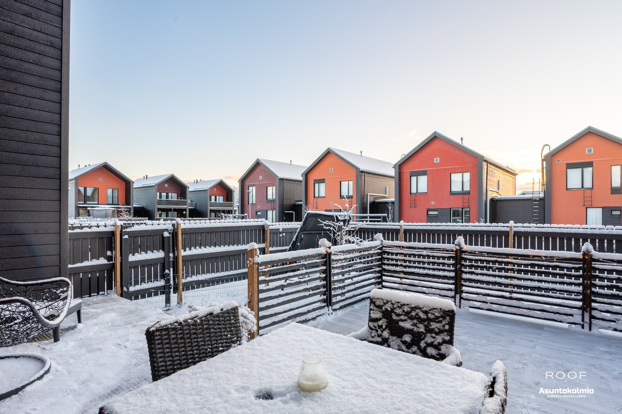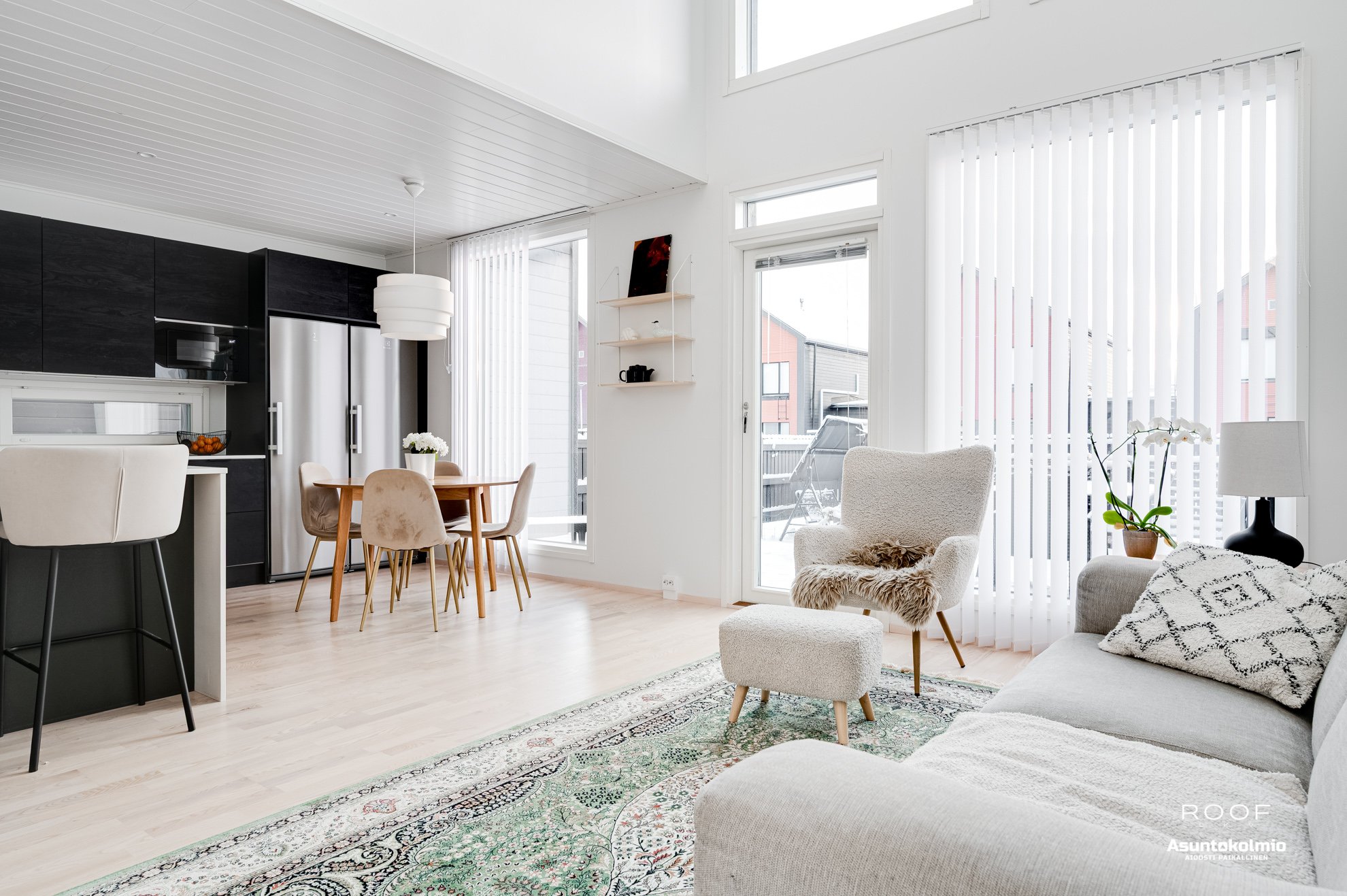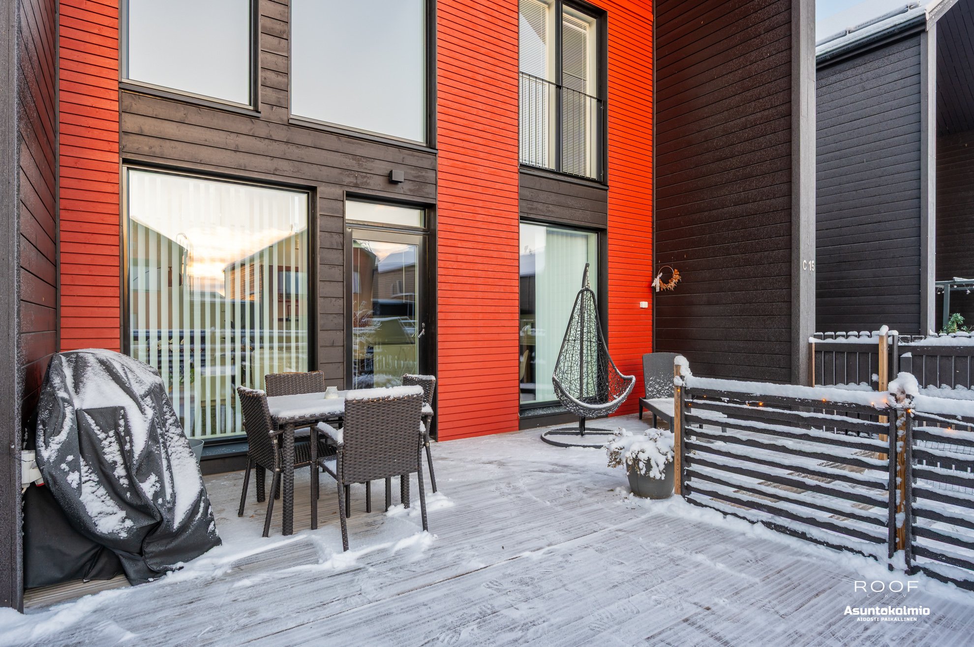 Tervetuloa Soittajankujalle! Tätä kotia on muokattu rakennusvaiheessa useilta osin, mutta selkeästi upein osa on kokonaan uudelleen suunniteltu sekä toteutettu keittiö. Suuresta keittiöstä ei varmasti lopu kaappi- tai laskutila kesken, ja esimerkiksi työtasoina on huippulaadukkaat Dekton- kivitasot. Kaikki makuuhuoneet ovat yli 11m2 ja päämakuuhuone on jopa yli 15m2.
