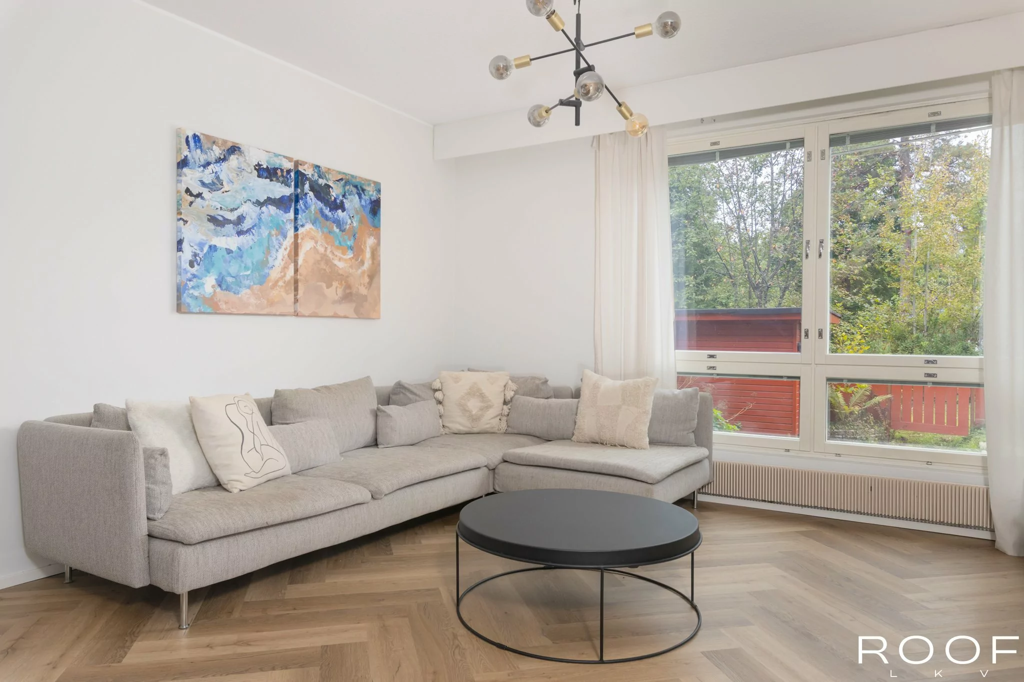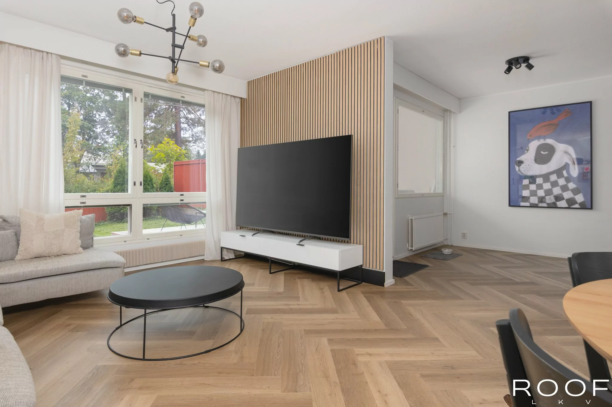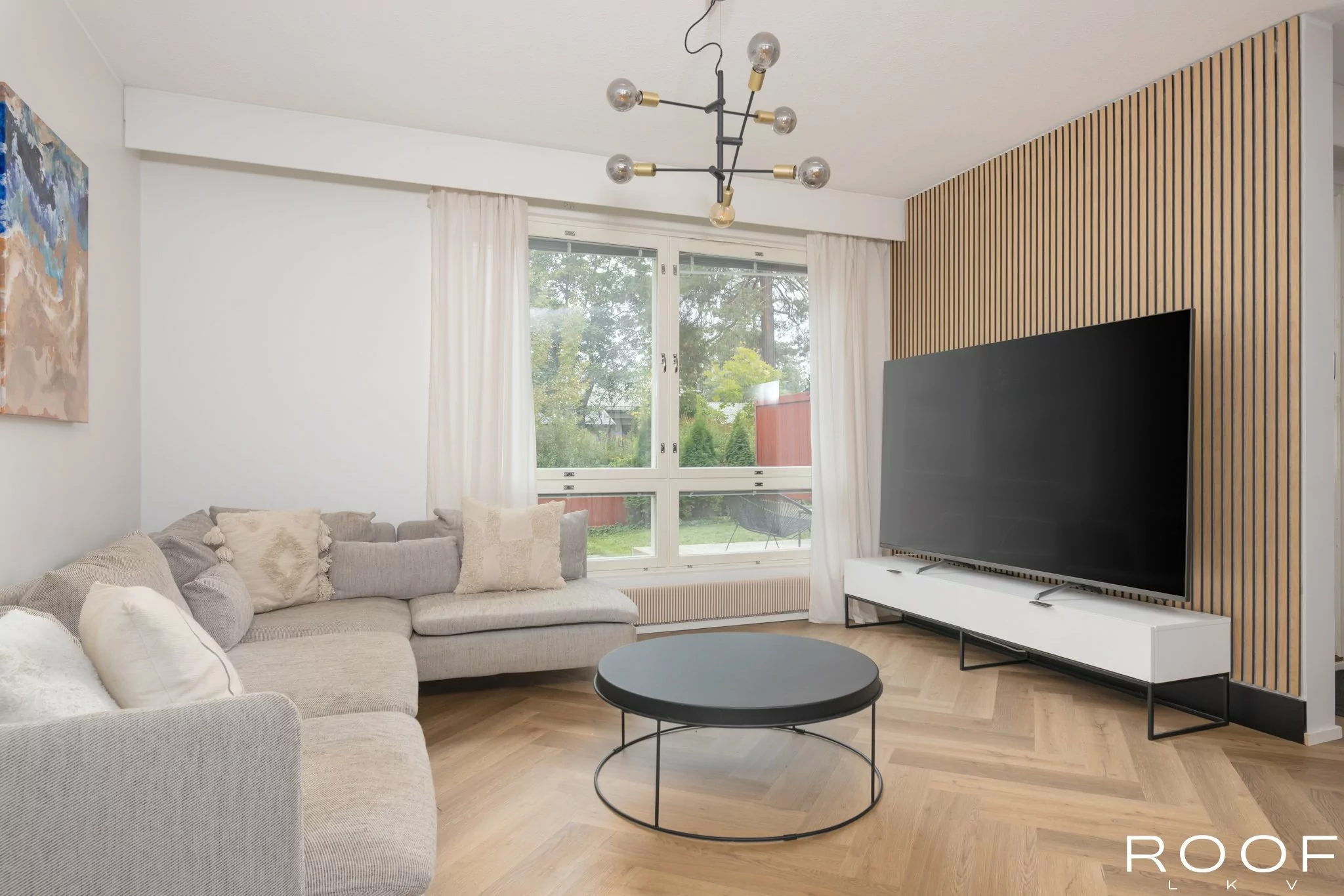 Asunnossa on vuonna 2024 uusittu kylpyhuone ja sauna, keittiö kodinkoneineen sekä lattiat. Lisäksi on uusittu seinä- ja kattopinnat, sähkökaappi ja pintakytkimiä sekä huoneistokohtaiset käyttövesiputket (ei keittiössä). Keittiössä on modernit mustat kaapistot ja laadukkaat kodinkoneet, kylpyhuoneessa kaksi suihkua ja erillinen wc. Olohuoneesta on kulku omalle pihalle. Hoitovastike 520 €/kk (4,0 €/m²).