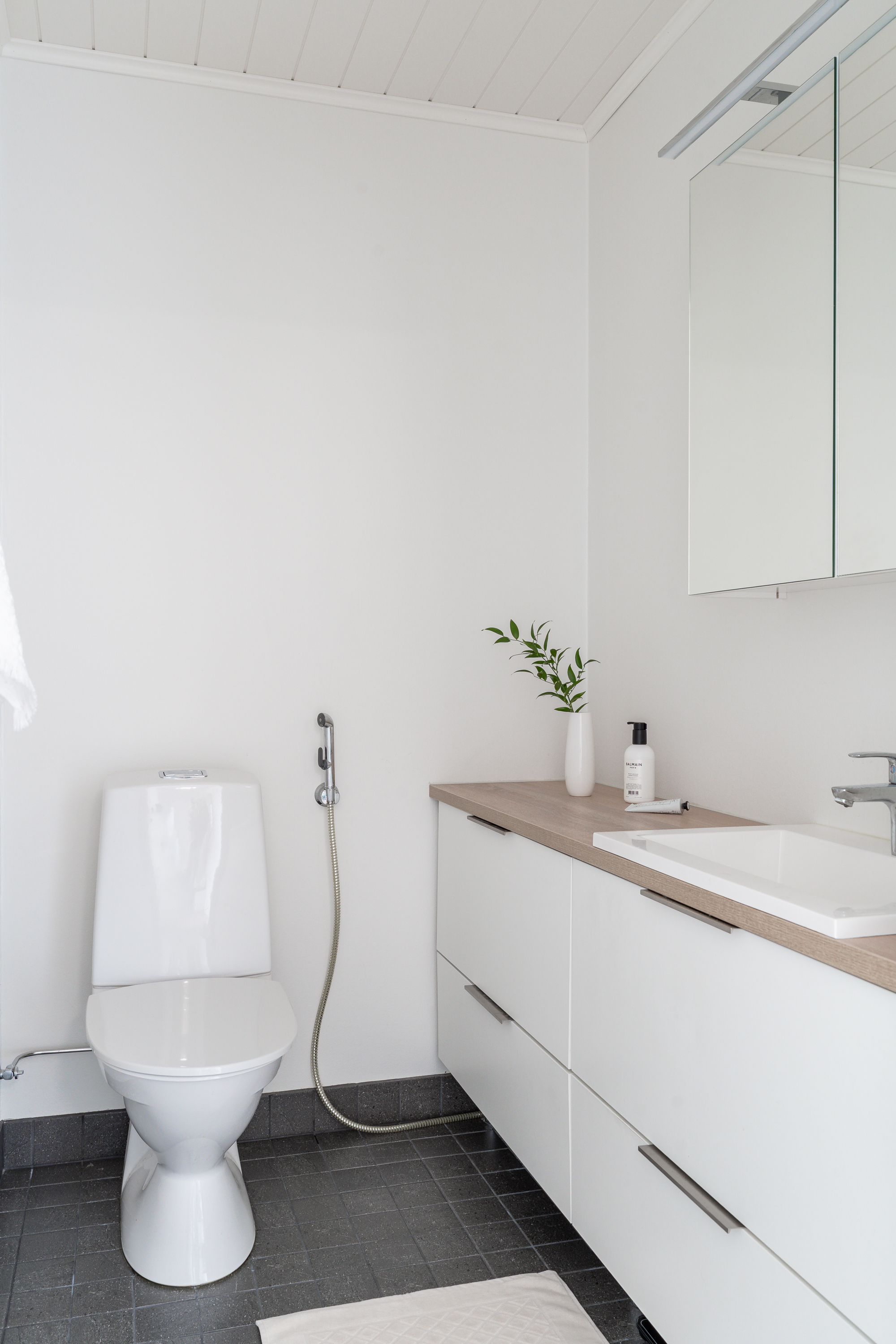 Alakerrassa on yksi makuuhuone, ja yläkerrasta löytyvät kolme muuta – juuri sopiva kokonaisuus perheelle tai etätyötä arvostavalle. Kodinhoitohuone helpottaa pyykkihuoltoa, ja saunan lempeät löylyt kutsuvat rentoutumaan. Rauhallinen kadunvarsi ja luonnon läheinen sijainti tekevät sijainnista ainutlaatuisen.