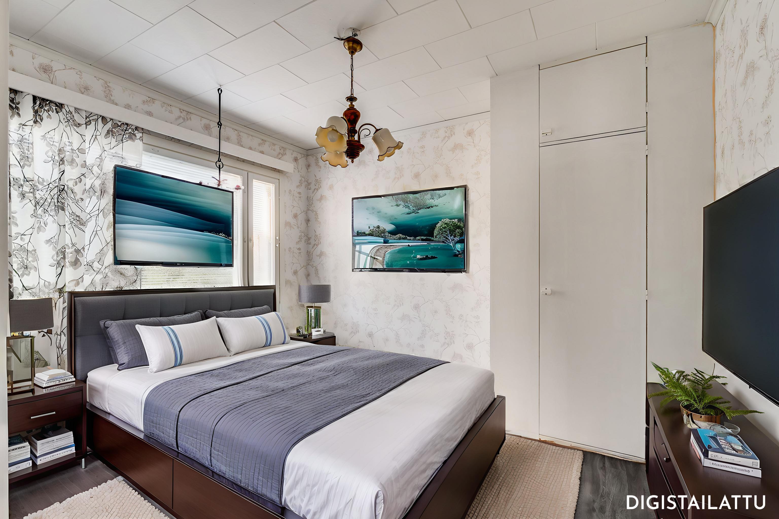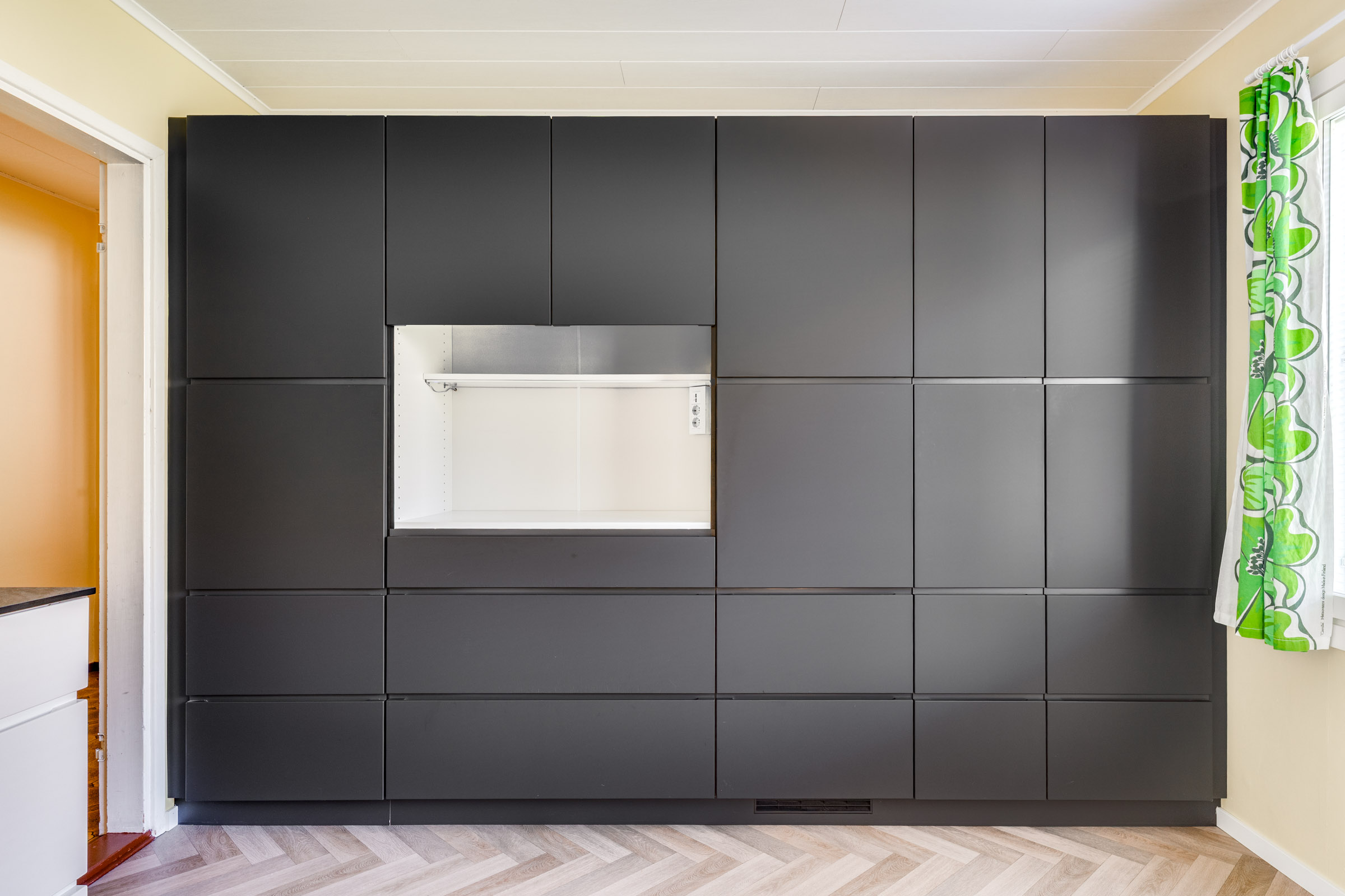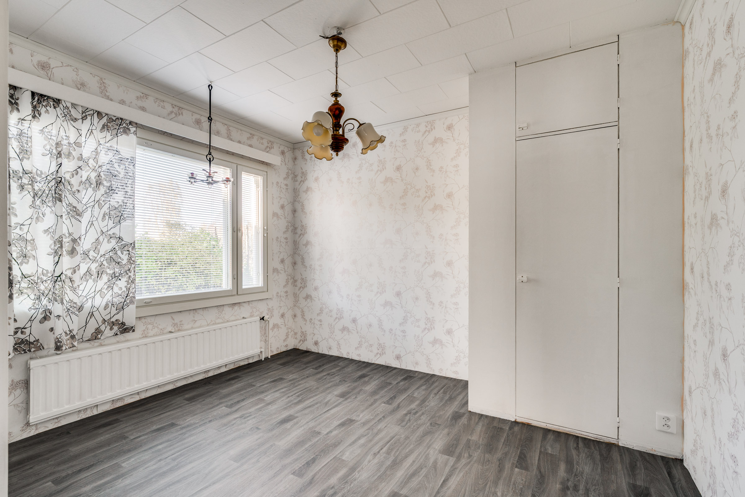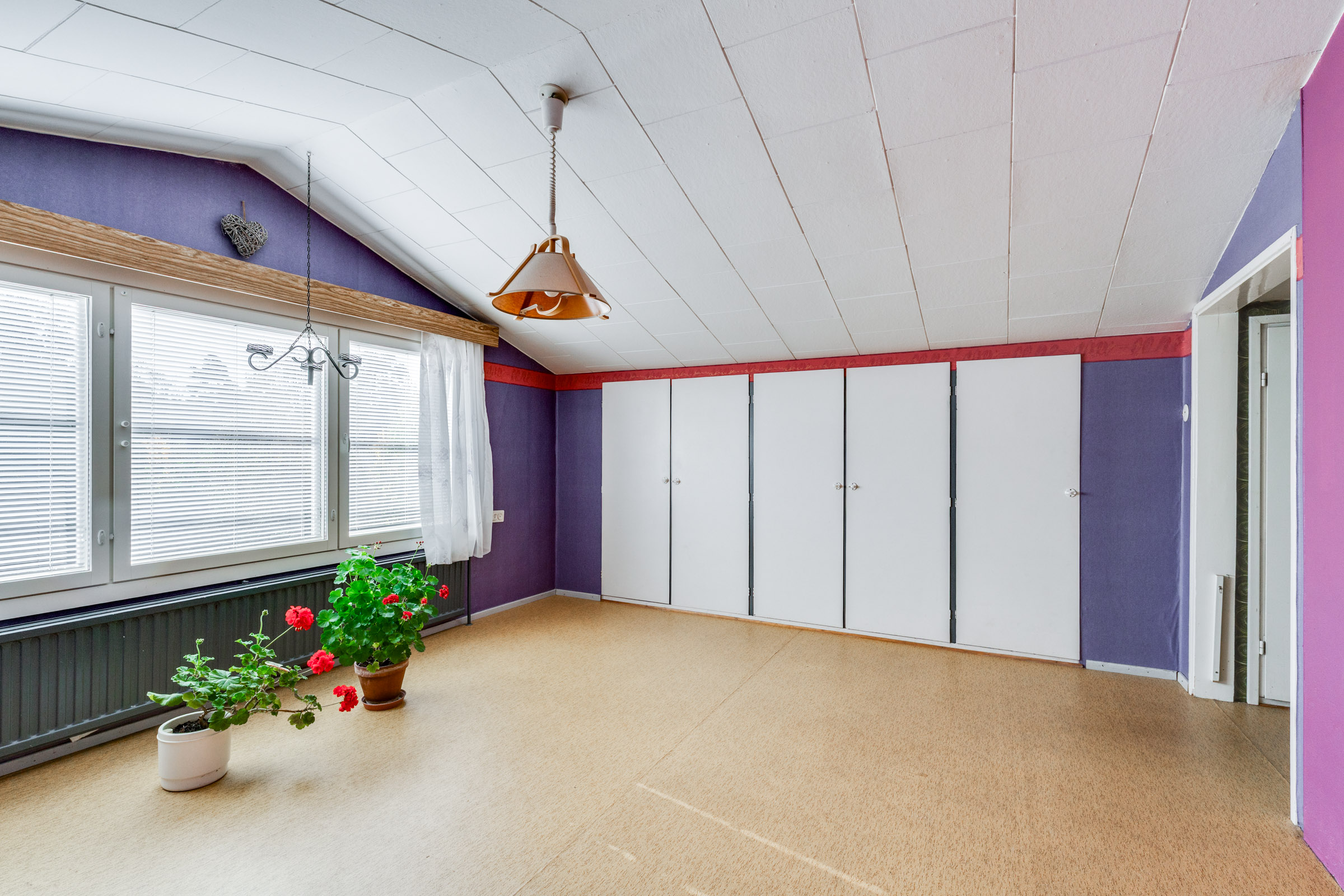 Talon pohjaratkaisu on käytännöllinen, ja se kattaa kaksi kerrosta, joissa on yhteensä neljä makuuhuonetta. Alakerrassa on kaksi makuuhuonetta, kun taas yläkerrassa sijaitsee kaksi lisää, tarjoten tilaa niin perheenjäsenille kuin vieraillekin. Keittiö on remontoitu vuonna 2021 ja varustettu nykyaikaisilla integroiduilla kodinkoneilla, mikä tekee ruoanlaitosta nautinnollista.