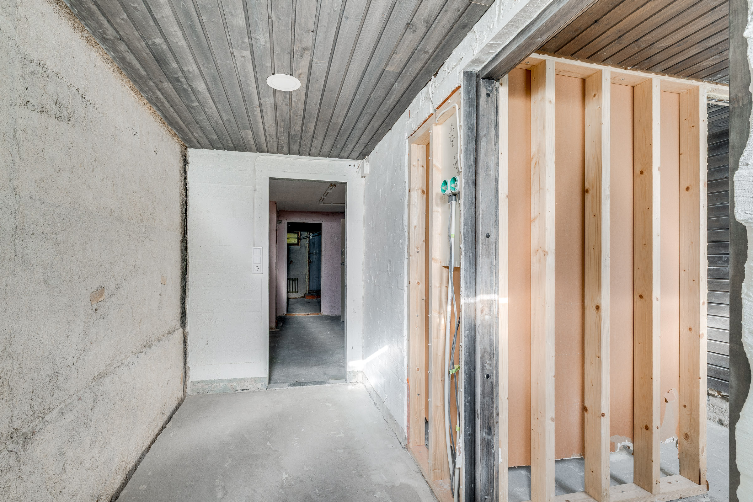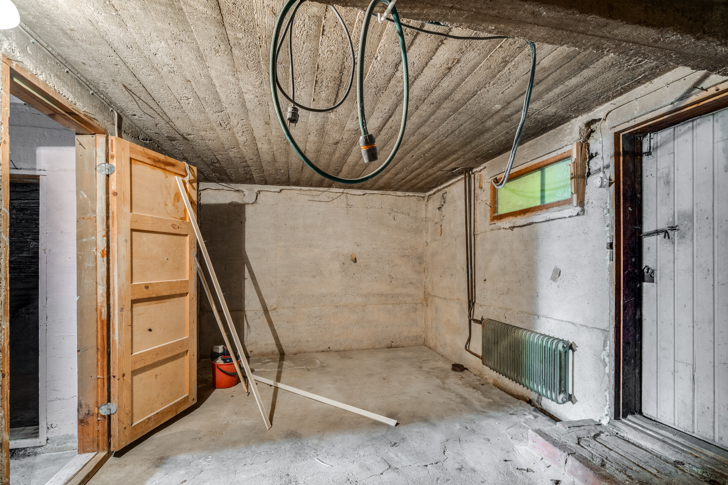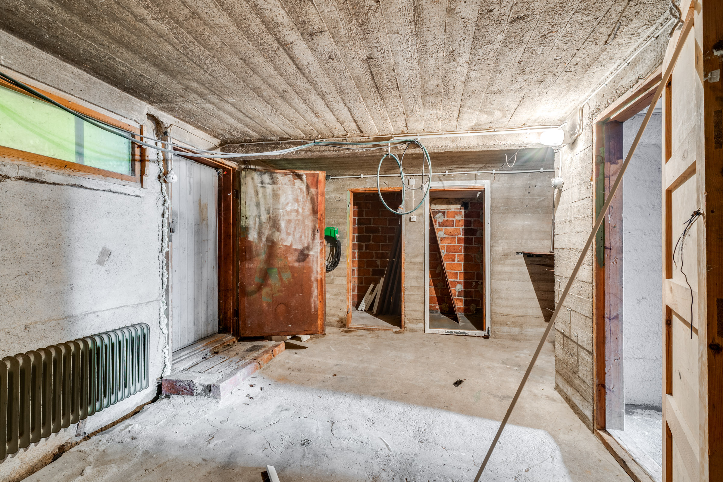 Kellarikerroksessa on tapahtunut vesivahinko, mutta tila on puhdistettu ja jätetty odottamaan uusia ideoita. Tämä tarjoaa mahdollisuuden luoda unelmiesi tila esimerkiksi harrastuksille tai varastointiin. Talossa on myös sauna, joka kaipaa viimeistelyä, mutta tarjoaa mahdollisuuden toteuttaa omia visioita.