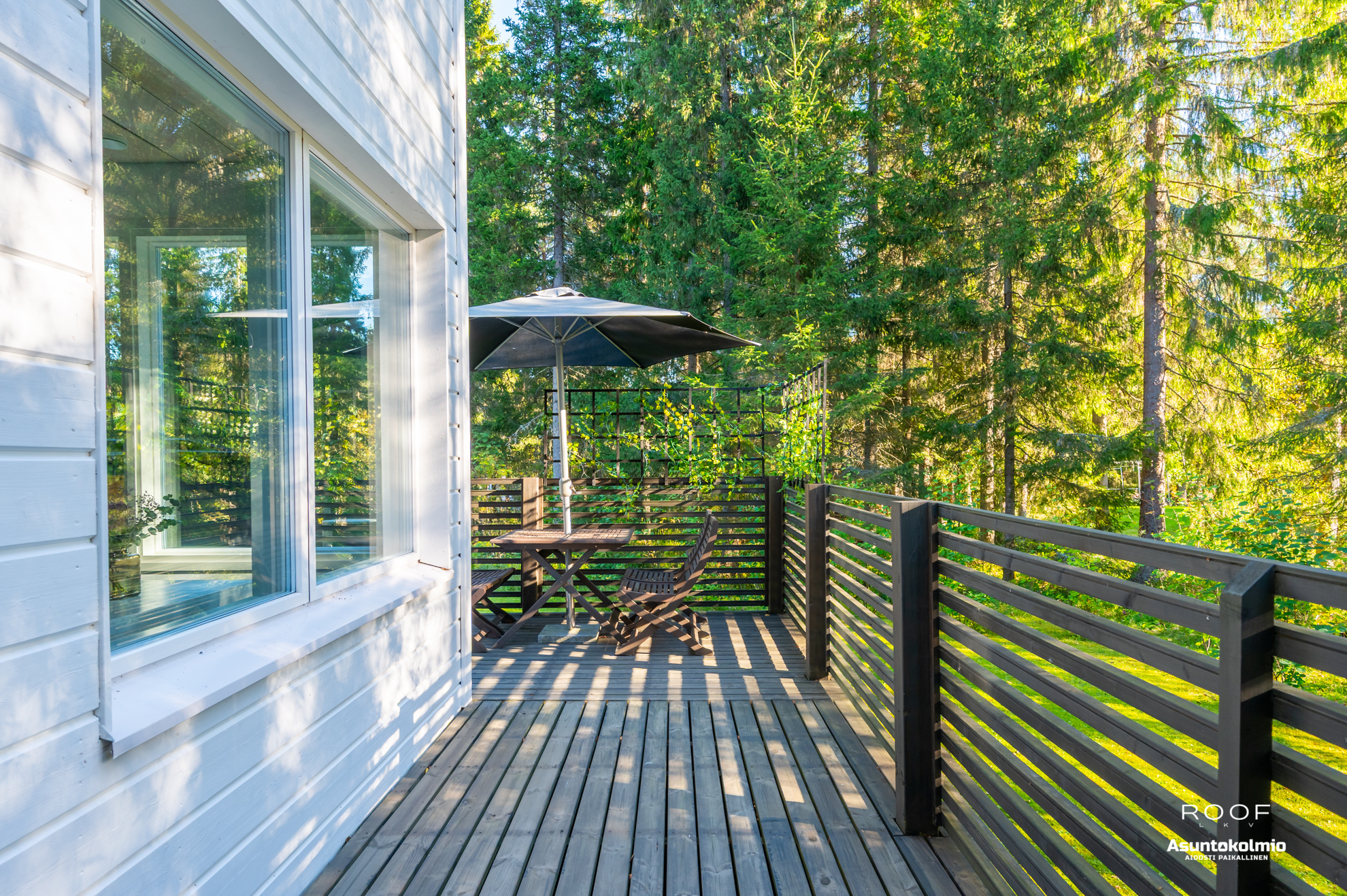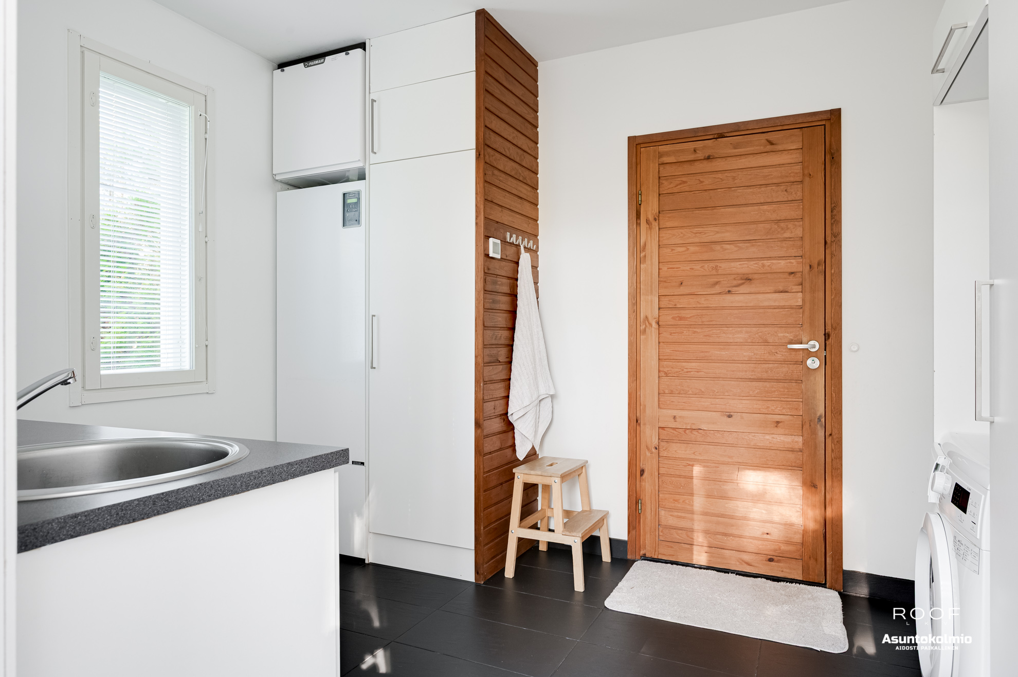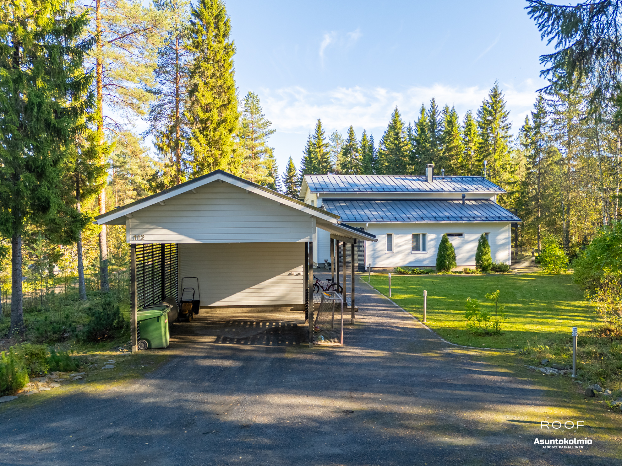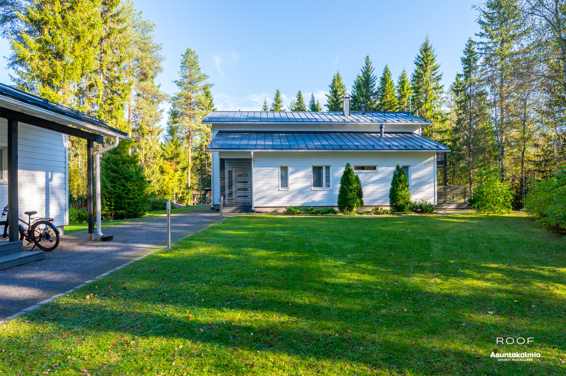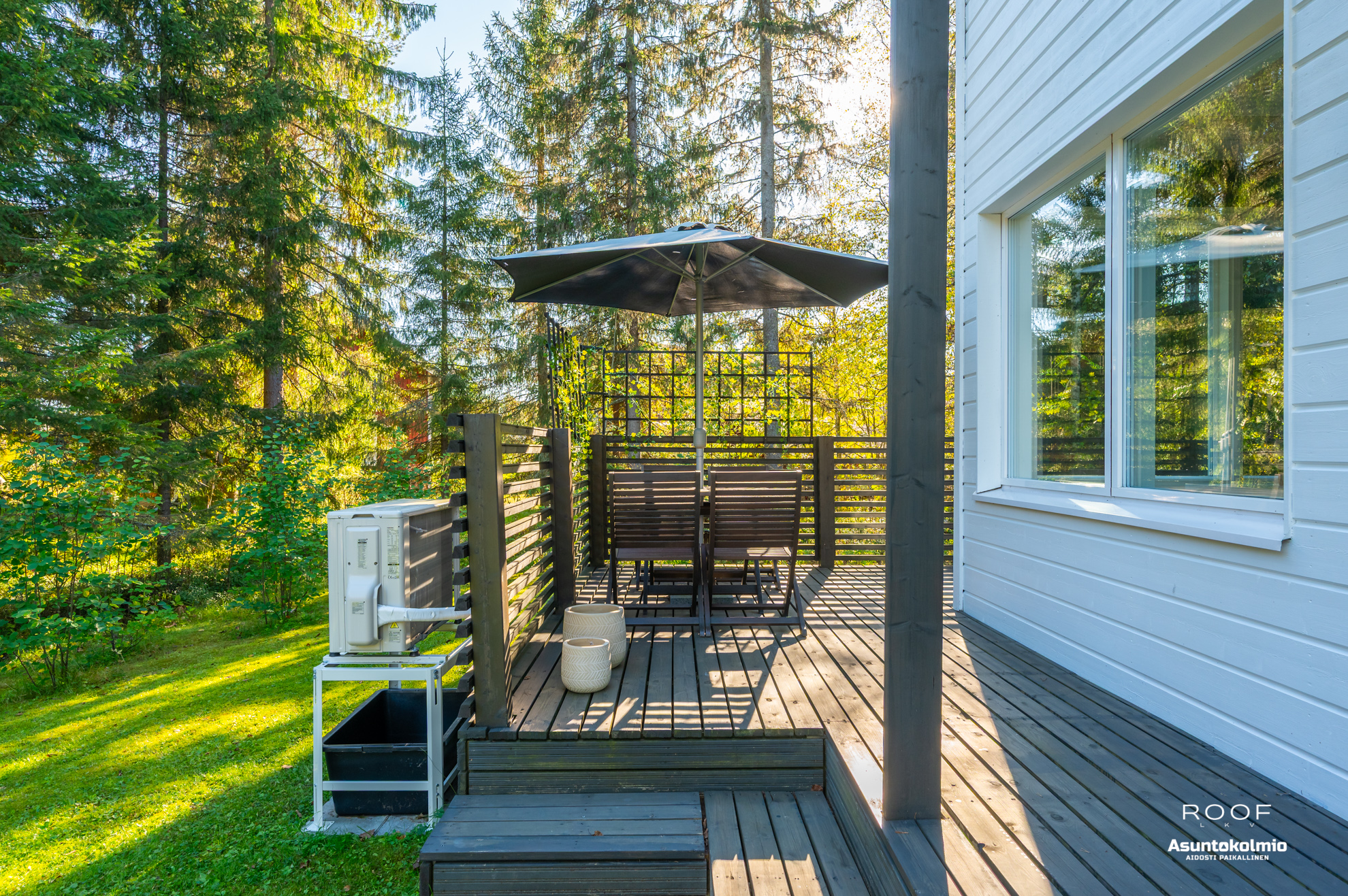Tämä ihastuttava 5 makuuhuoneen koti on rakennettu vuonna 2009 ja on vielä tänäkin päivänä nykyaikaisen moderni ja silti kodikas ja käytännöllinen kokonaisuus. Kodin tiloissa on otettu huomioon etenkin lapsiperheen tarpeet ja arki onkin sujuvaa. Heti sisään tullessa on omalla sisäänkäynnillä oleva tilava arkieteinen, joka huomioi ulkoilevan/harrastavan perheen tarpeet. Kodin alakerrassa on 3 makuuhuonetta vanhemmille ja perheen pienimmille ja 2015 rakennetussa yläkerrassa on 2 makuuhuonetta ja aulatila perheen teineille tai etätyöläisille. Yhtenäisen olohuone-keittiön katseenvangitsijana on korkeampi huonekorkeus, isot kiinteät ikkunat metsän suuntaan ja vaneriset sisäkatot. Keittiössä on tilaa isommallekin ruokapöydälle ja sieltä on kulku isolle terassille. Lämmitys tapahtuu kauttaaltaan vesikiertoisin lattialämmityksin, lämmityksen apuna on ollut varaava takka ja ilmalämpöpumppu. Isolla perheellä lämmitys- ja käyttösähkökustannukset ovat olleet keskimäärin vain noin 200 €/kk.