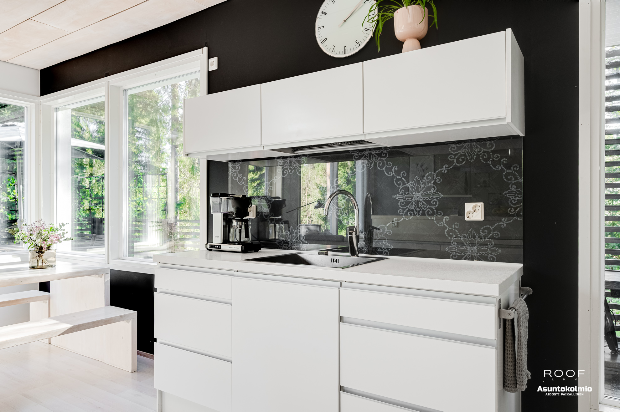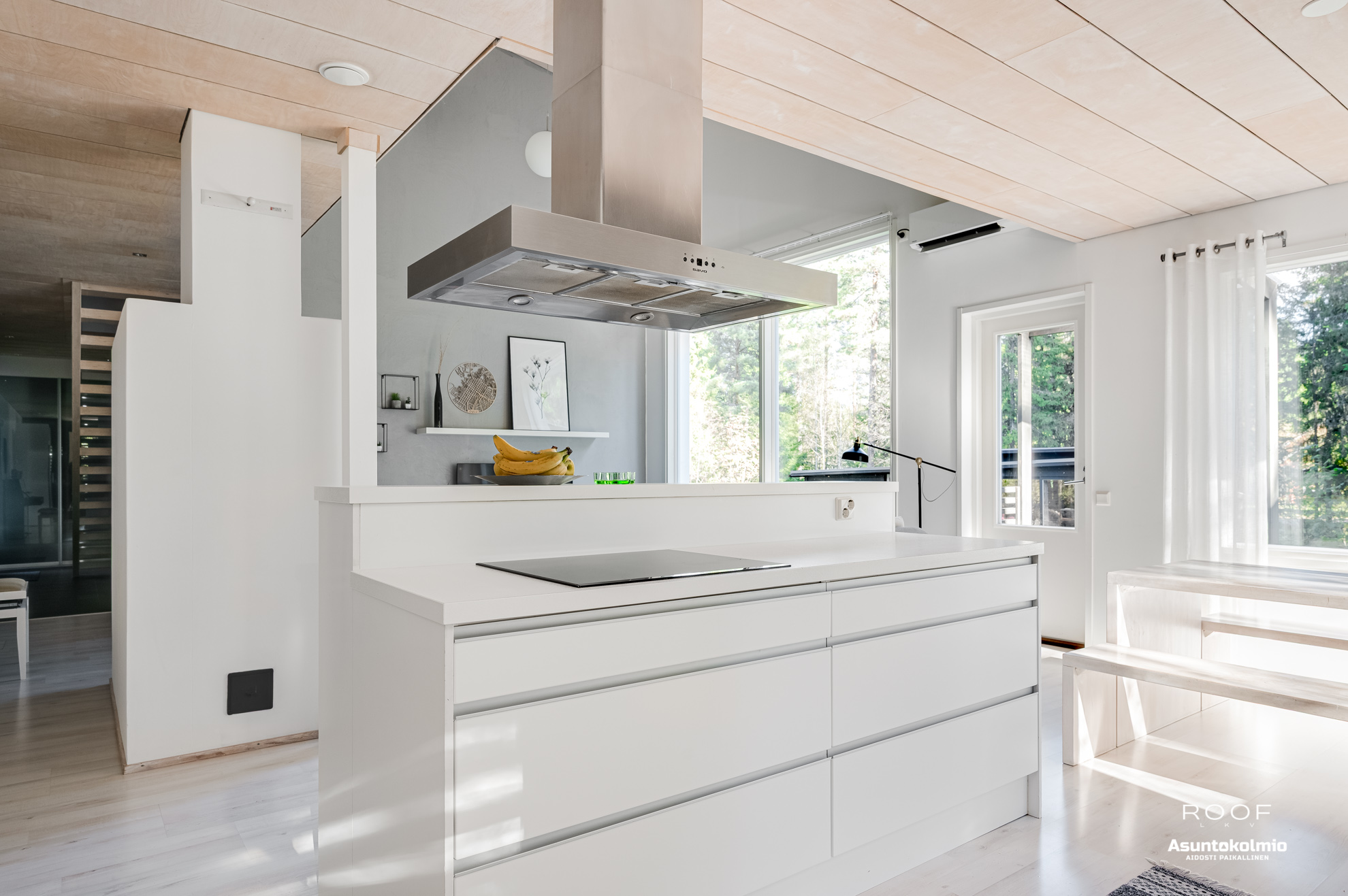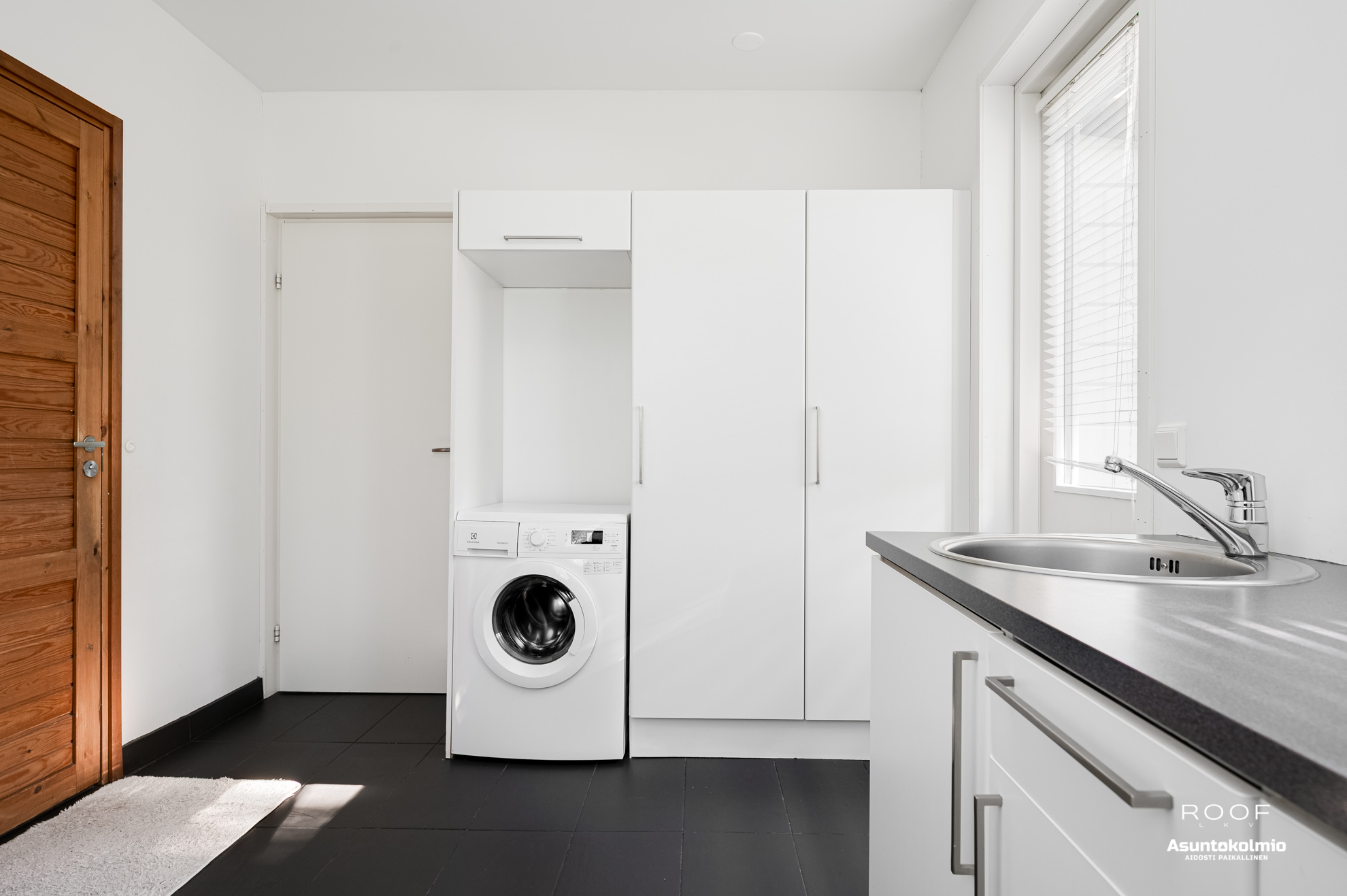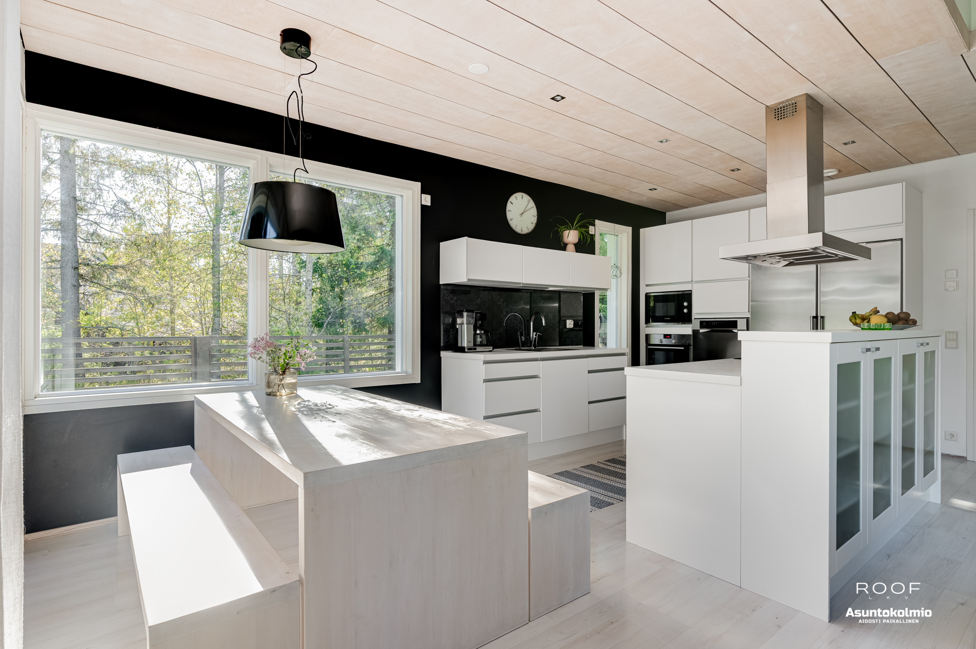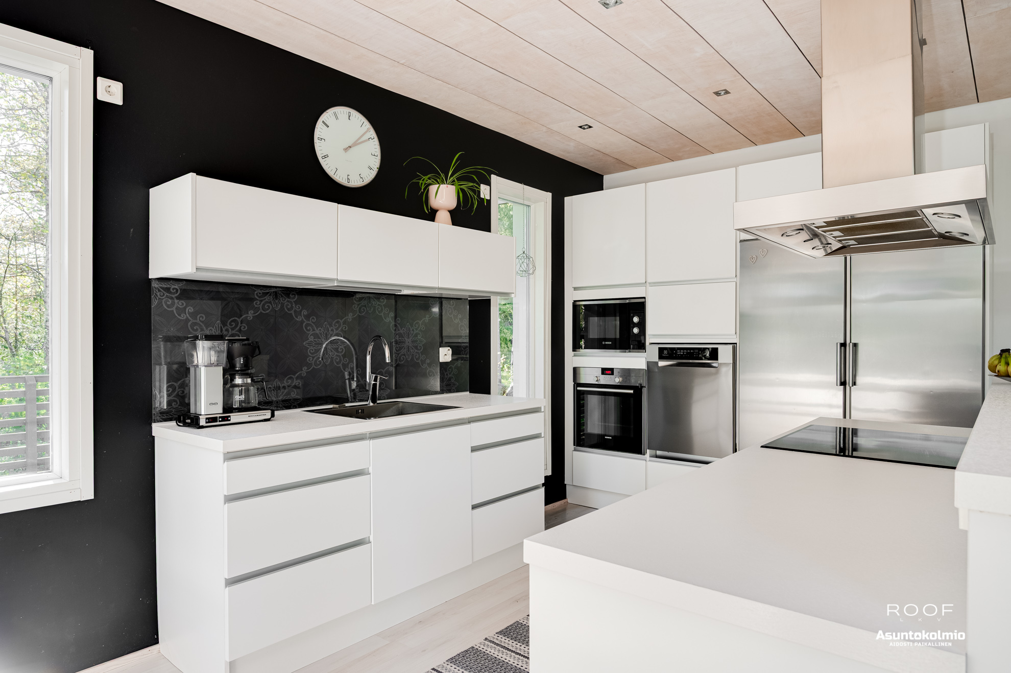 Tämä ihastuttava 5 makuuhuoneen koti on rakennettu vuonna 2009 ja on vielä tänäkin päivänä nykyaikaisen moderni ja silti kodikas ja käytännöllinen kokonaisuus. Kodin tiloissa on otettu huomioon etenkin lapsiperheen tarpeet ja arki onkin sujuvaa. Heti sisään tullessa on omalla sisäänkäynnillä oleva tilava arkieteinen, joka huomioi ulkoilevan/harrastavan perheen tarpeet. Kodin alakerrassa on 3 makuuhuonetta vanhemmille ja perheen pienimmille ja 2015 rakennetussa yläkerrassa on 2 makuuhuonetta ja aulatila perheen teineille tai etätyöläisille. Yhtenäisen olohuone-keittiön katseenvangitsijana on korkeampi huonekorkeus, isot kiinteät ikkunat metsän suuntaan ja vaneriset sisäkatot. Keittiössä on tilaa isommallekin ruokapöydälle ja sieltä on kulku isolle terassille. Lämmitys tapahtuu kauttaaltaan vesikiertoisin lattialämmityksin, lämmityksen apuna on ollut varaava takka ja ilmalämpöpumppu. Isolla perheellä lämmitys- ja käyttösähkökustannukset ovat olleet keskimäärin vain noin 200 €/kk.