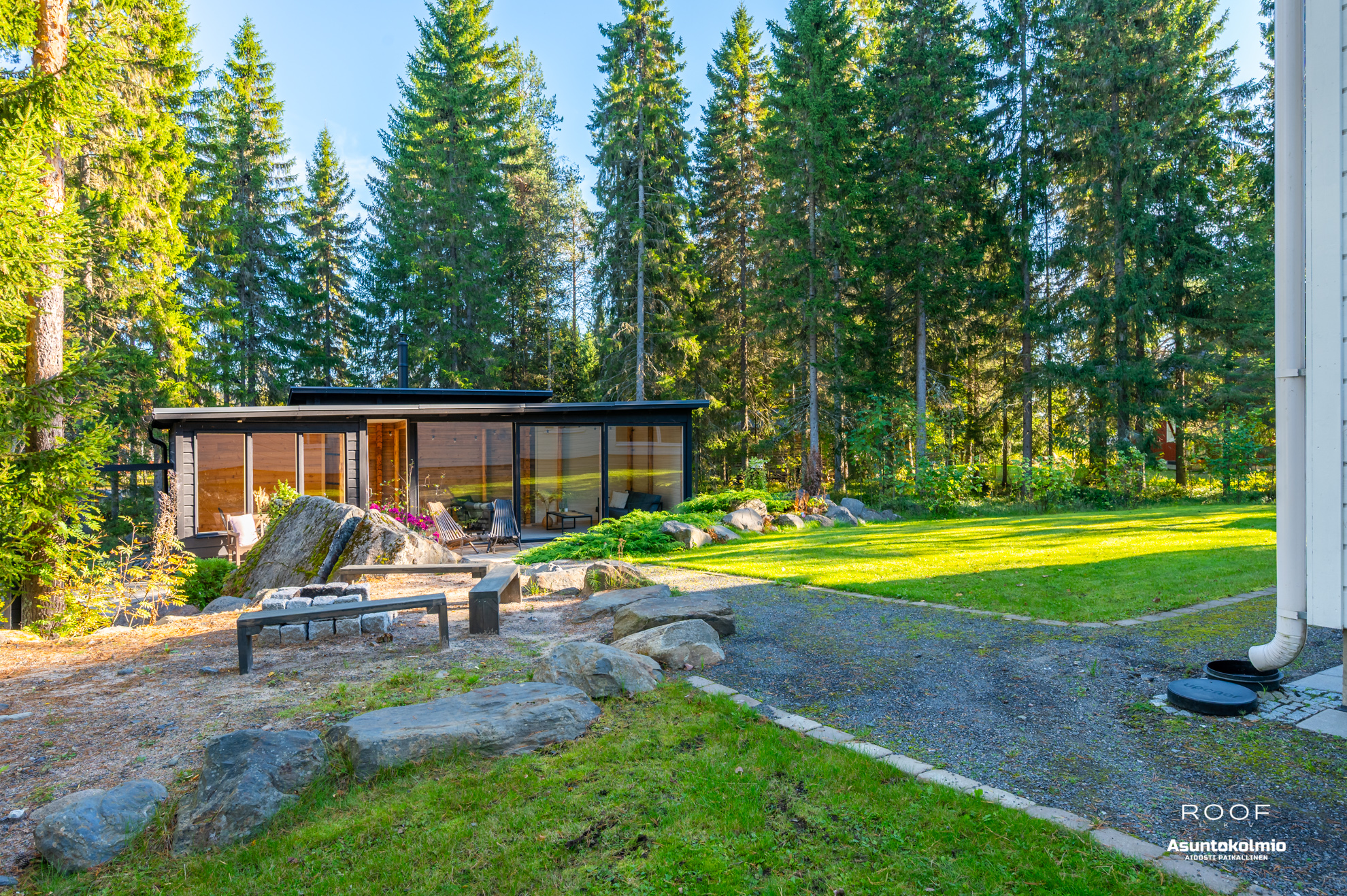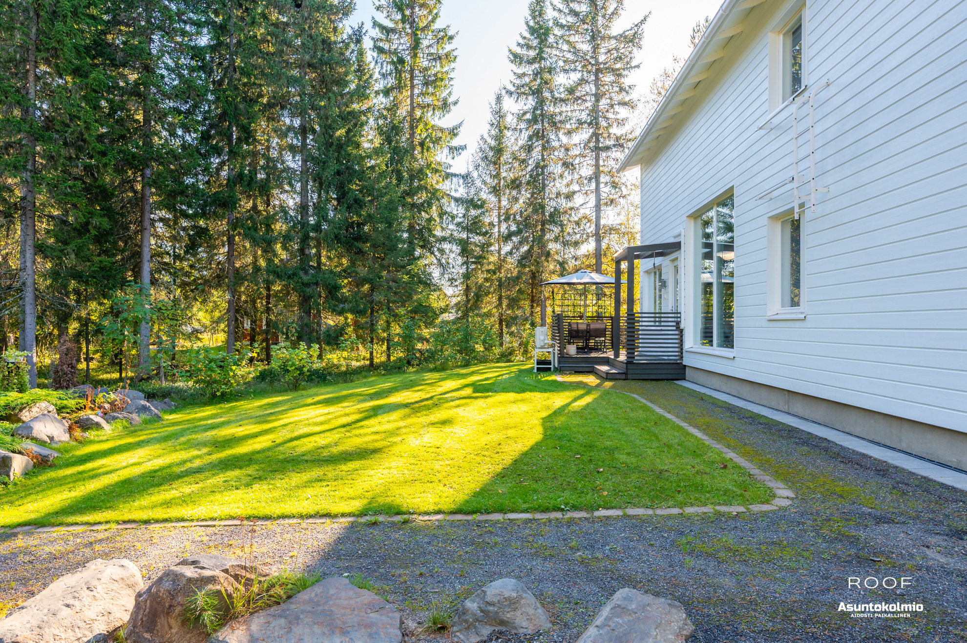 Nykyaikaisen tyylikäs omakotitalo, iso ja suojaisa OMA TONTTI 5196 m², autokatos ja 24,8m² verstas sekä täydellisen hieno pihasauna, joka on kuin kesämökki omalla pihalla! Tämänkaltaista kohdetta on vaikea löytää toista.