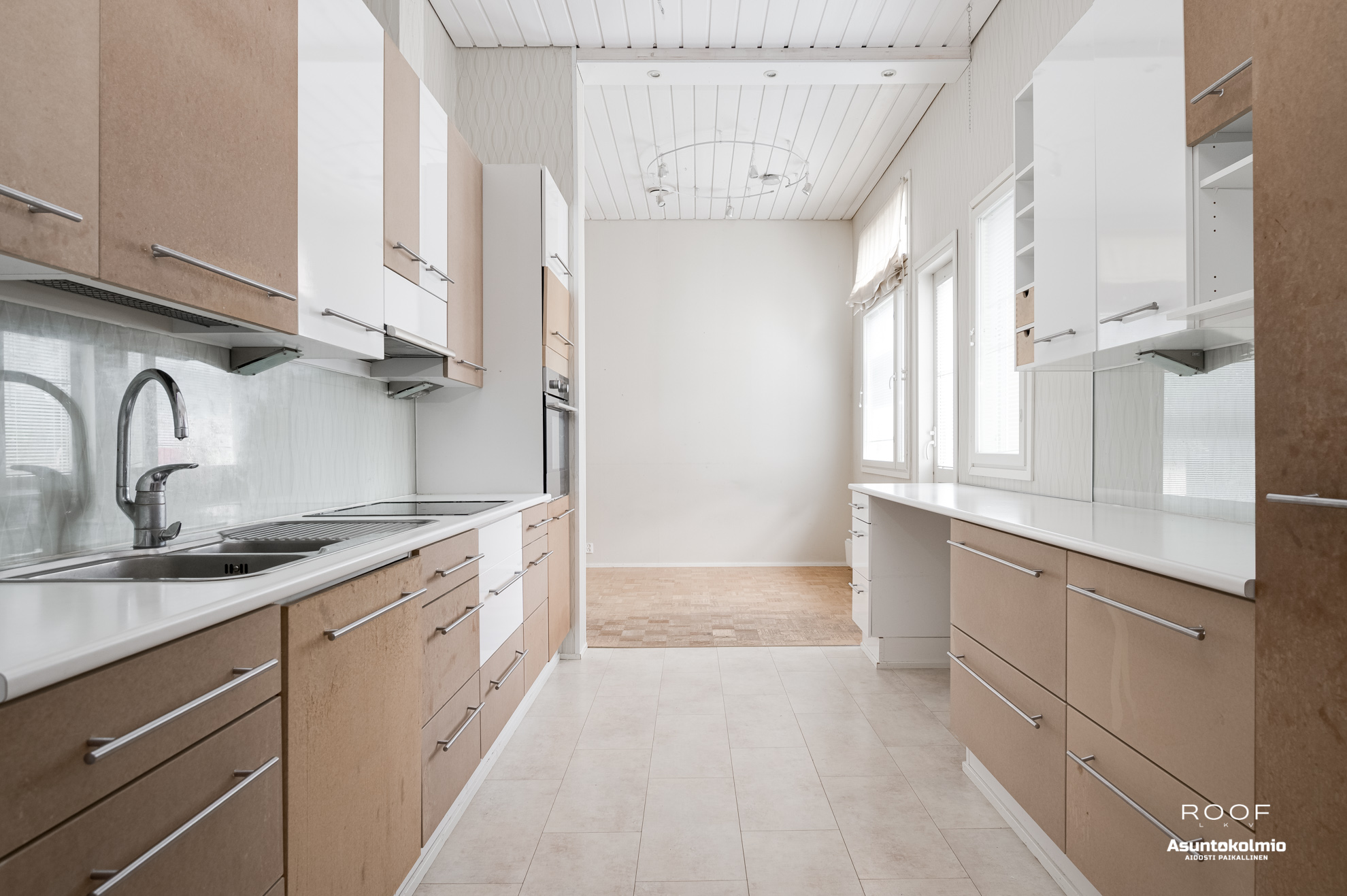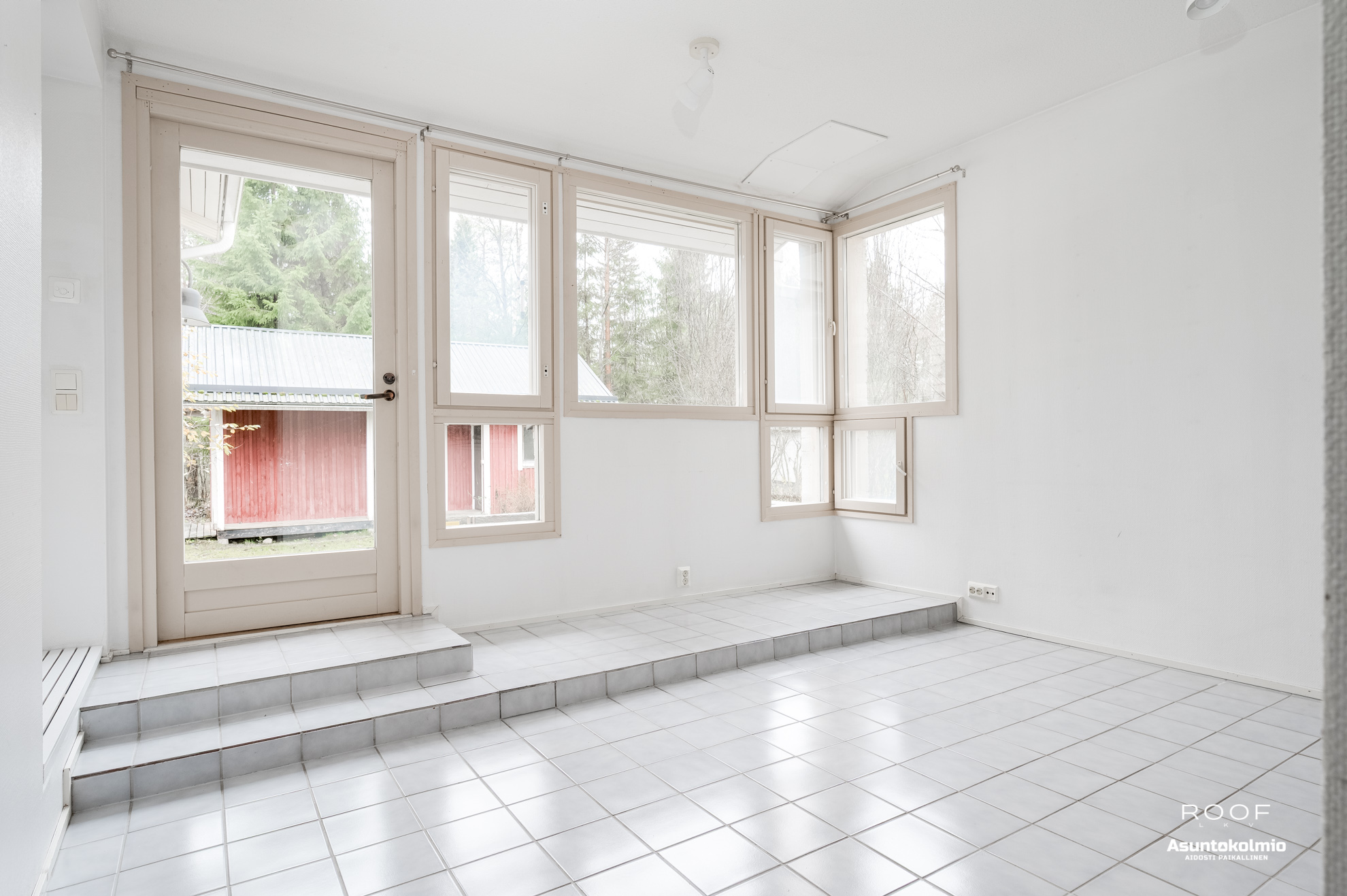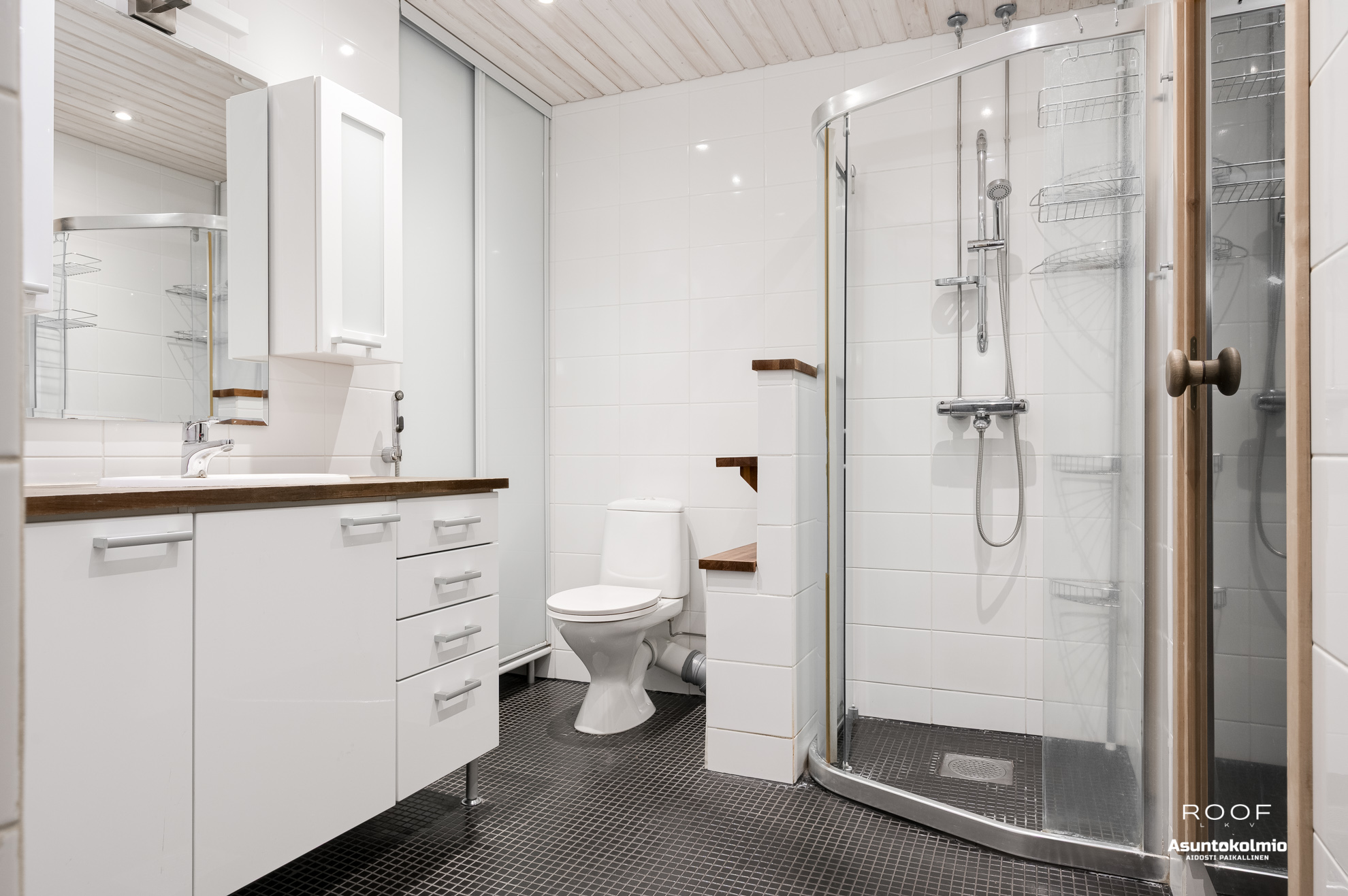 Eritoten vuonna 2007 remontin läpikäynyt kylpyhuone on edelleen ilmeeltään nykyaikainen. Talon erikoisuutena on sen rinteeseen toteutettu, avara pohjaratkaisu. Olohuoneesta löytyy todella korkeaa tilaa ja kaikelle sekä kaikille löytyy oma paikka tästä kodista. Talon yhteydessä on autotalli niin nikkarointiin kuin varastointiinkin. Säilytystiloja tässä talossa on muutenkin vallan runsaasti, siitä pitää huolen kaksi vaatehuonetta, kaapistot ja erillinen varastorakennus. Lämmityksestä huolehtii iso lämminvesivaraaja, jota varaat kohtuukustannuksin pörssisähköllä. Varaajaan kytketty puukattila keventää entisestään lämmityksen kustannuksia. Järjestelmä (kattila & varaaja) uusittu 2007.