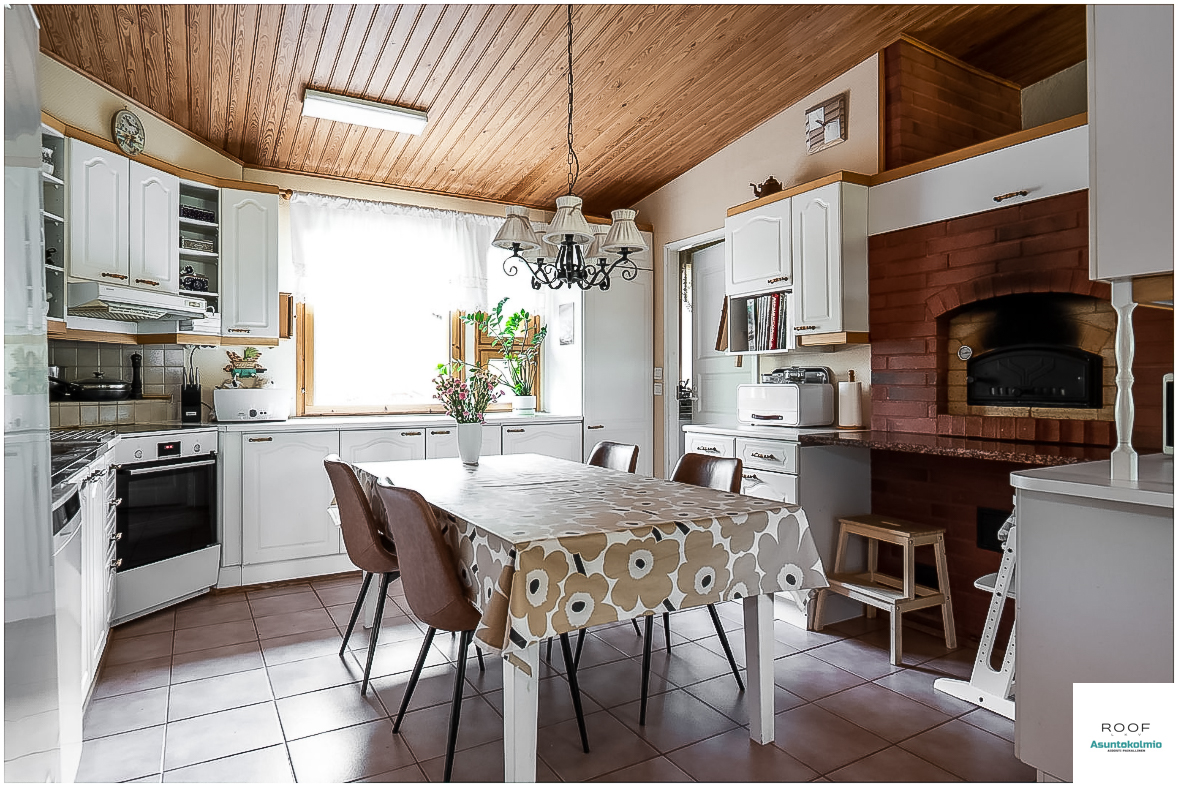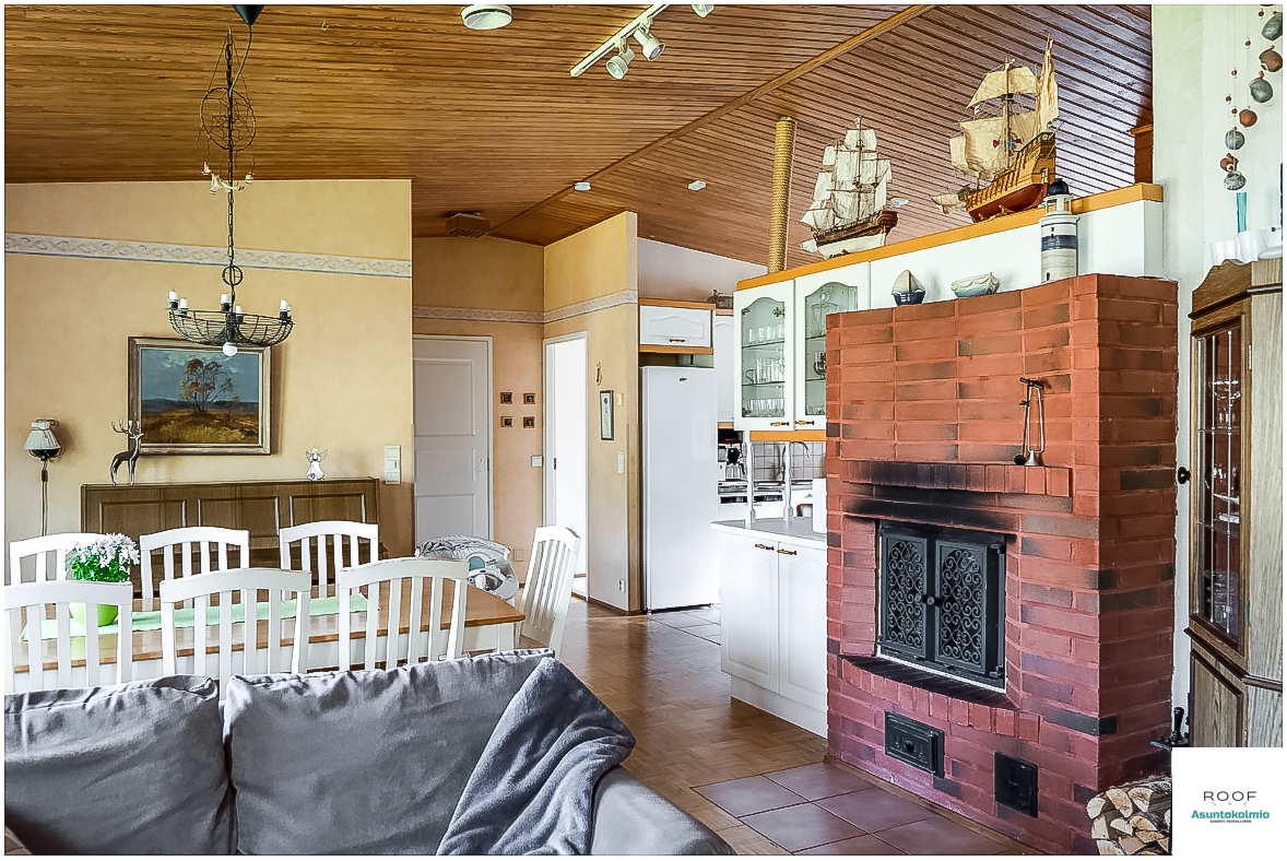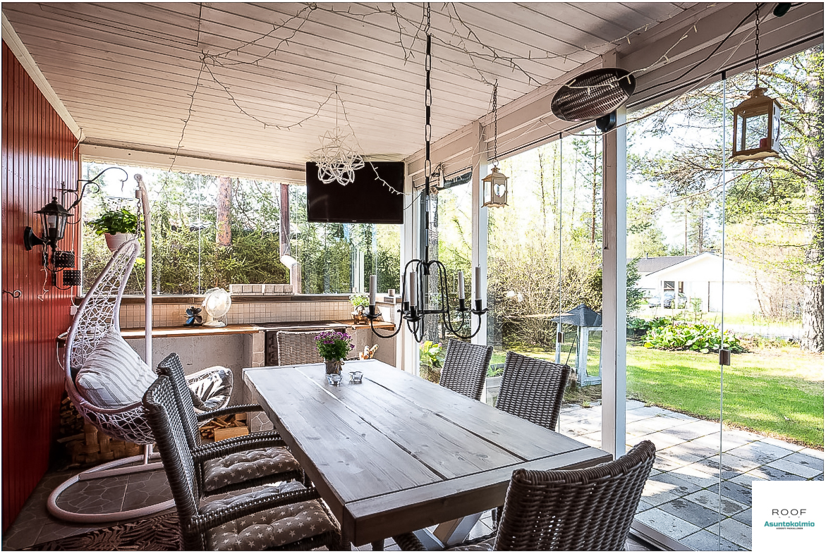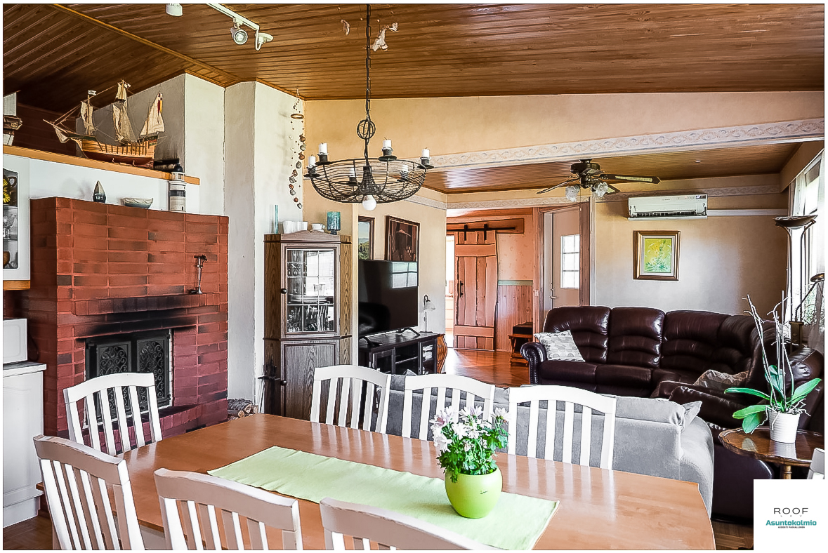 Kodin ehdoton sydän on iso ja valoisa oleskelutila, jossa tunnelmaa luo kaunis takka-leivinuuni yhdistelmä. Ilmalämpöpumppu tuo lisälämpöä viileinä päivinä ja viilennystä kesähelteillä. Keittiö on käytännöllinen ja reilut työskentelytilat tekevät ruoanlaitosta nautinnollista. Makuuhuoneita on viisi, joten tilaa löytyy niin perheenjäsenille kuin etätyöpisteillekin. Kaksi erillistä wc:tä ja kylpyhuoneen yhteydessä oleva kolmas wc helpottavat arjen sujuvuutta. Kesäiltojen kruununa toimii grillikota ja ulkosauna paljuineen, joissa ystävien ja perheen kanssa vietetyt hetket saavat aivan oman tunnelmansa. Lasitettu ja katettu terassi puuhelloineen houkuttelee viettämään aikaa ulkona pitkälle syksyyn.