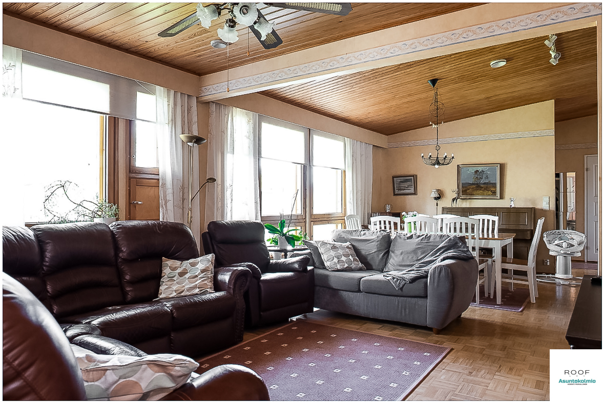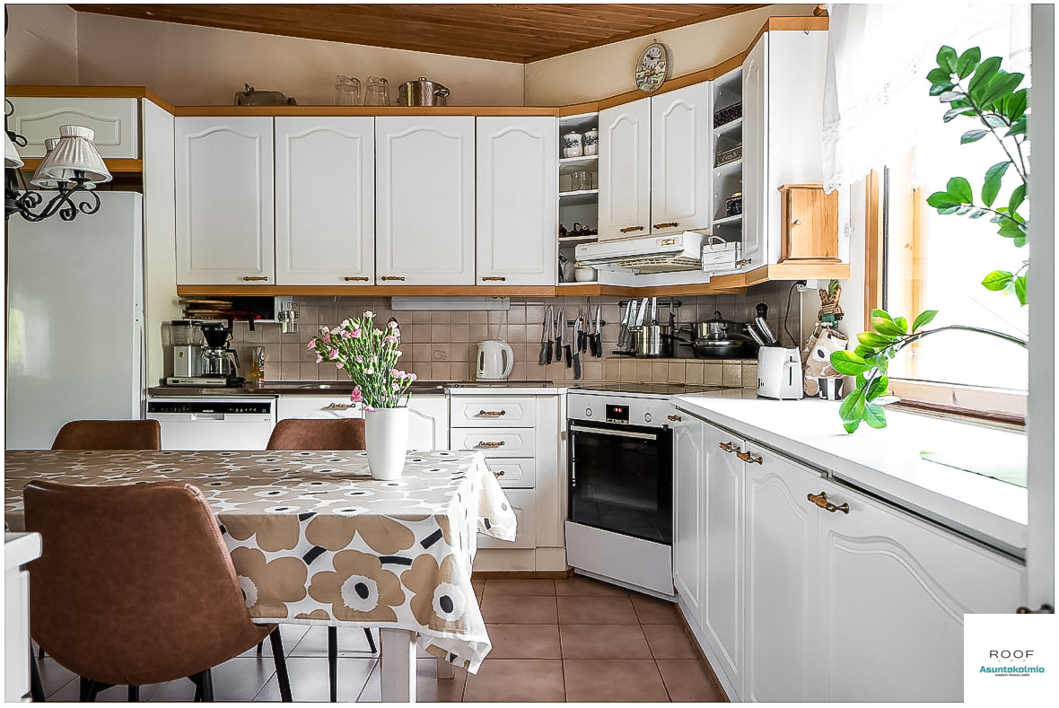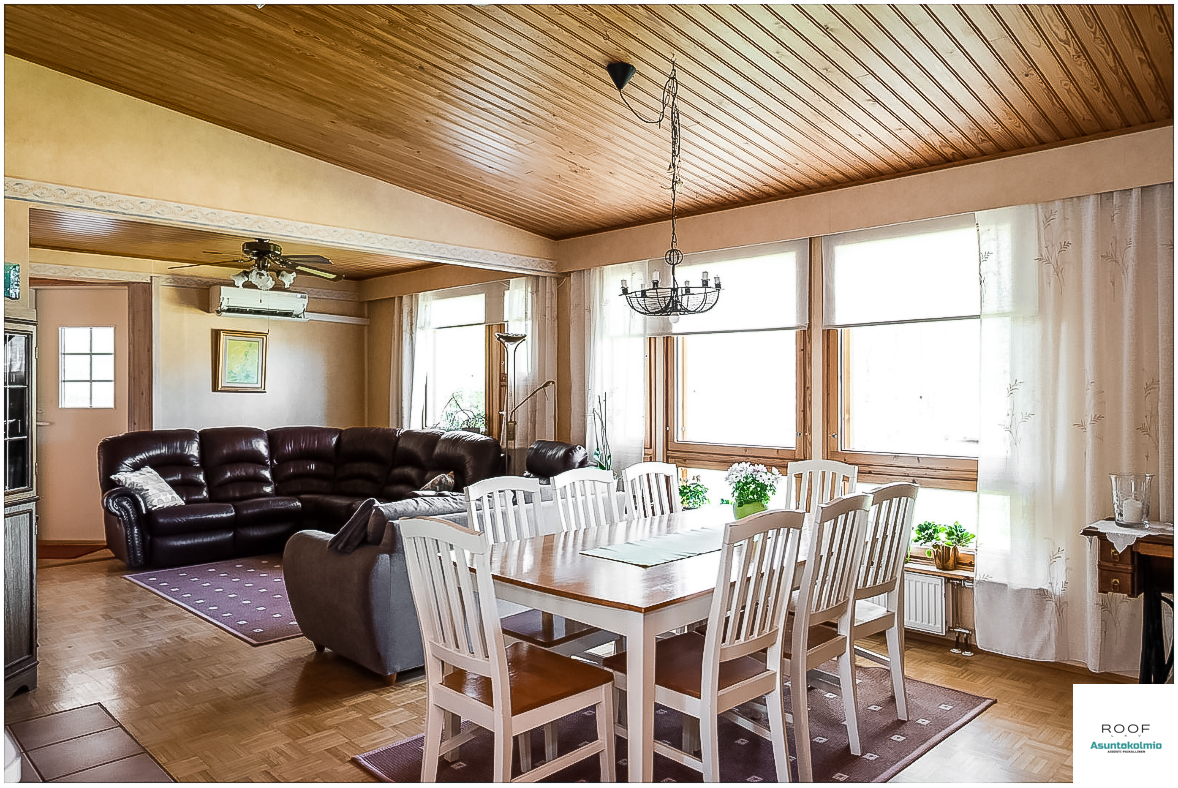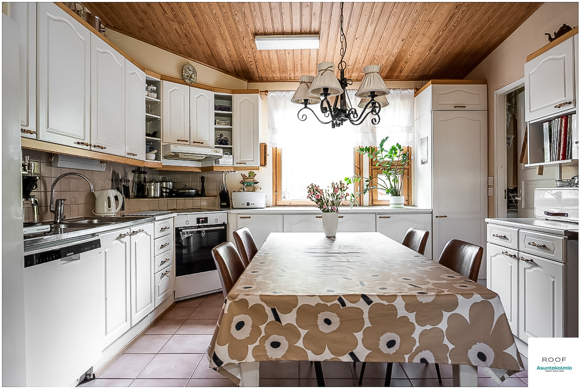 Kodin ehdoton sydän on iso ja valoisa oleskelutila, jossa tunnelmaa luo kaunis takka-leivinuuni yhdistelmä. Ilmalämpöpumppu tuo lisälämpöä viileinä päivinä ja viilennystä kesähelteillä. Keittiö on käytännöllinen ja reilut työskentelytilat tekevät ruoanlaitosta nautinnollista. Makuuhuoneita on viisi, joten tilaa löytyy niin perheenjäsenille kuin etätyöpisteillekin. Kaksi erillistä wc:tä ja kylpyhuoneen yhteydessä oleva kolmas wc helpottavat arjen sujuvuutta. Kesäiltojen kruununa toimii grillikota ja ulkosauna paljuineen, joissa ystävien ja perheen kanssa vietetyt hetket saavat aivan oman tunnelmansa. Lasitettu ja katettu terassi puuhelloineen houkuttelee viettämään aikaa ulkona pitkälle syksyyn.