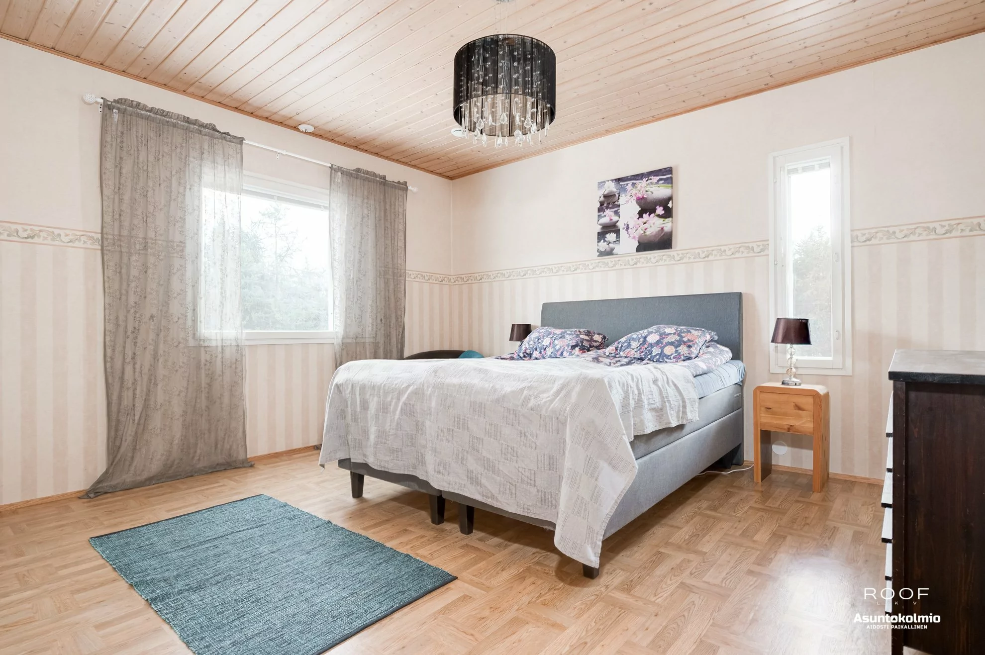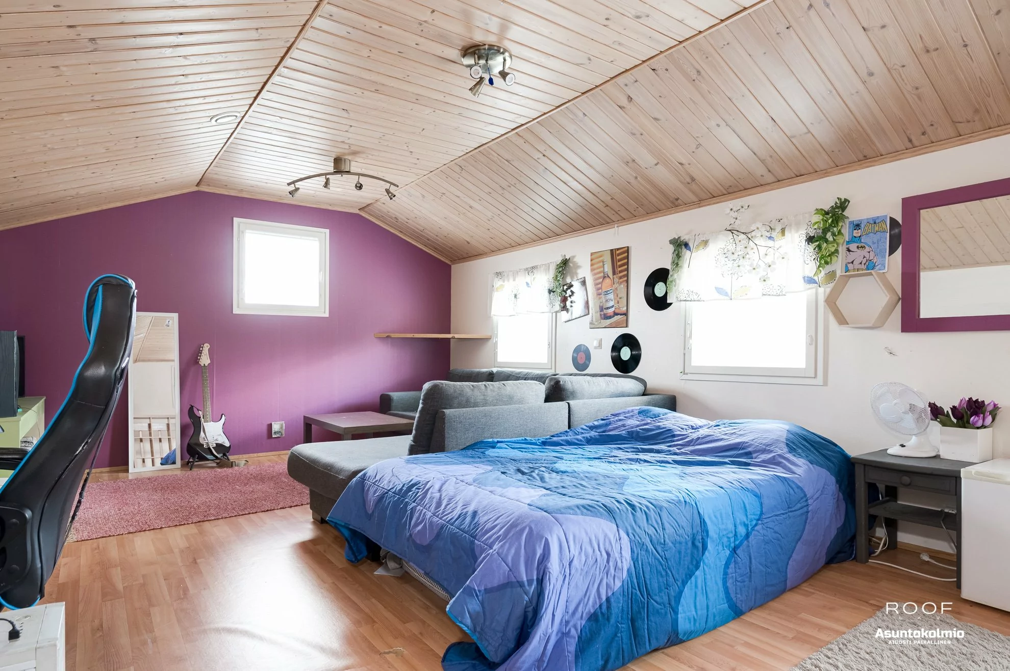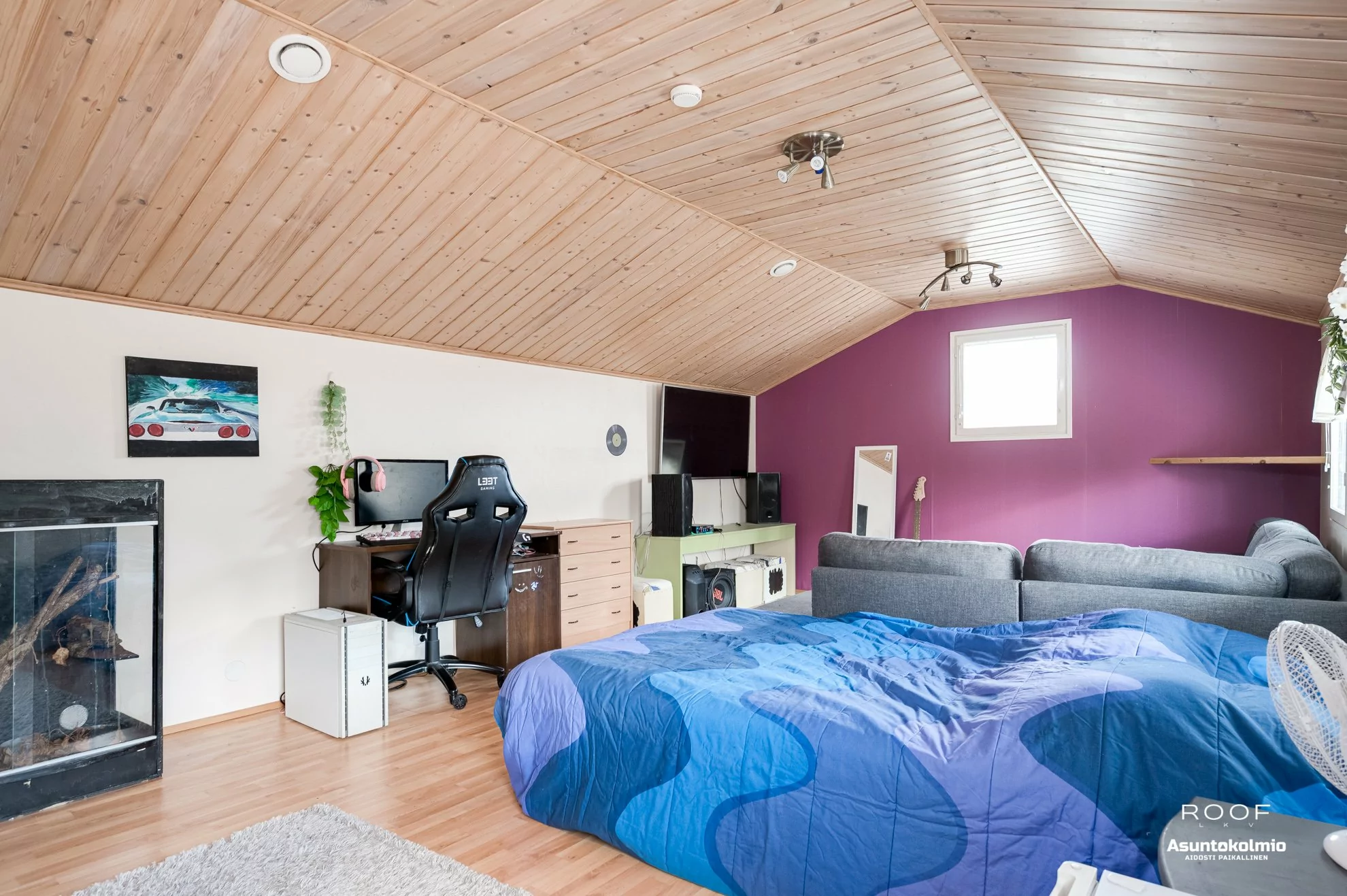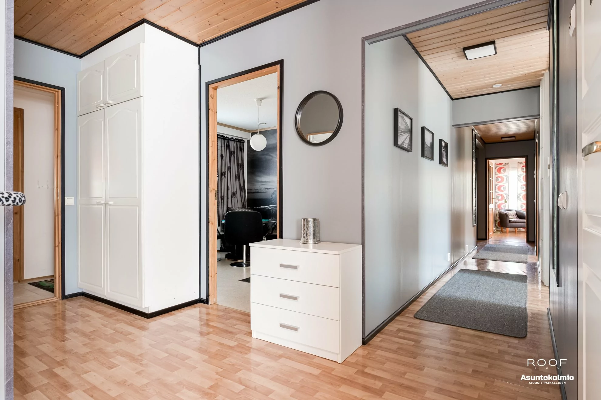 Tässä kodissa on viisi makuuhuonetta, kaksi kodinhoitohuonetta ja kolme wc:tä, mikä tekee arjen sujuvaksi ja helpottaa isommankin perheen toimintoja. Lisäksi iso parvitila mahdollistaa vaikka rauhallisen etätyöpisteen! Keittiö on varusteltu nykyaikaisilla kodinkoneilla sekä sisältäen paljon kaappi- ja laskutilaa. Olohuone on keittiön välittömässä läheisyydessä sek...