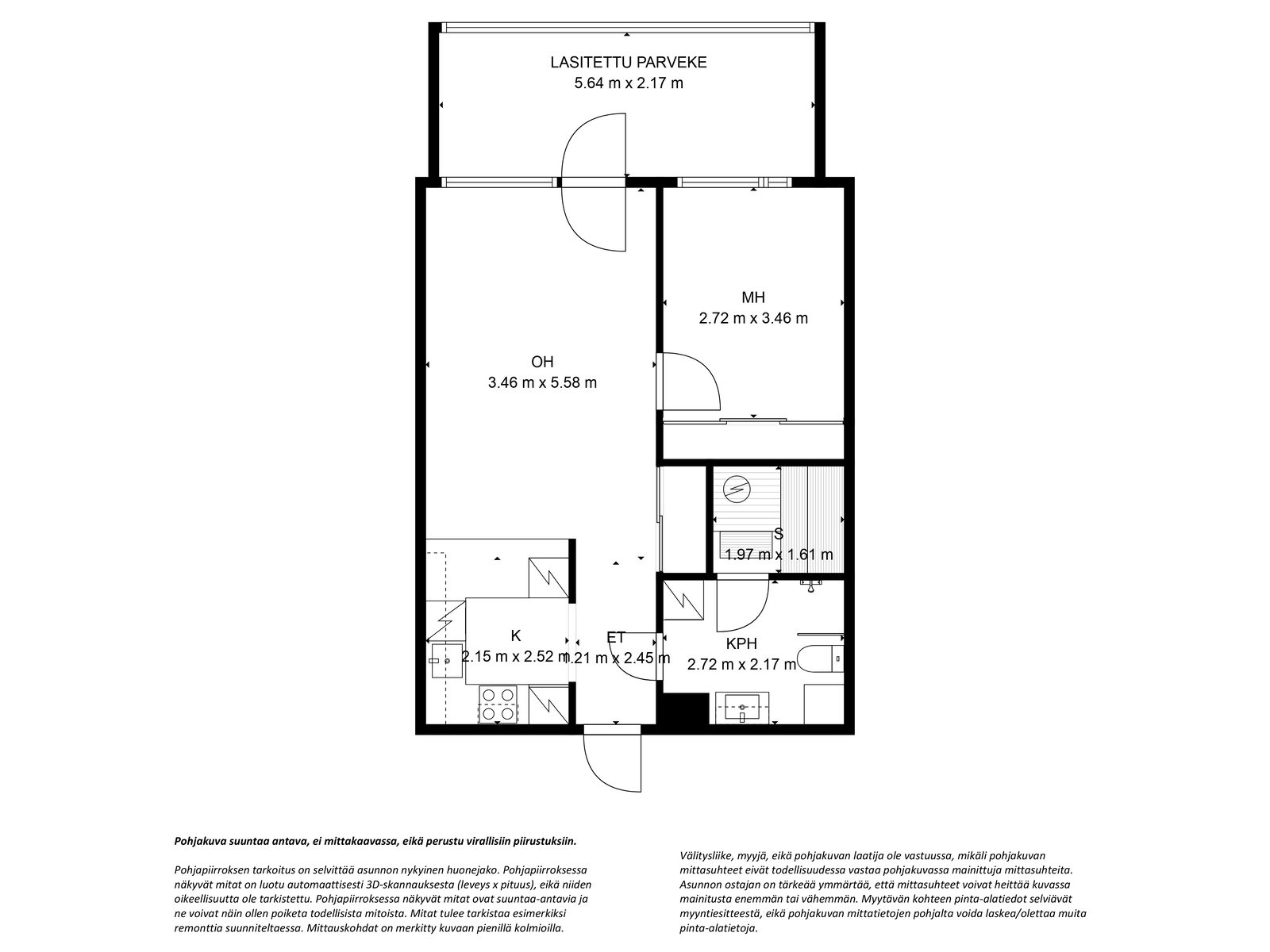 Särkiniementie 15 E 92 Lauttasaari, Helsinki 199 000 € 31 m2 1h, k, kph, lasitettu parveke kerrostalo , 1974