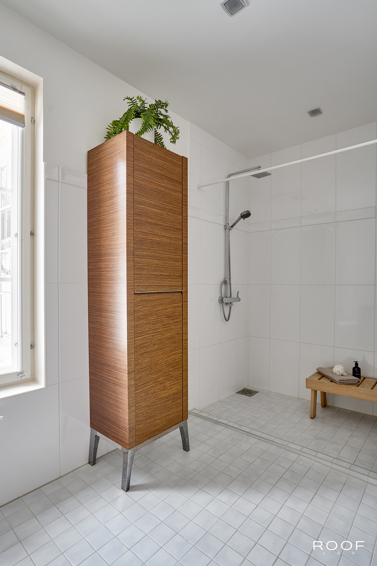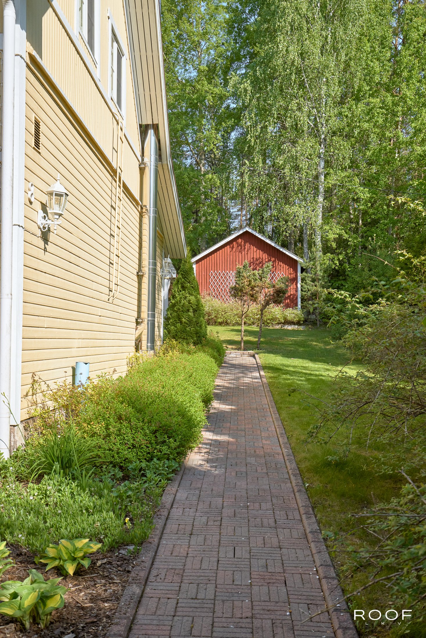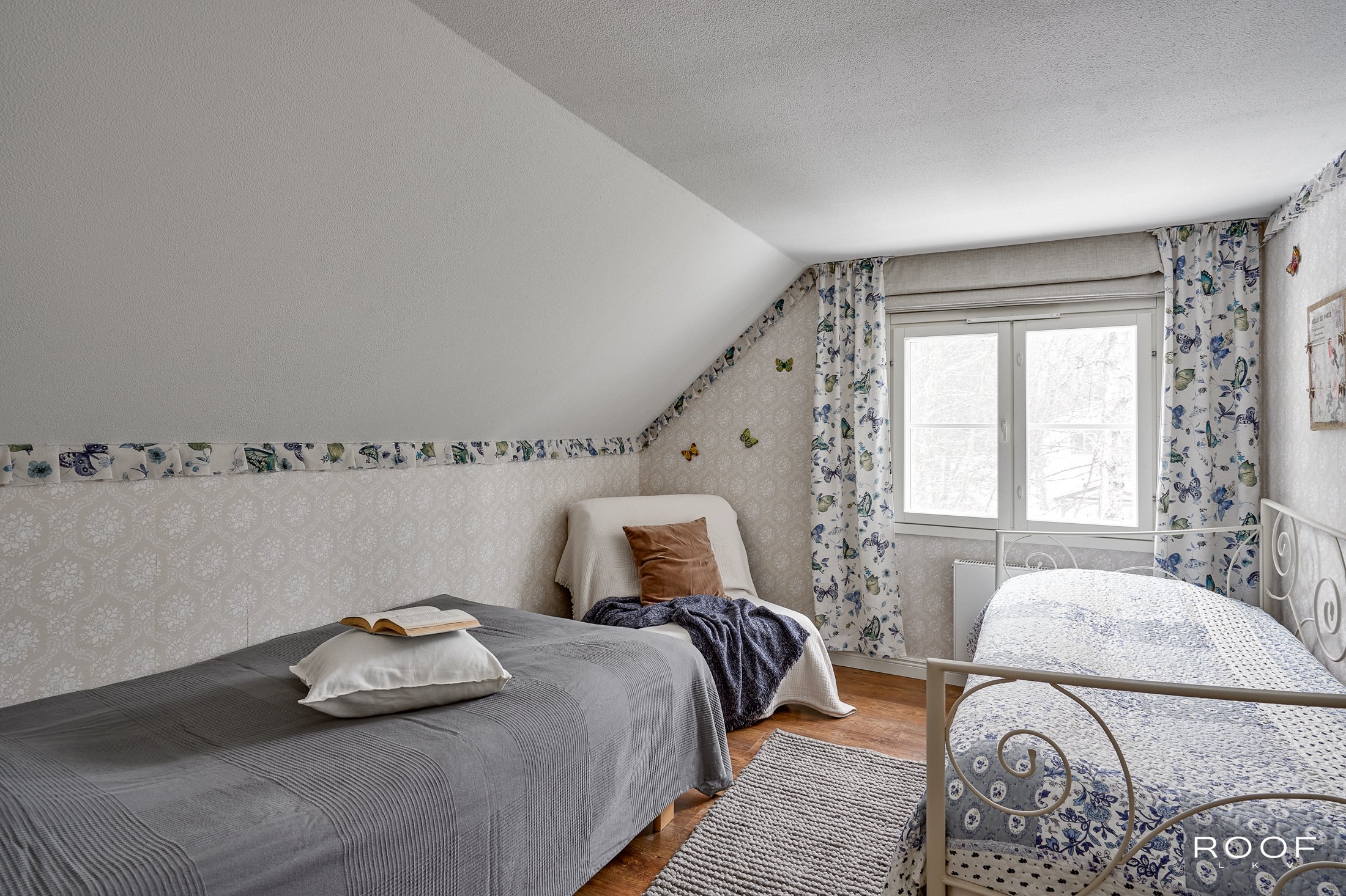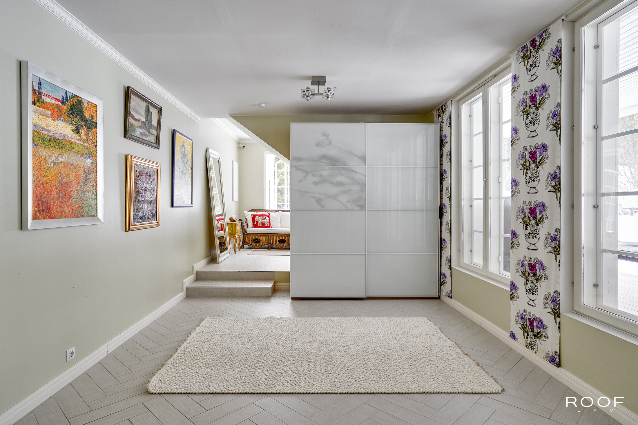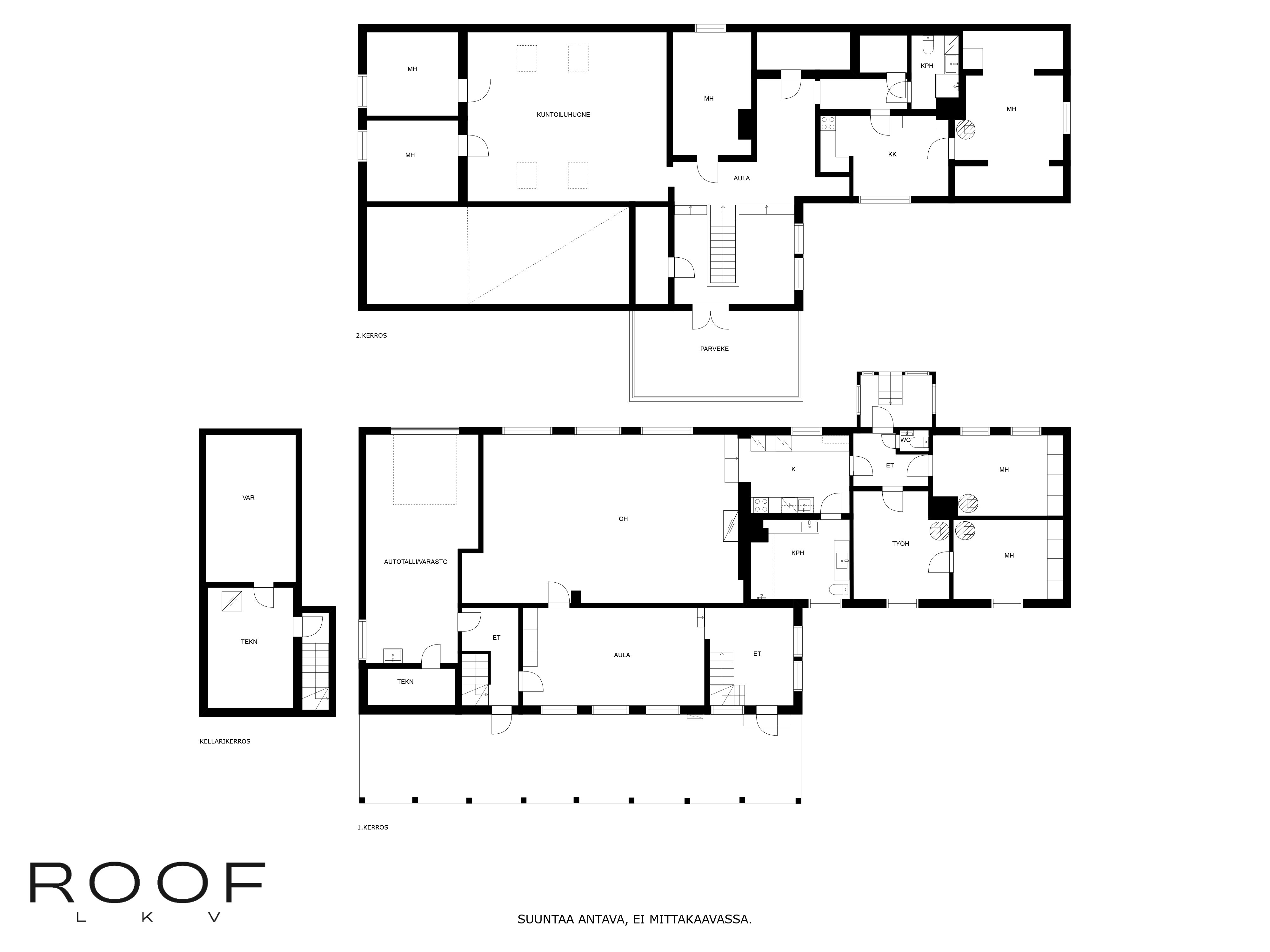 Alakerta: 3 mh, k, oh/sali, kph, wc, eteisaula, at. Yläkerta: 4 mh, k, oh, kph, aula, 3 vh, p. Kellari: lämmönjakohuone, khh/ askartelutila. 345 m2 + 143 m2.