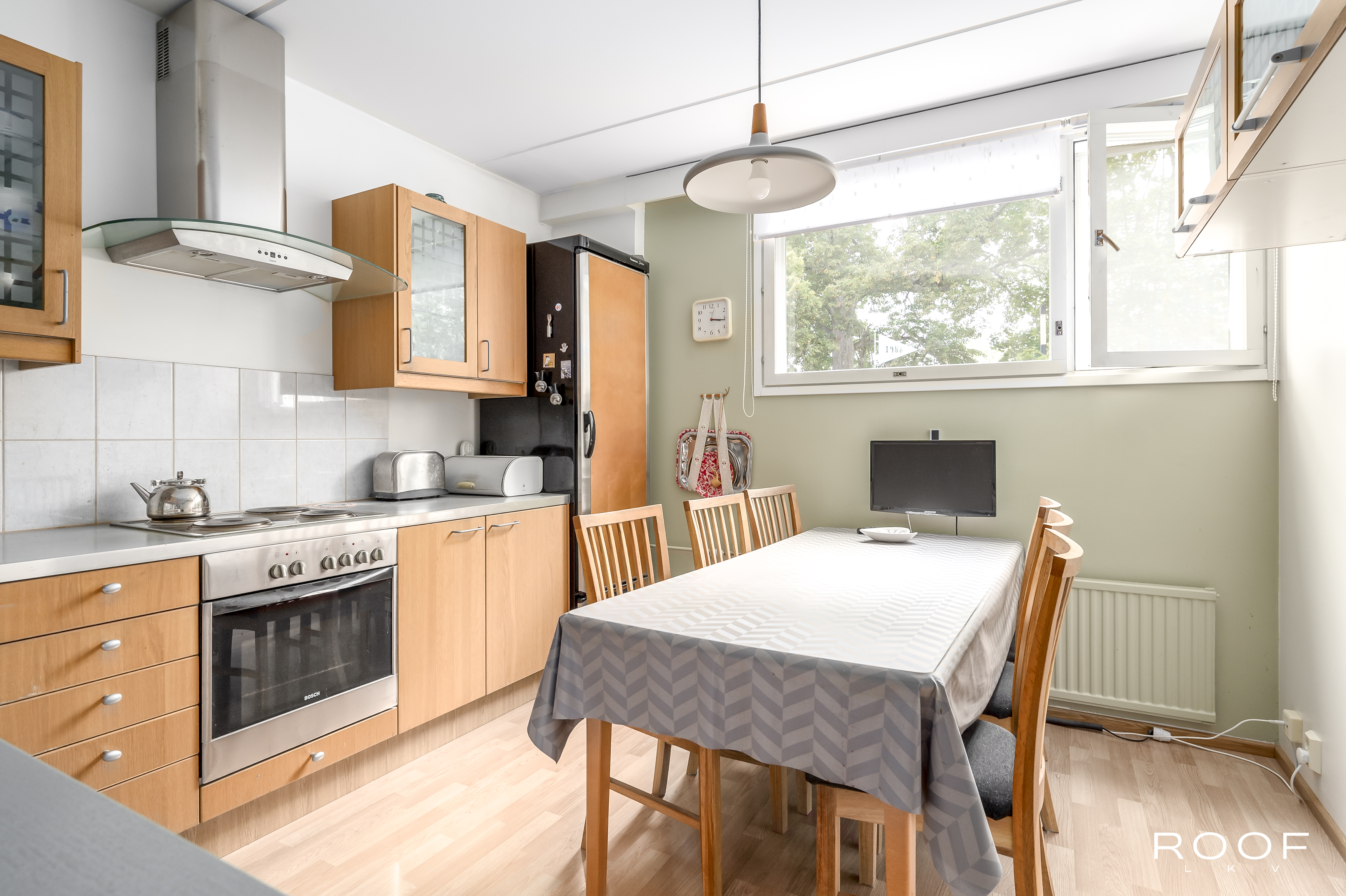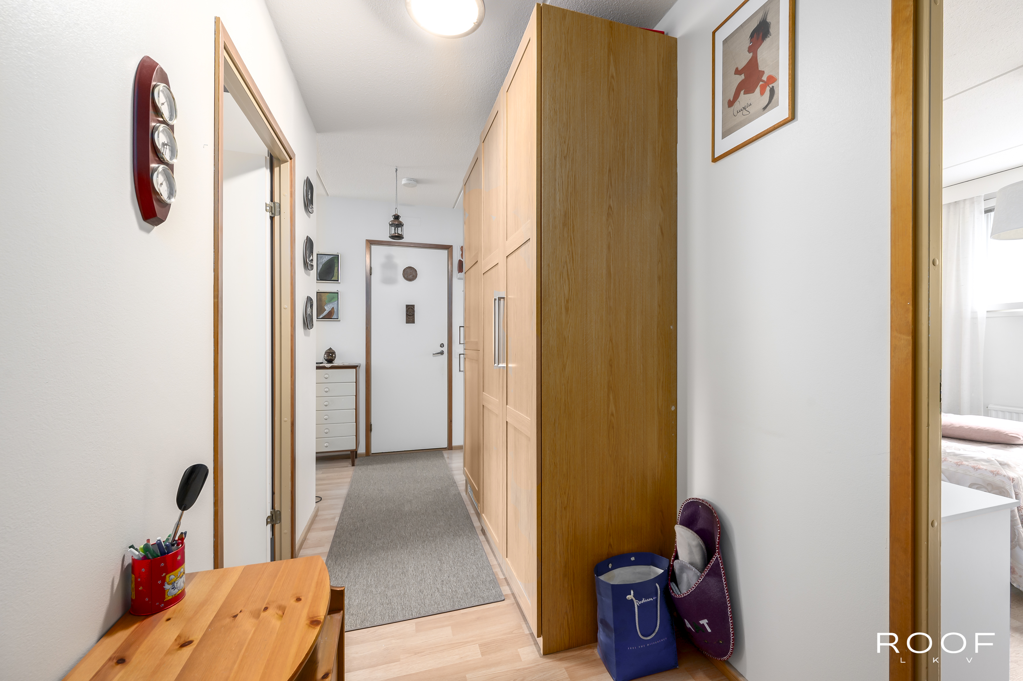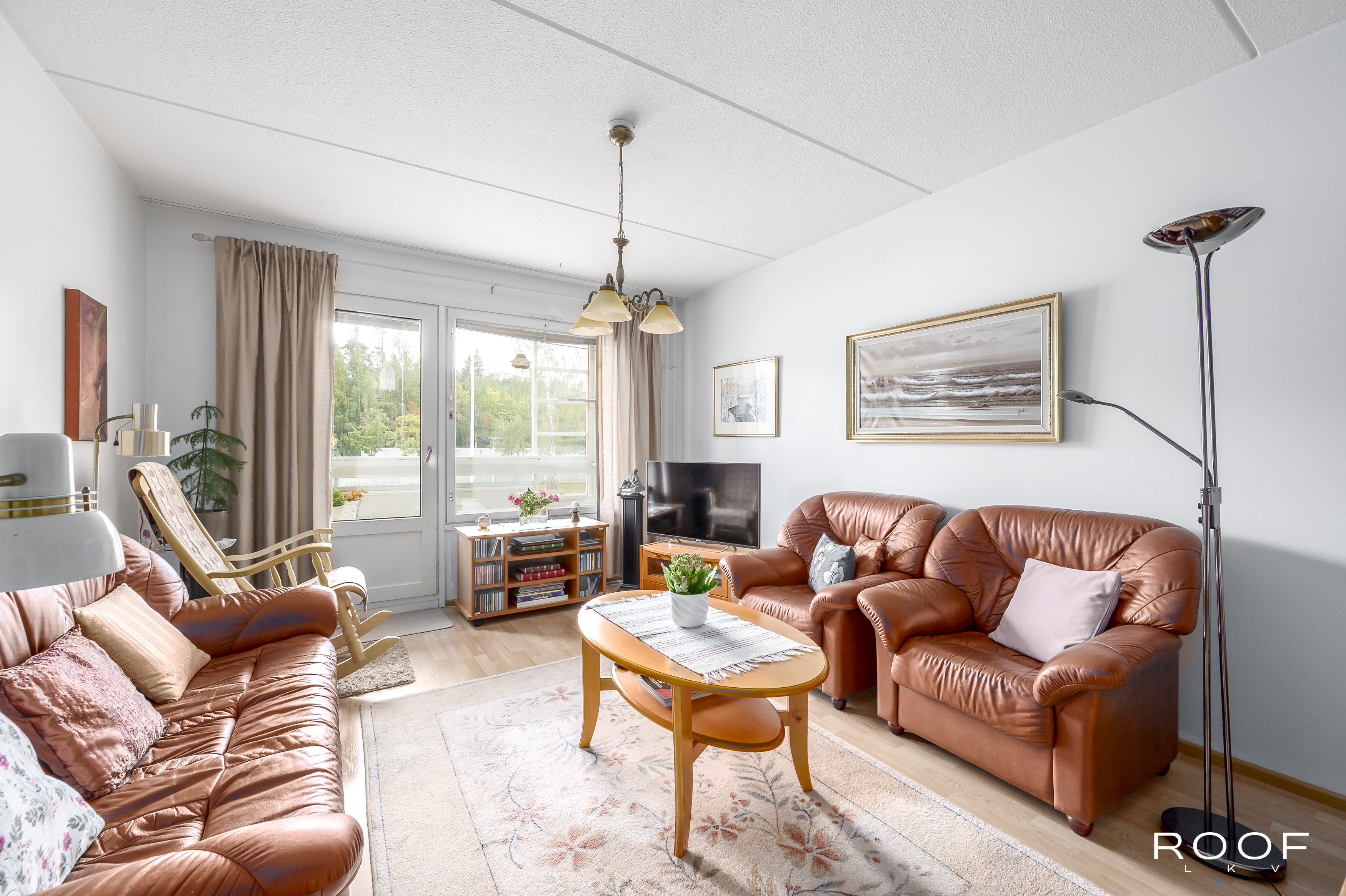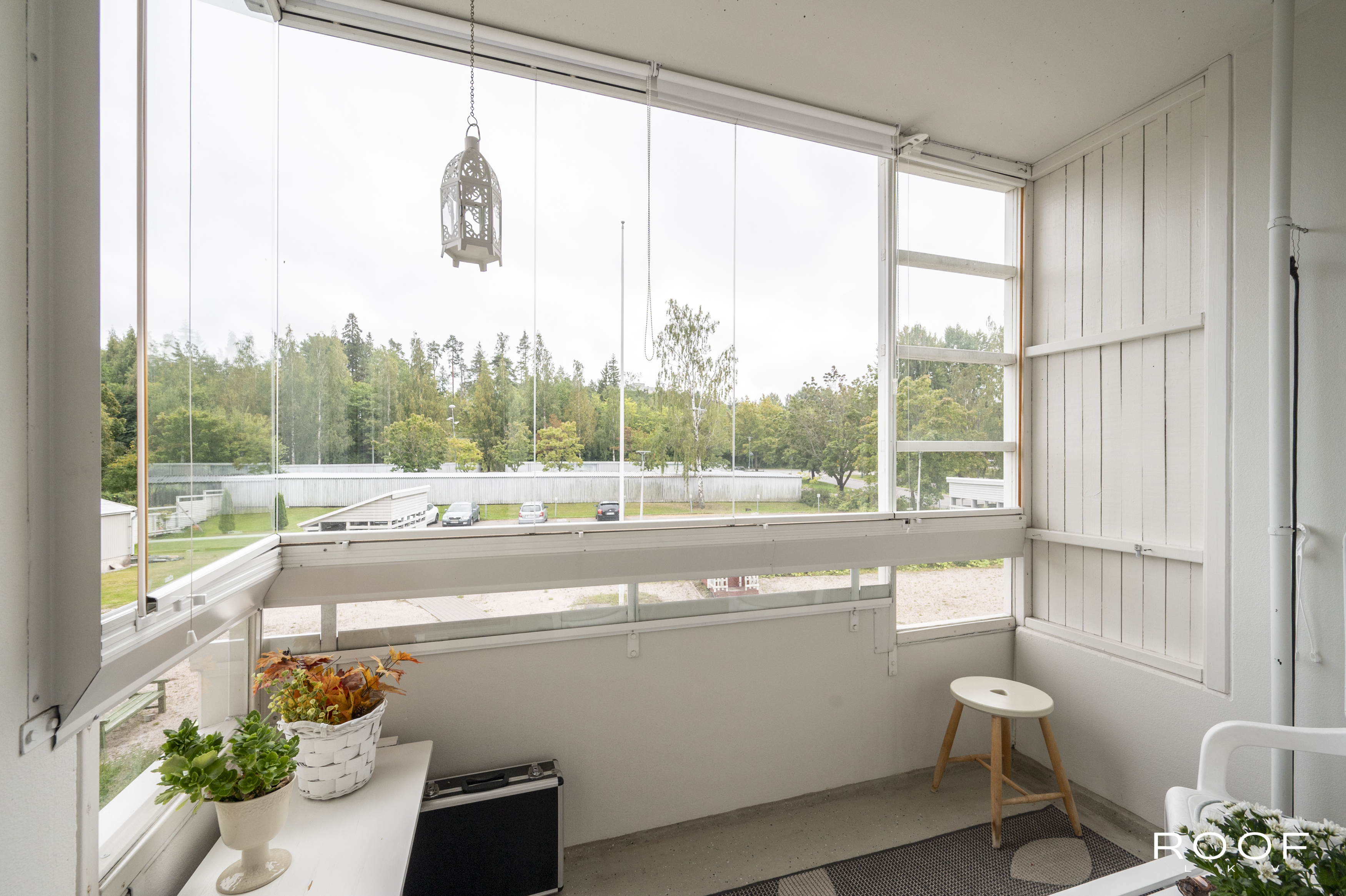 Tämä kolmen huoneen valoisa koti sopii erinomaisesti niin perheelle kuin pariskunnallekin. Asunnon ehdoton etu on runsas säilytystila ja tilava päämakuuhuone. Toinen, hieman pienempi makuuhuone toimii mainiosti esimerkiksi työ- tai vierashuoneena. Keittiöön mahtuu hyvin suurempikin ruokapöytä, ja tilava olohuone mahdollistaa monipuoliset sisustusratkaisut. Olohuoneesta on käynti asunnon omalle lasitetulle etelänsuuntaiselle parvekkeelle, jossa voi nauttia auringosta lähes ympäri vuoden.