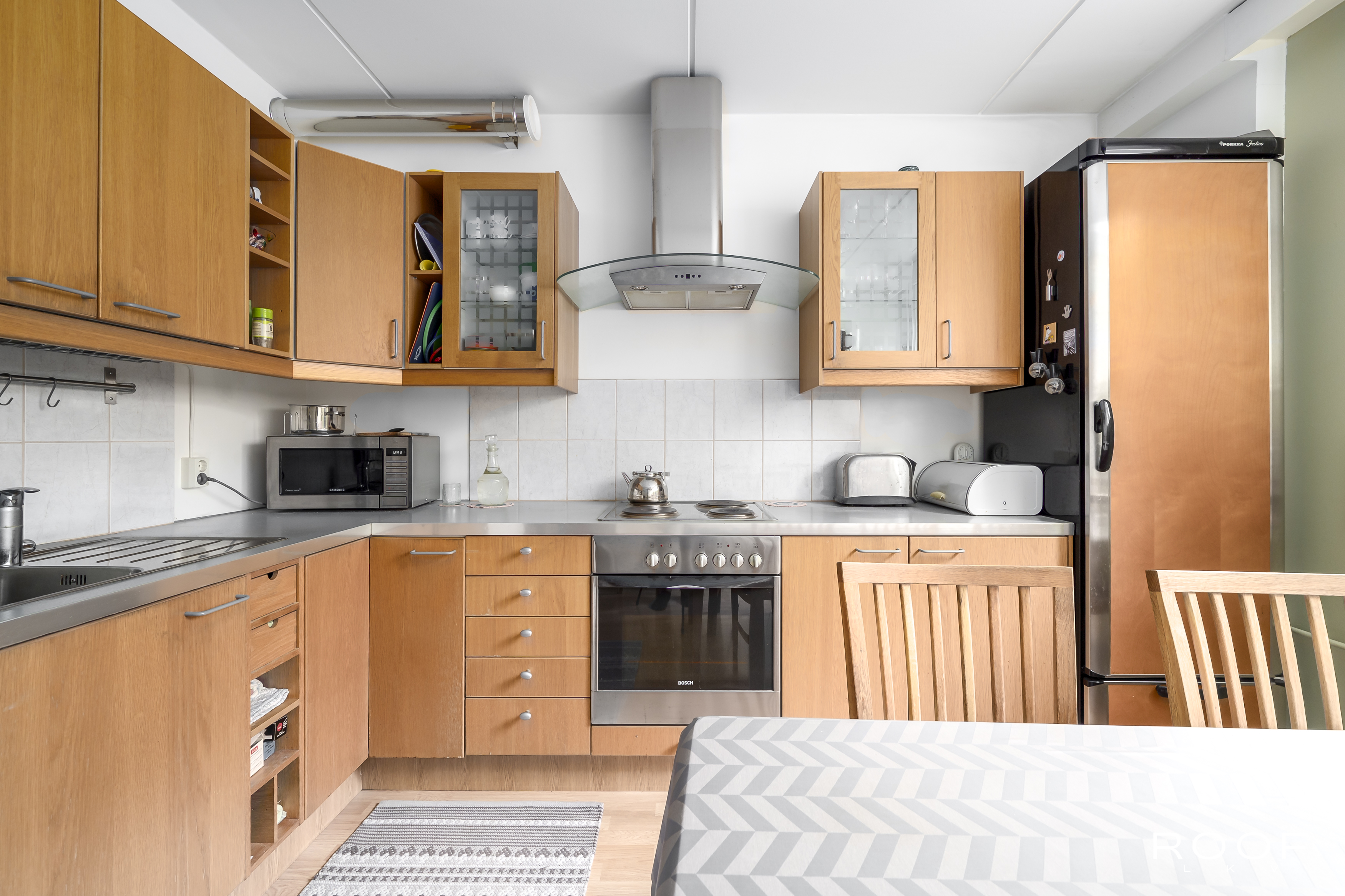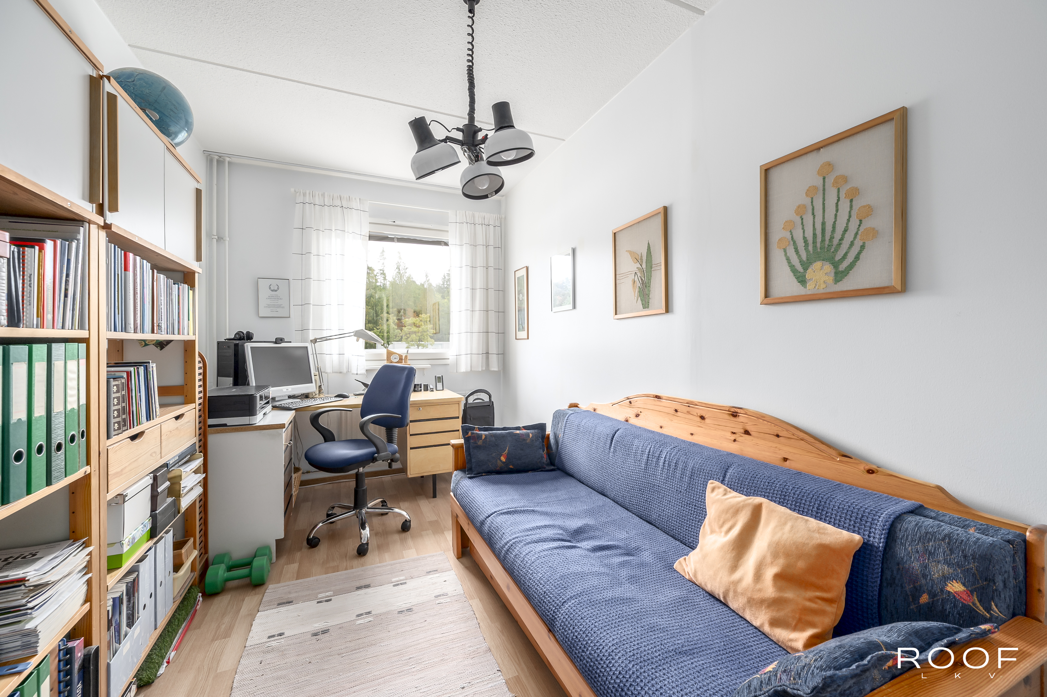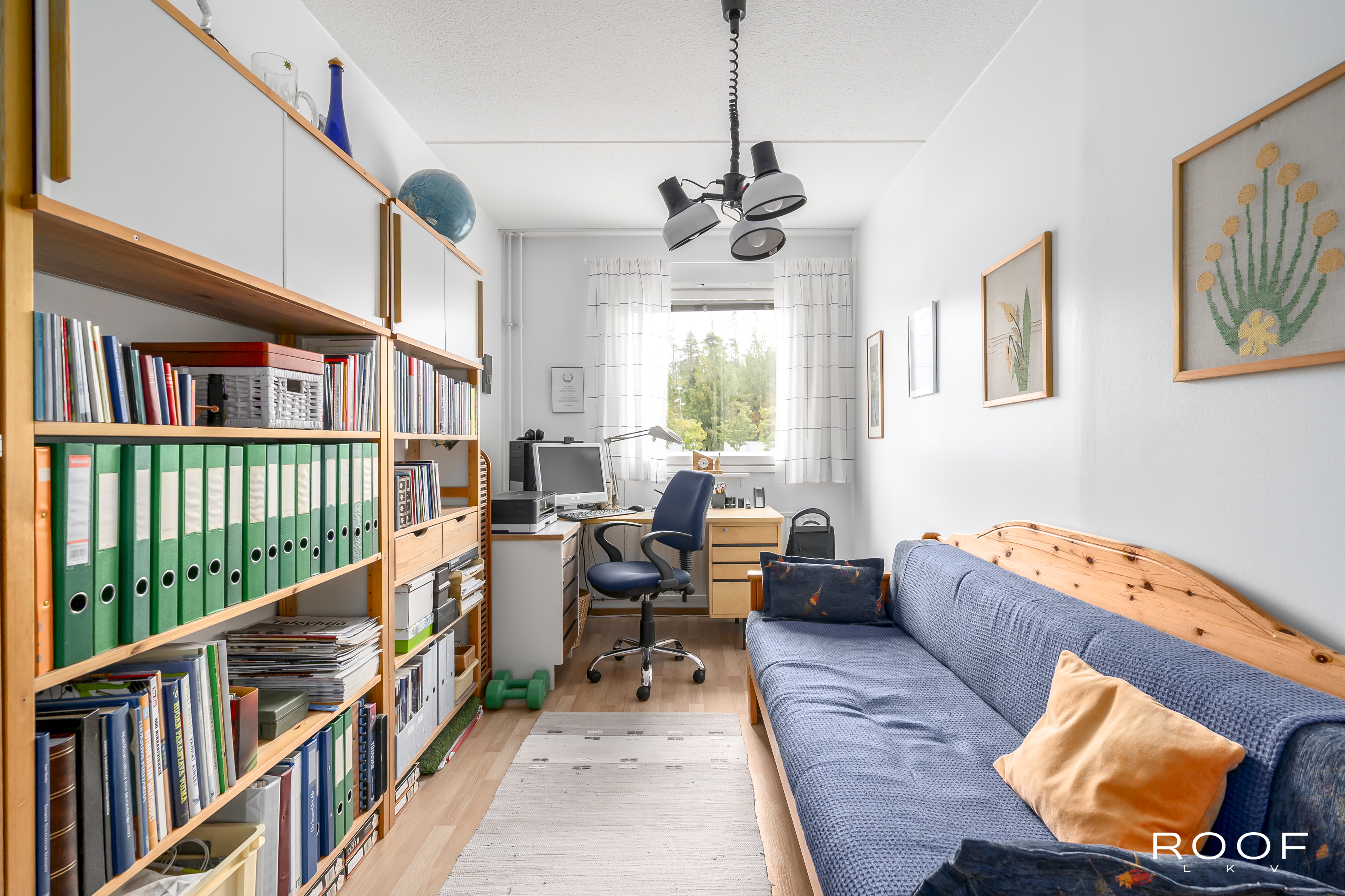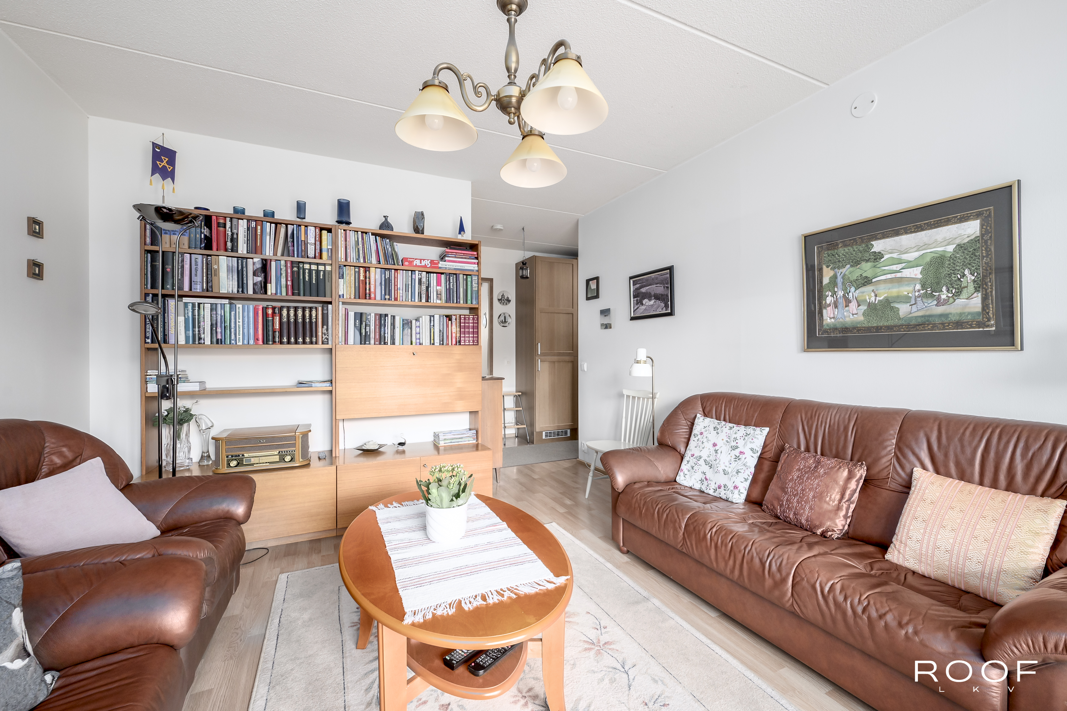 Tämä kolmen huoneen valoisa koti sopii erinomaisesti niin perheelle kuin pariskunnallekin. Asunnon ehdoton etu on runsas säilytystila ja tilava päämakuuhuone. Toinen, hieman pienempi makuuhuone toimii mainiosti esimerkiksi työ- tai vierashuoneena. Keittiöön mahtuu hyvin suurempikin ruokapöytä, ja tilava olohuone mahdollistaa monipuoliset sisustusratkaisut. Olohuoneesta on käynti asunnon omalle lasitetulle etelänsuuntaiselle parvekkeelle, jossa voi nauttia auringosta lähes ympäri vuoden.