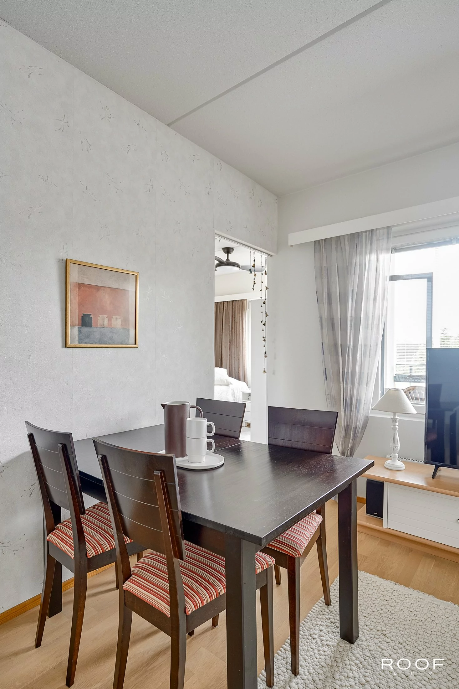 Tämä siistikuntoinen kaksio tarjoaa helppoa ja mukavaa asumista hissitalon toisessa kerroksessa - esteetön kulku ja automaattiovet tekevät arjesta sujuvaa. Asunnon pohjaratkaisu on käytännöllinen: keittiö ja olohuone muodostavat yhtenäisen tilan, jossa on tilaa sekä oleskeluun että ruokailuun.