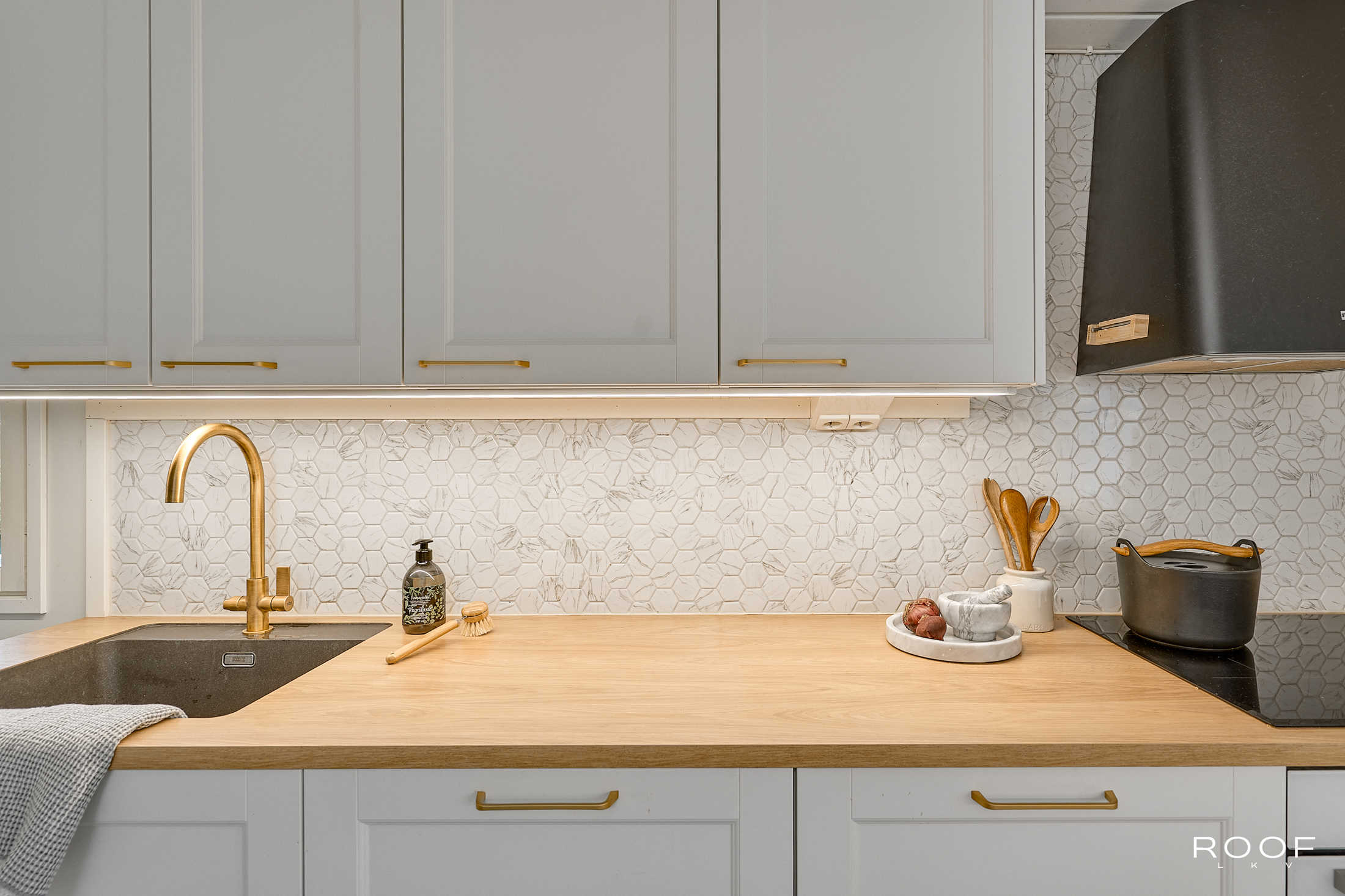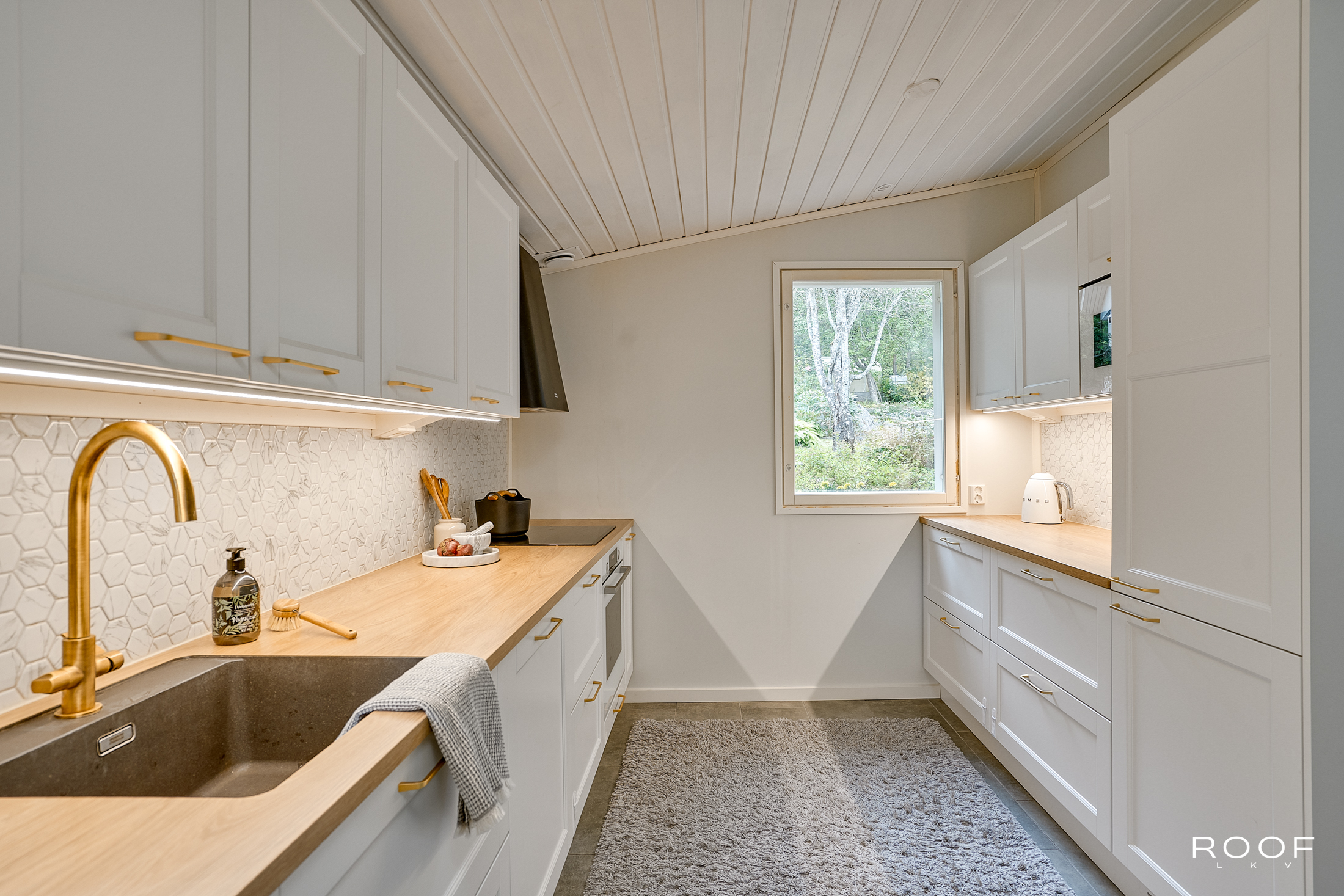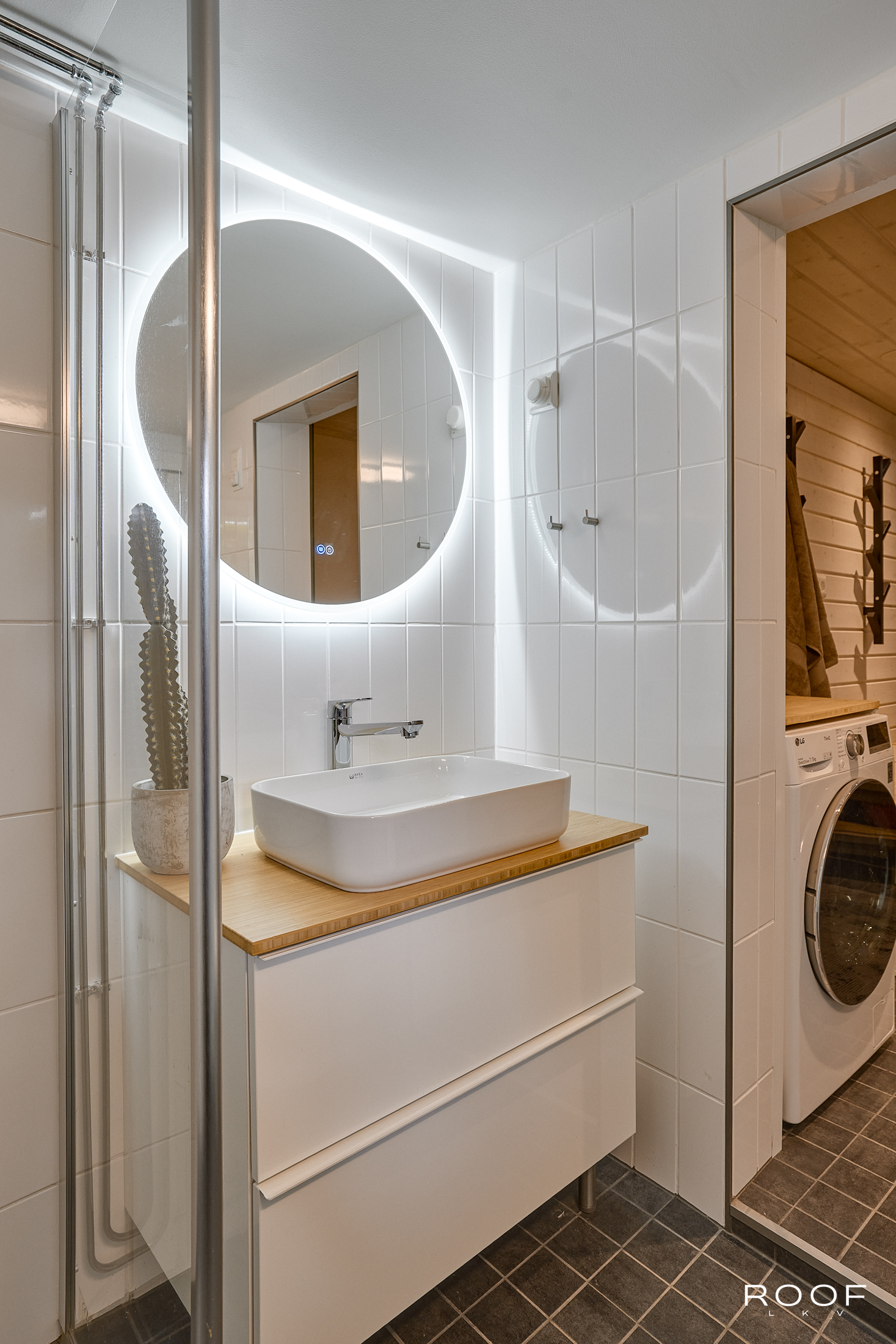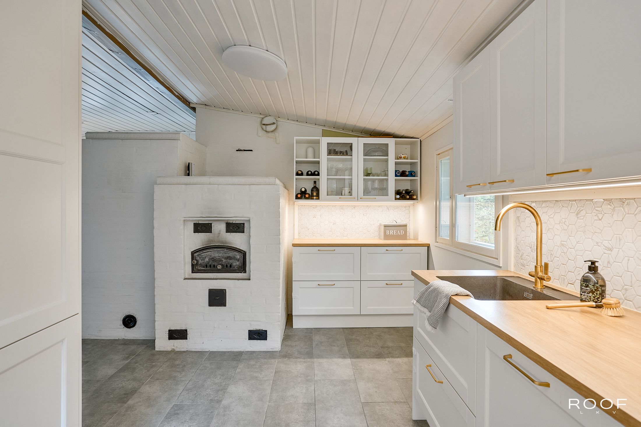 kylpyhuone, sauna, kodinhoitohuone ja keittiö uusittu