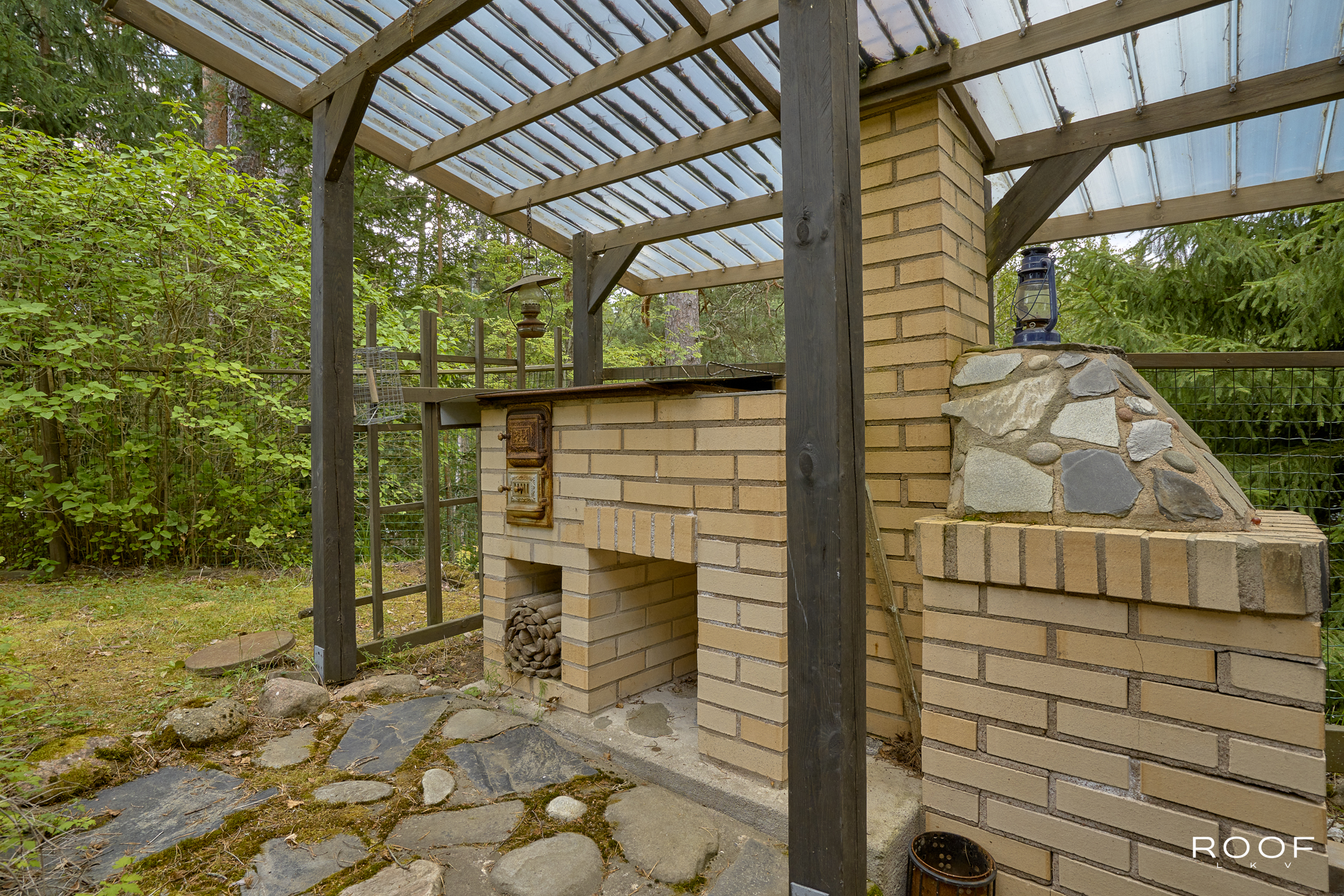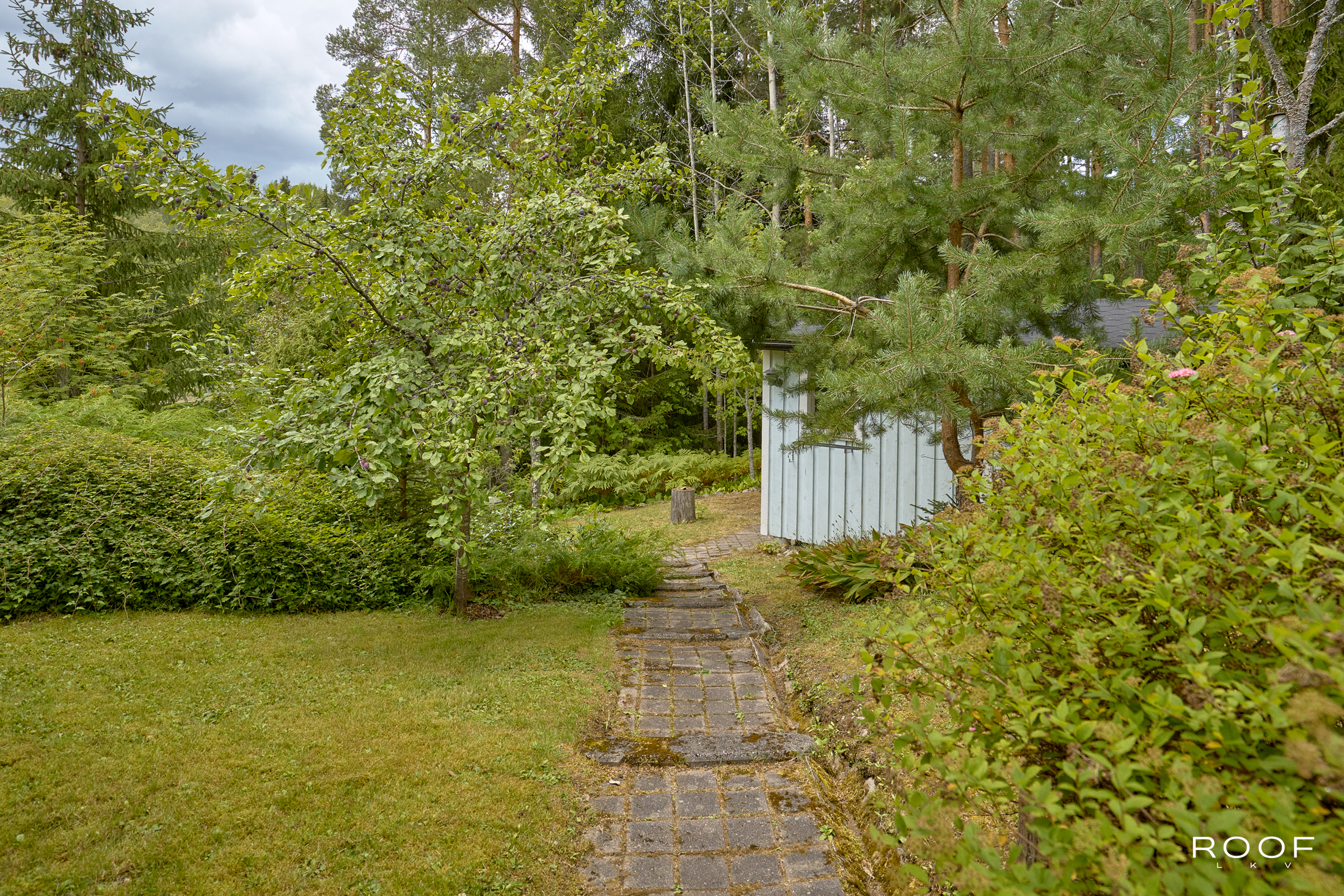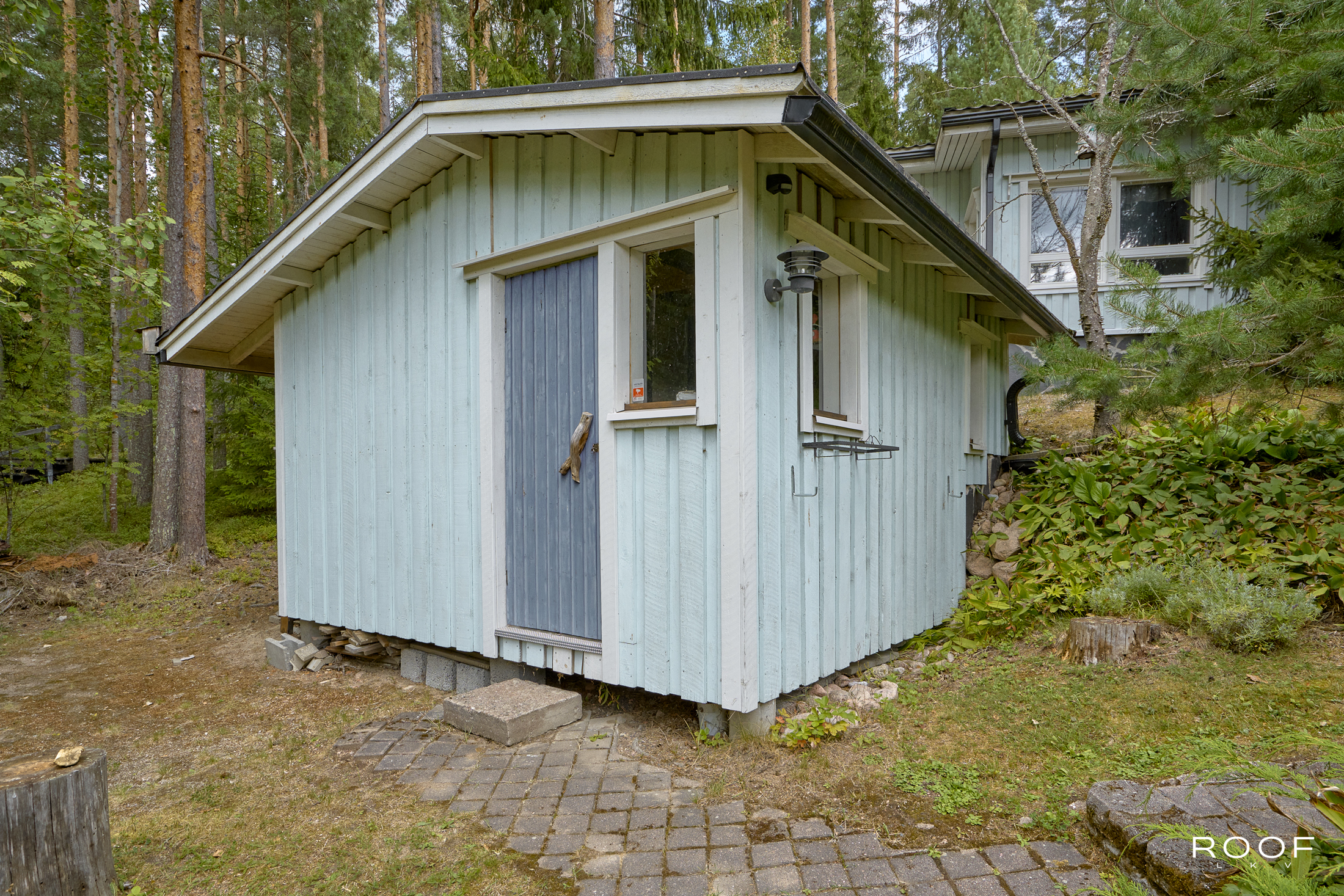 Pihapiirissä sijaitsee vuonna 2011 valmistunut ulkorakennus, jossa on autotalli, autokatos, varasto sekä takkatupa makuuhuoneella – erinomainen tila vierasmajaksi tai etätyöskentelyyn.