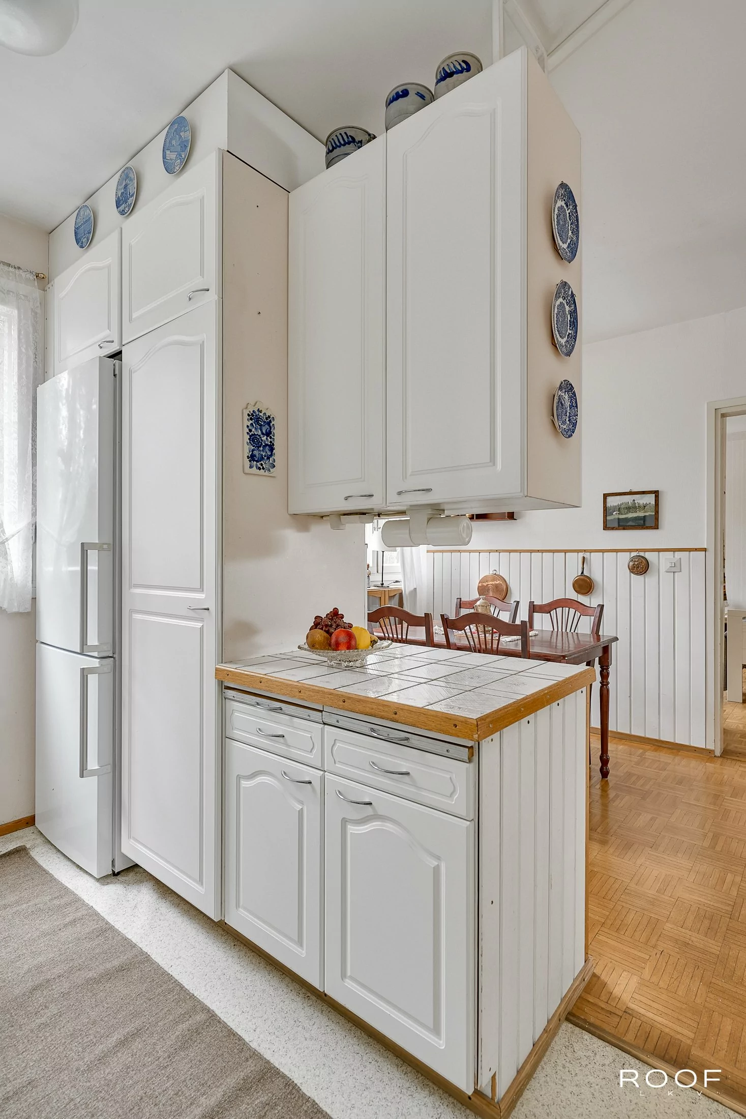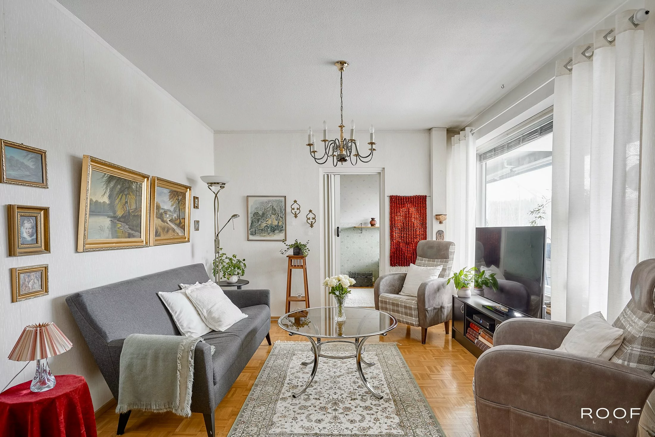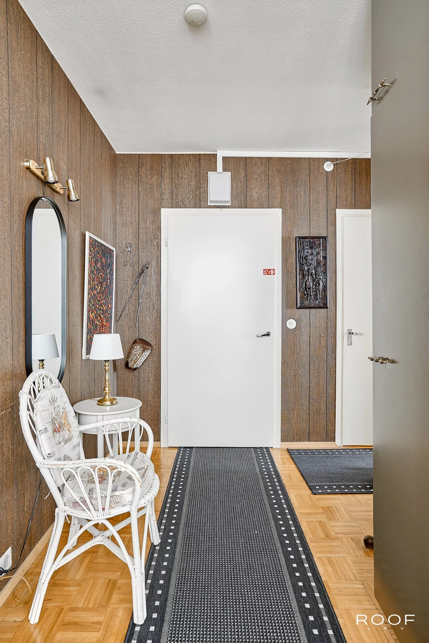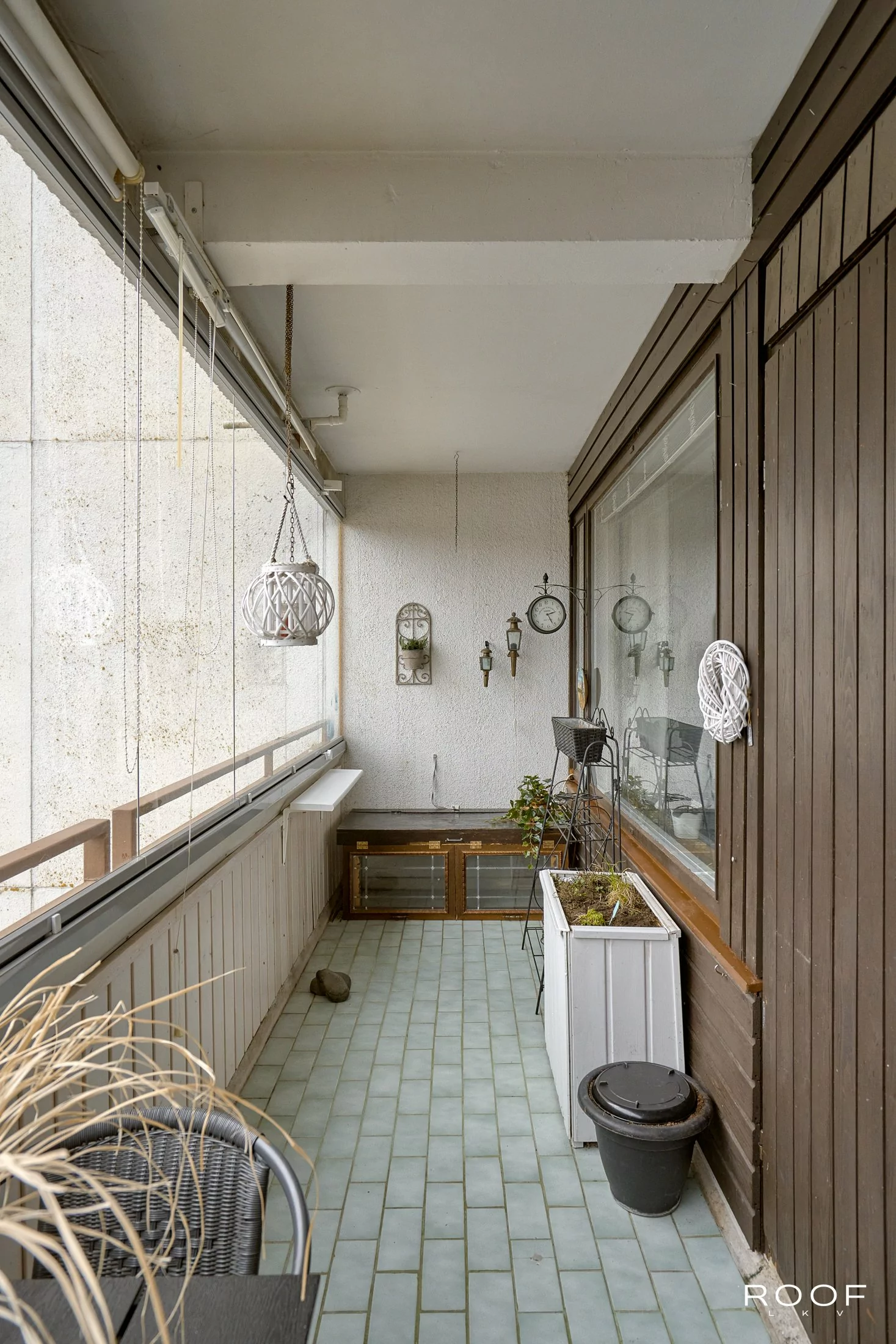 Talon neljännessä kerroksessa sijaitseva, läpi talon menevä huoneisto. Kaksi hyvän kokoista makuuhuonetta, joista on kulku huoneiden yhteiseen vaatehuoneeseen. Keittiön yhteydessä on erillinen ruokailutila ja kylpyhuoneessa on paikka pesukoneelle. Erillinen wc tuo toimivuutta arkeen.