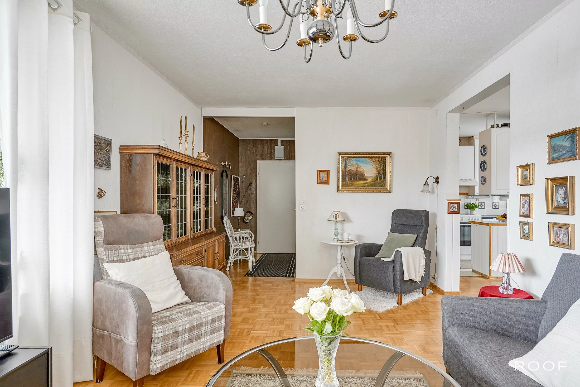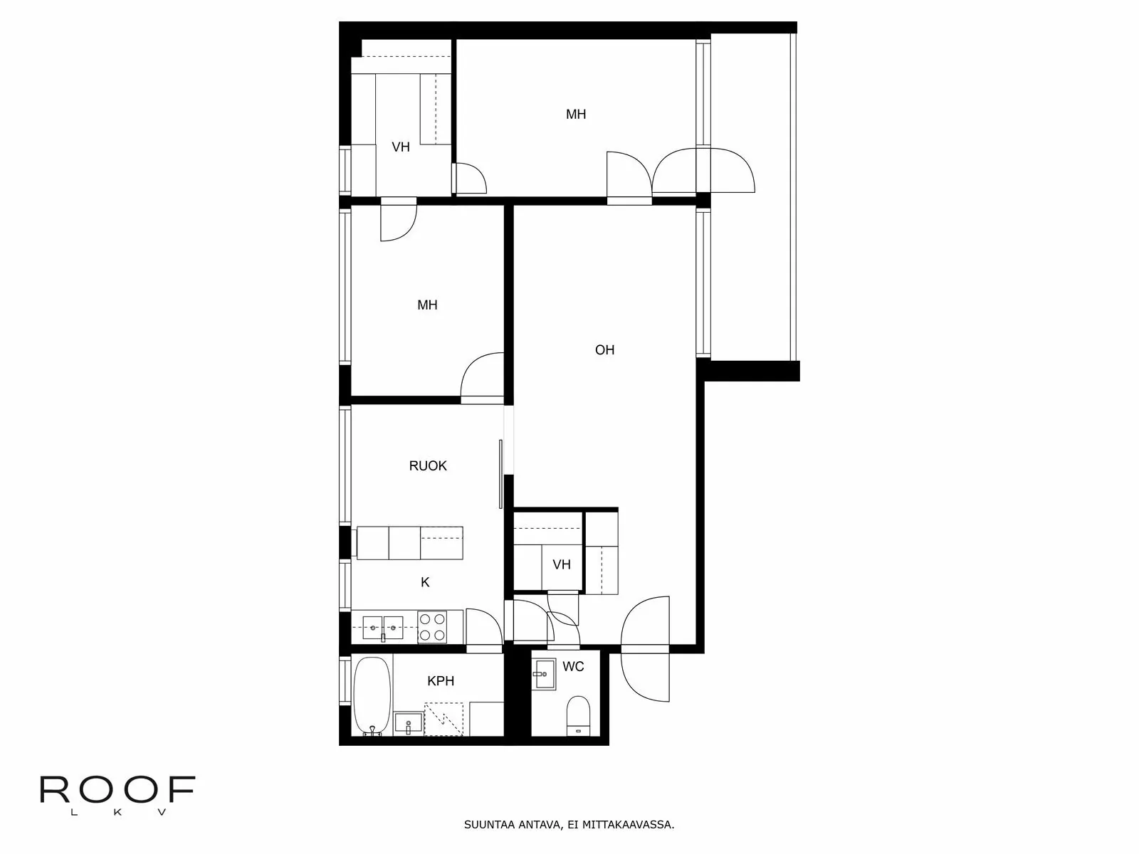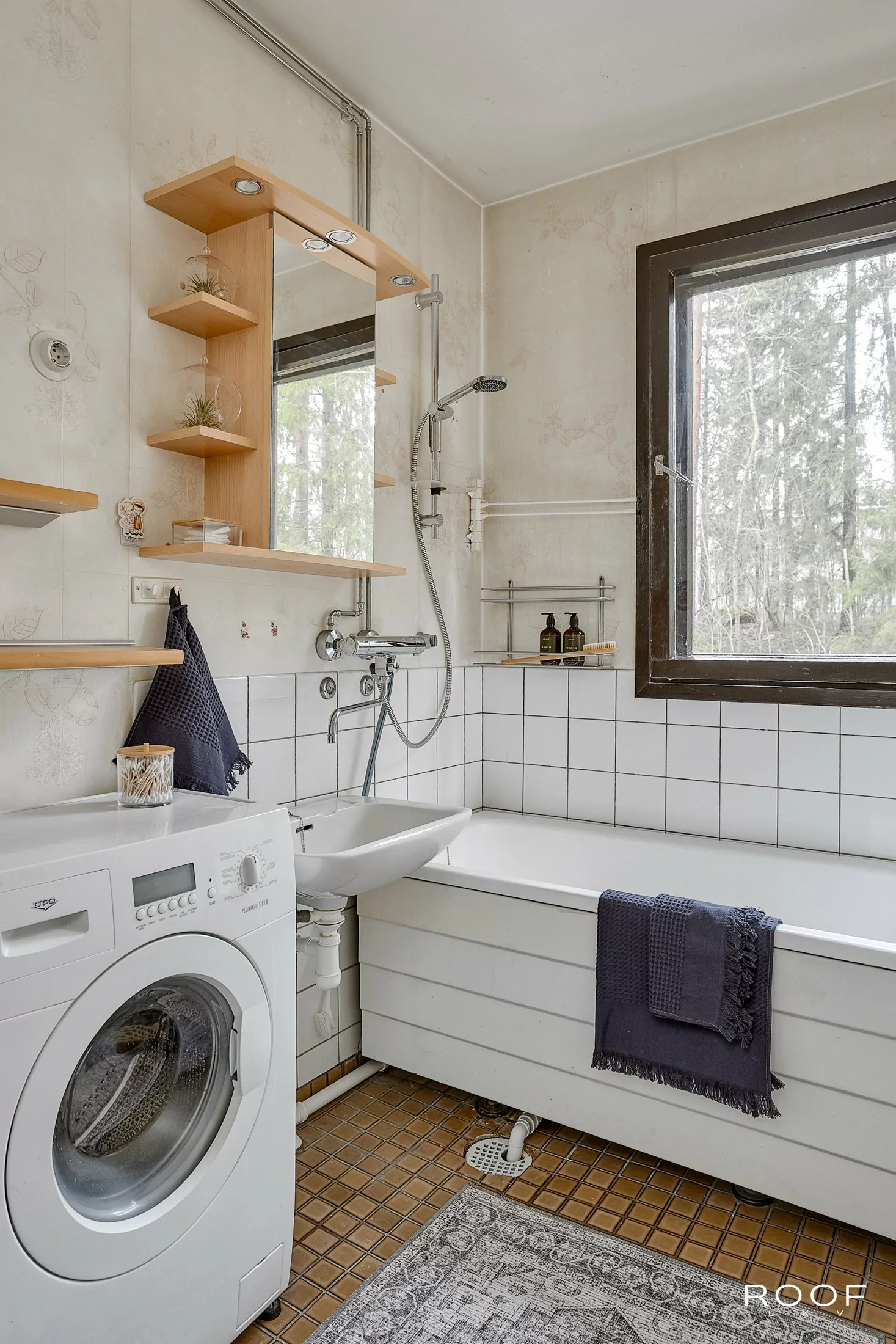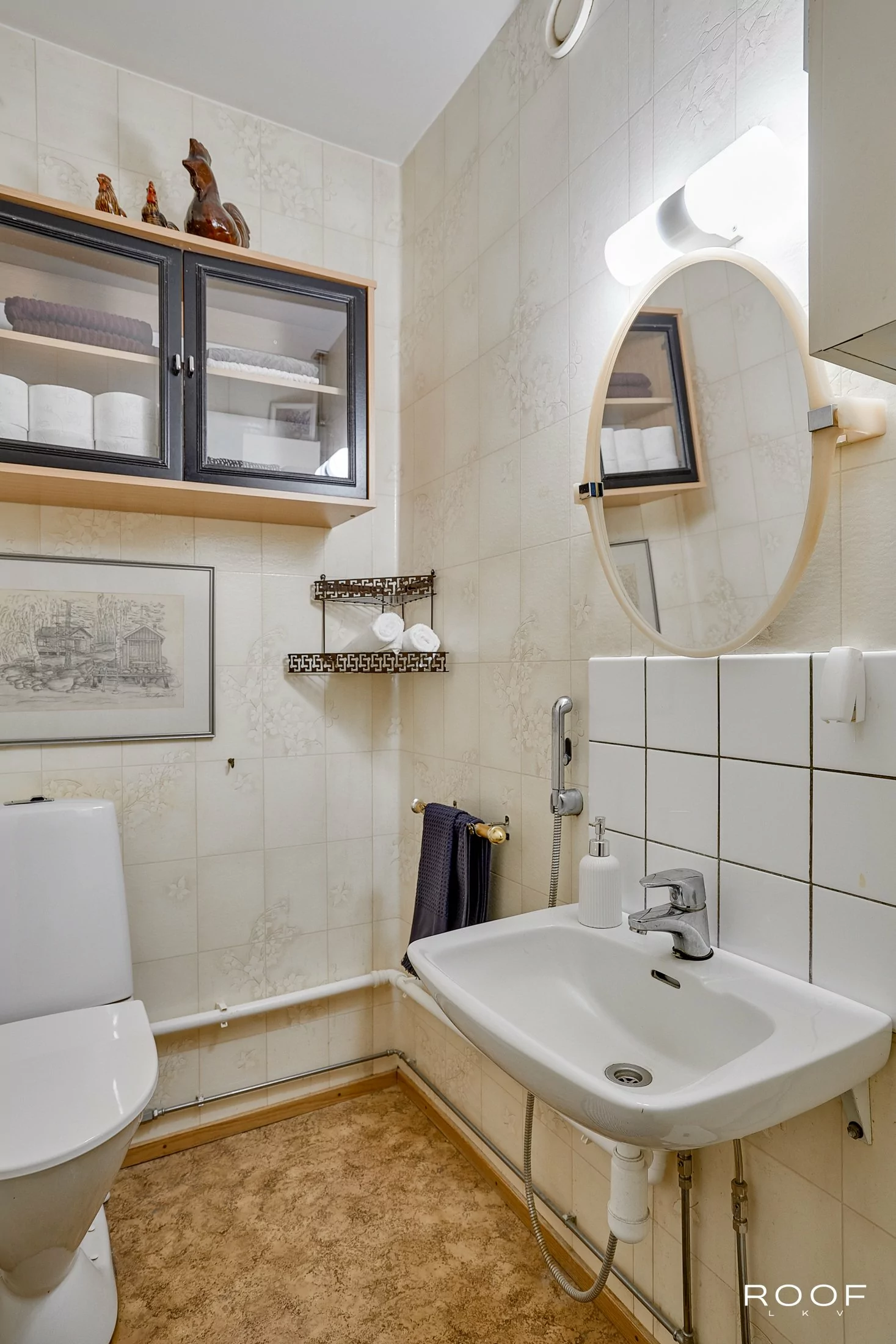 Talon neljännessä kerroksessa sijaitseva, läpi talon menevä huoneisto. Kaksi hyvän kokoista makuuhuonetta, joista on kulku huoneiden yhteiseen vaatehuoneeseen. Keittiön yhteydessä on erillinen ruokailutila ja kylpyhuoneessa on paikka pesukoneelle. Erillinen wc tuo toimivuutta arkeen.