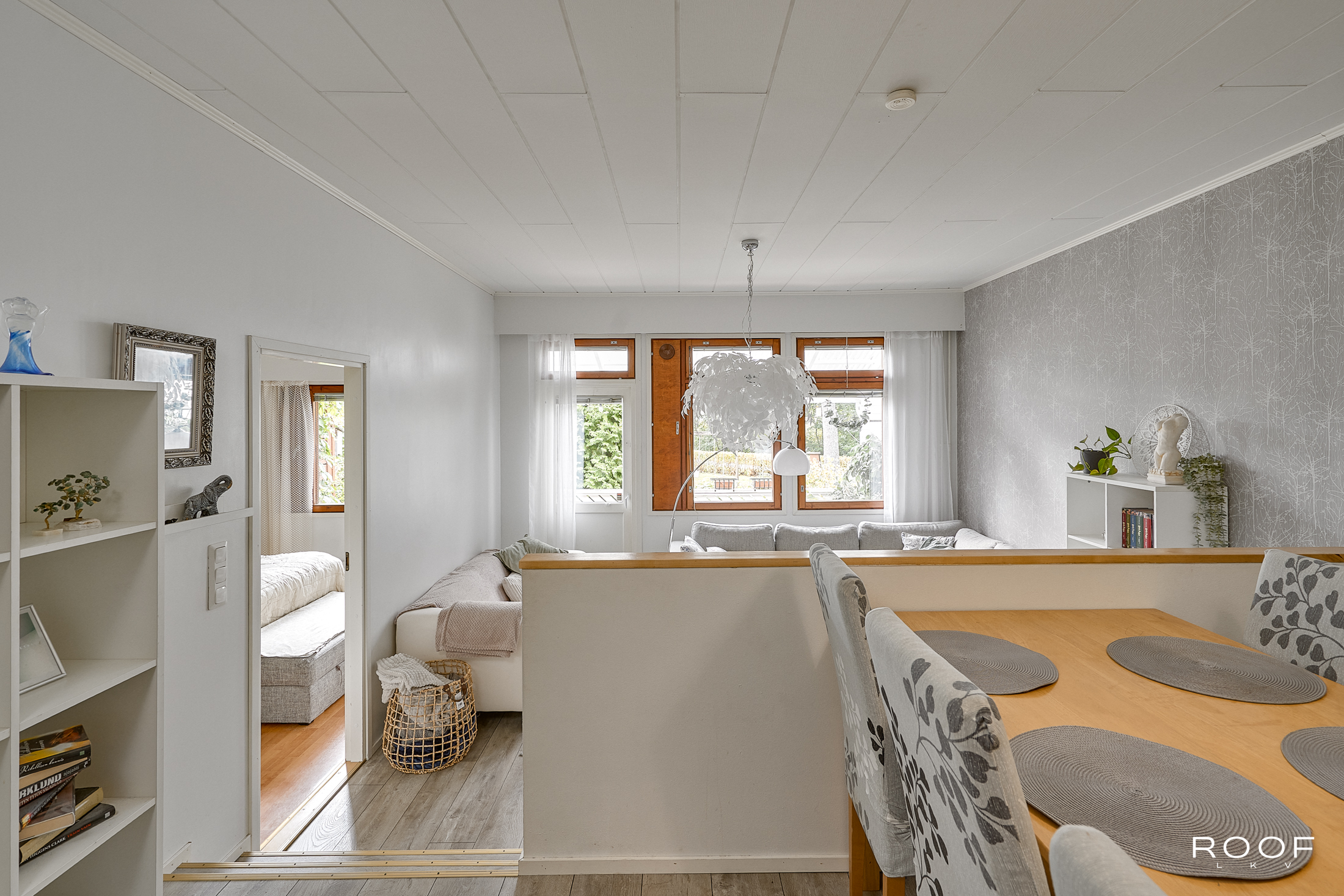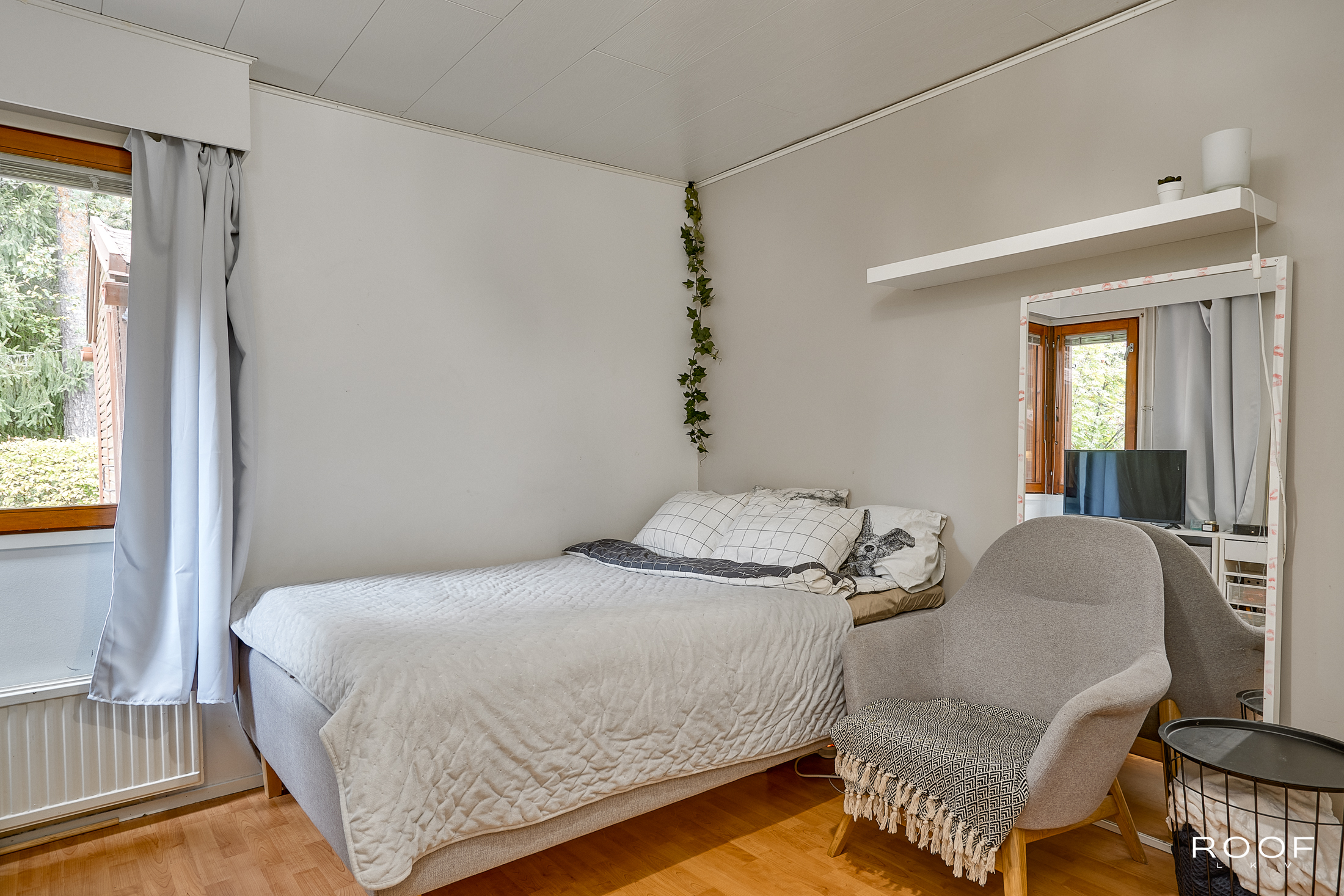 Asunnossa on kaksi makuuhuonetta, joista toisessa on korotettu huonekorkeus. Olohuone on tilava ja valoisa, ja sen korkeus tuo huoneeseen avaruutta. Asunnossa on lisäksi erillinen wc, kylpyhuone (remontoitu 2022) sekä oma sauna.