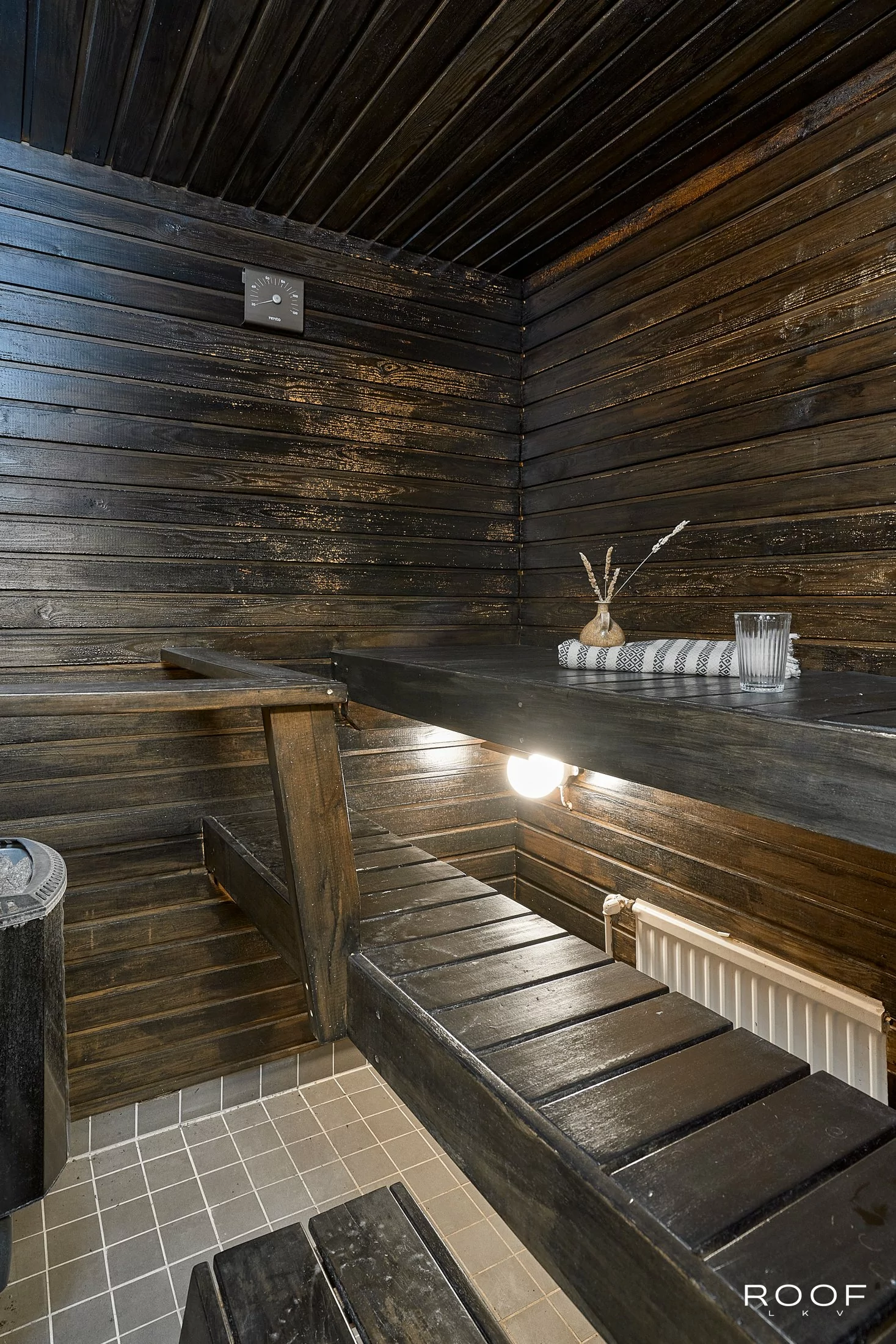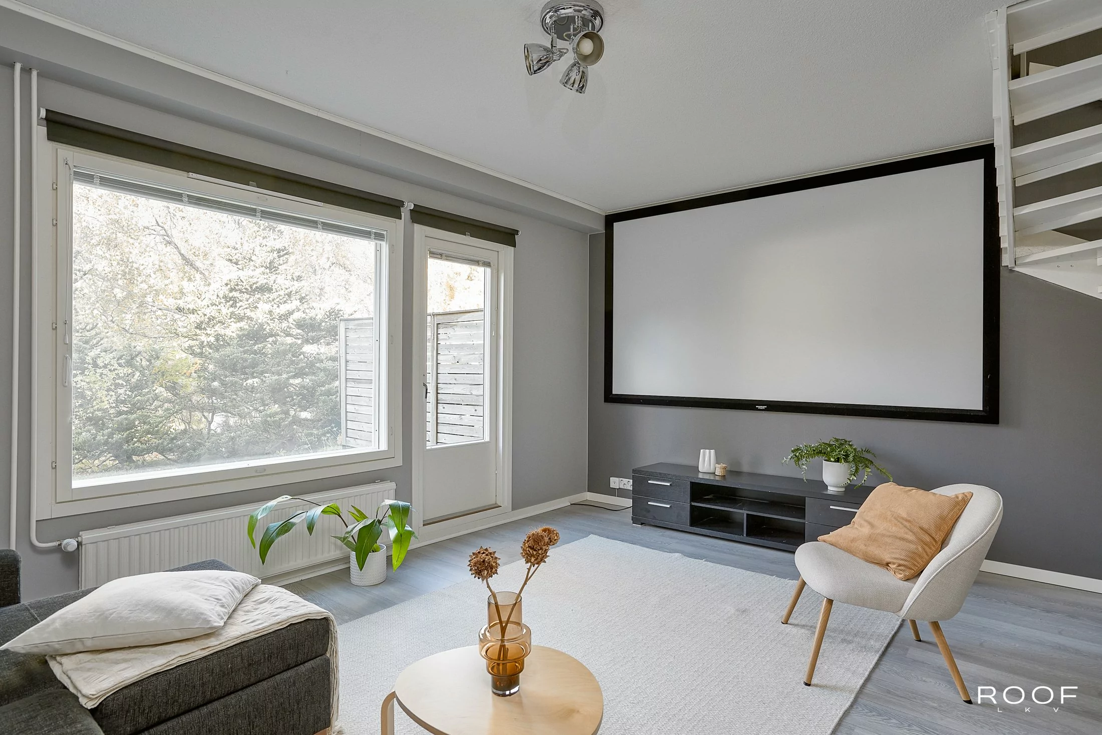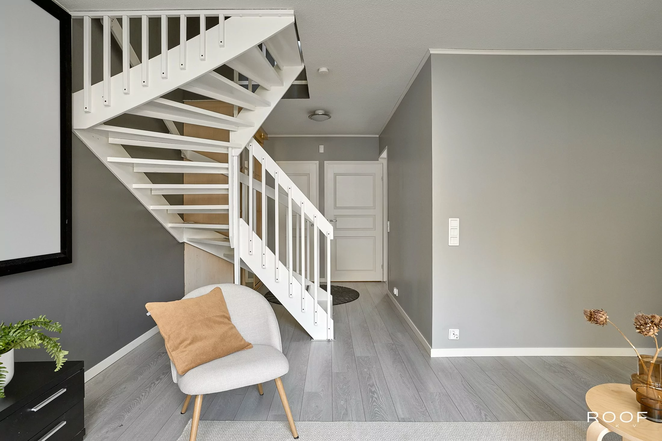 Huoneistossa on iso olohuone, josta on käynti länteen avautuvalle terassille sekä kaksi mukavan kokoista makuuhuonetta, joista toisen yhteydessä on vaatehuone. Tyyliltään nykyaikaisessa kylpyhuoneessa on paikka pesukoneelle ja keittiössä on tila ruokapöydälle. Oma sauna kruunaa kokonaisuuden. Asuintilojen lisäksi huoneiston edessä on tilava varasto. Asuntoon asennettu viilennyspumppu tuo helpotusta kesän helteisiin.
