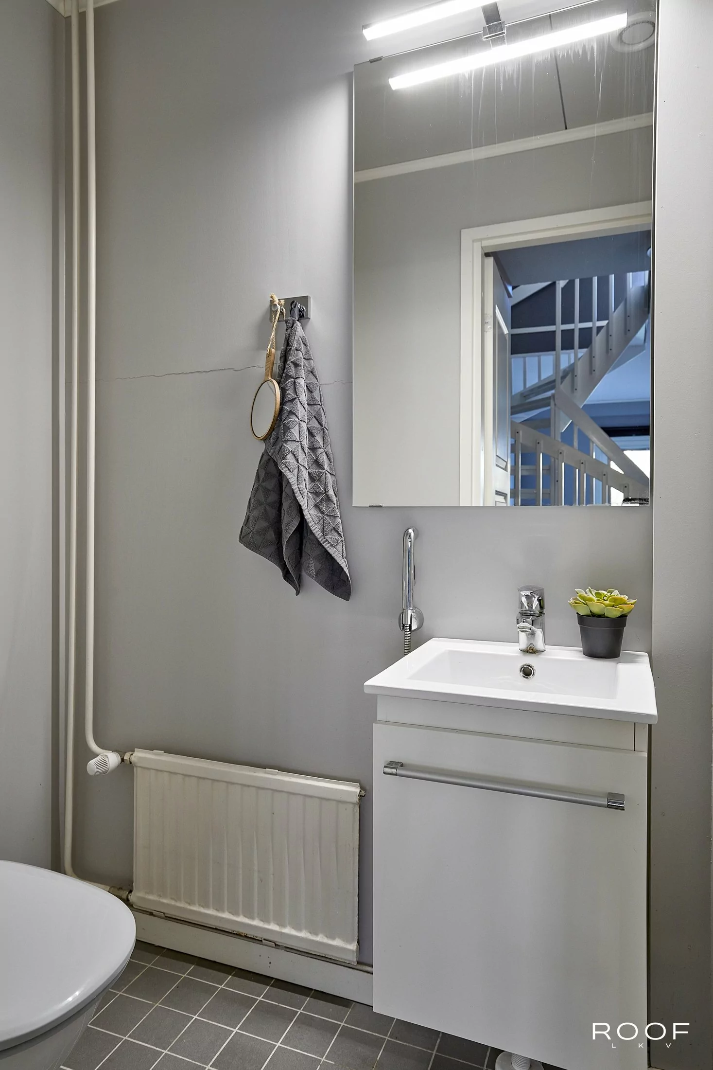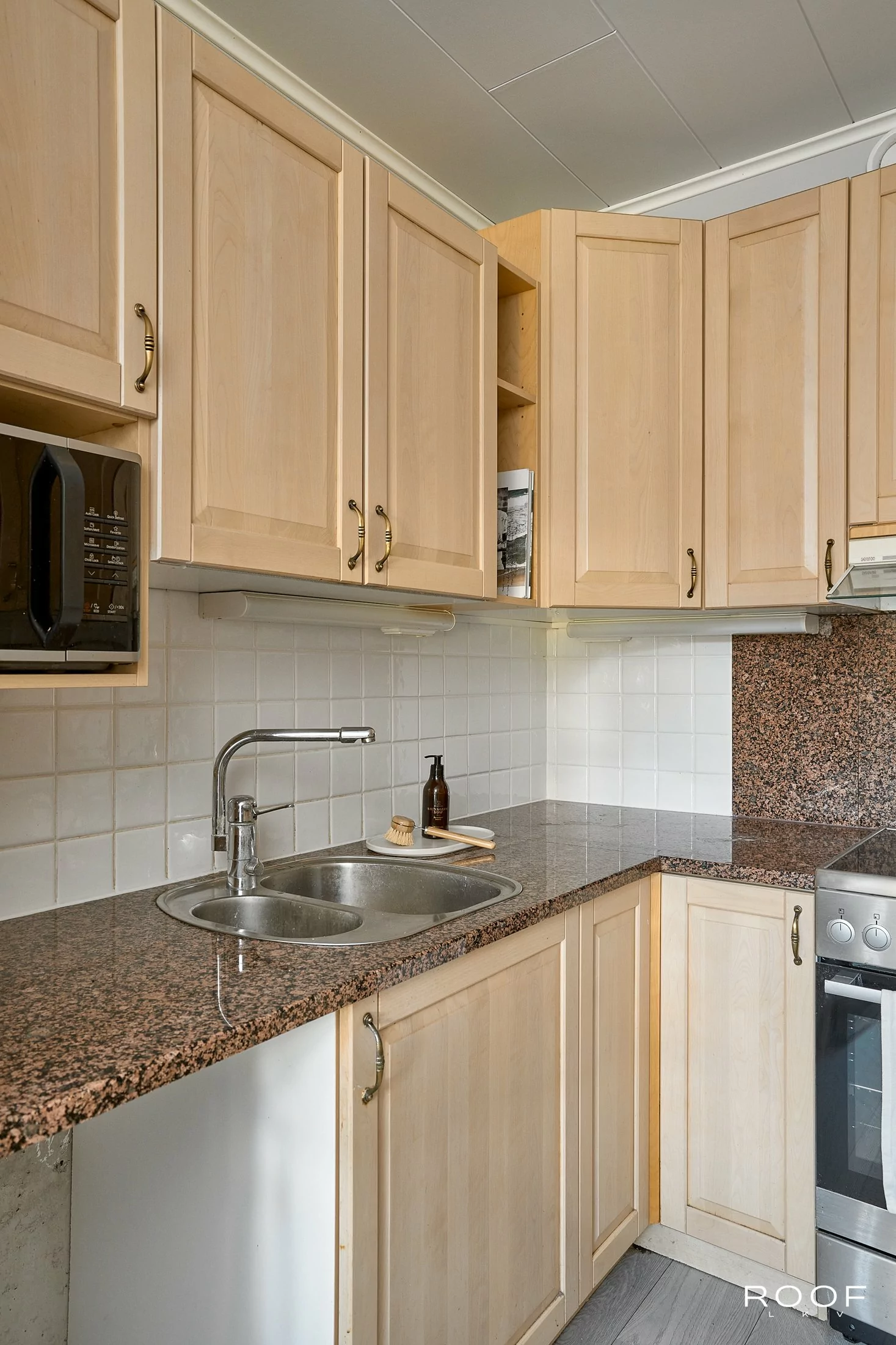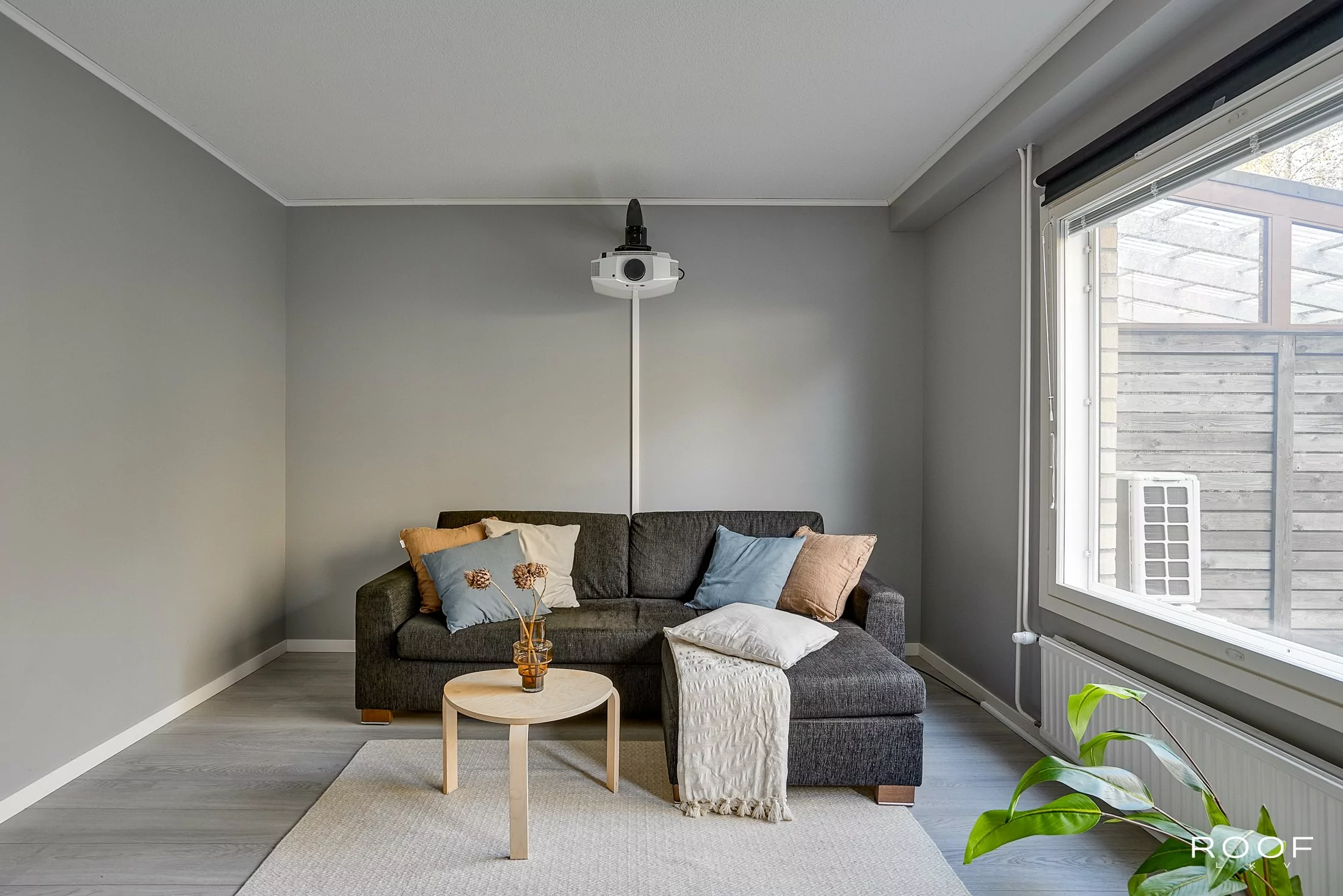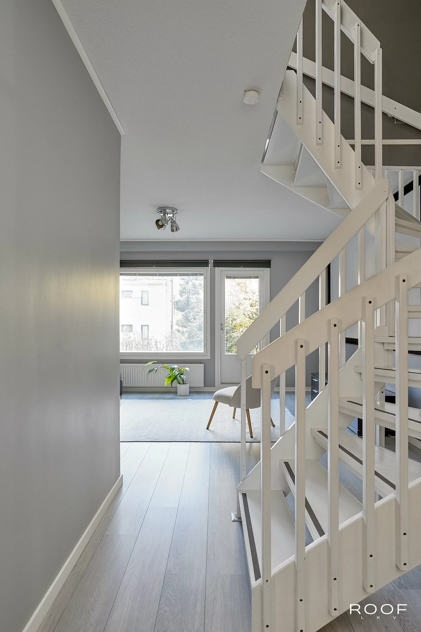 Huoneistossa on iso olohuone, josta on käynti länteen avautuvalle terassille sekä kaksi mukavan kokoista makuuhuonetta, joista toisen yhteydessä on vaatehuone. Tyyliltään nykyaikaisessa kylpyhuoneessa on paikka pesukoneelle ja keittiössä on tila ruokapöydälle. Oma sauna kruunaa kokonaisuuden. Asuintilojen lisäksi huoneiston edessä on tilava varasto. Asuntoon asennettu viilennyspumppu tuo helpotusta kesän helteisiin.