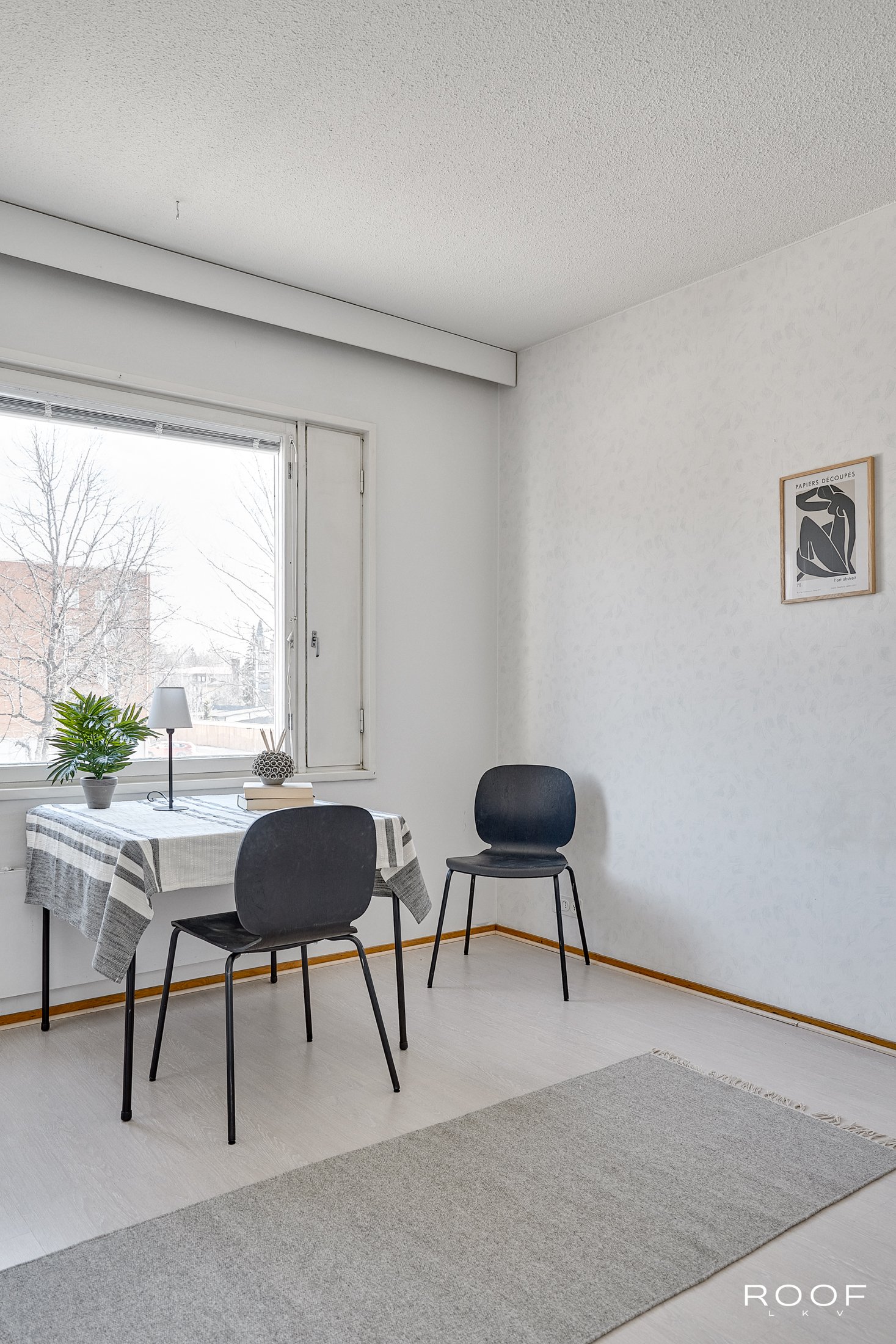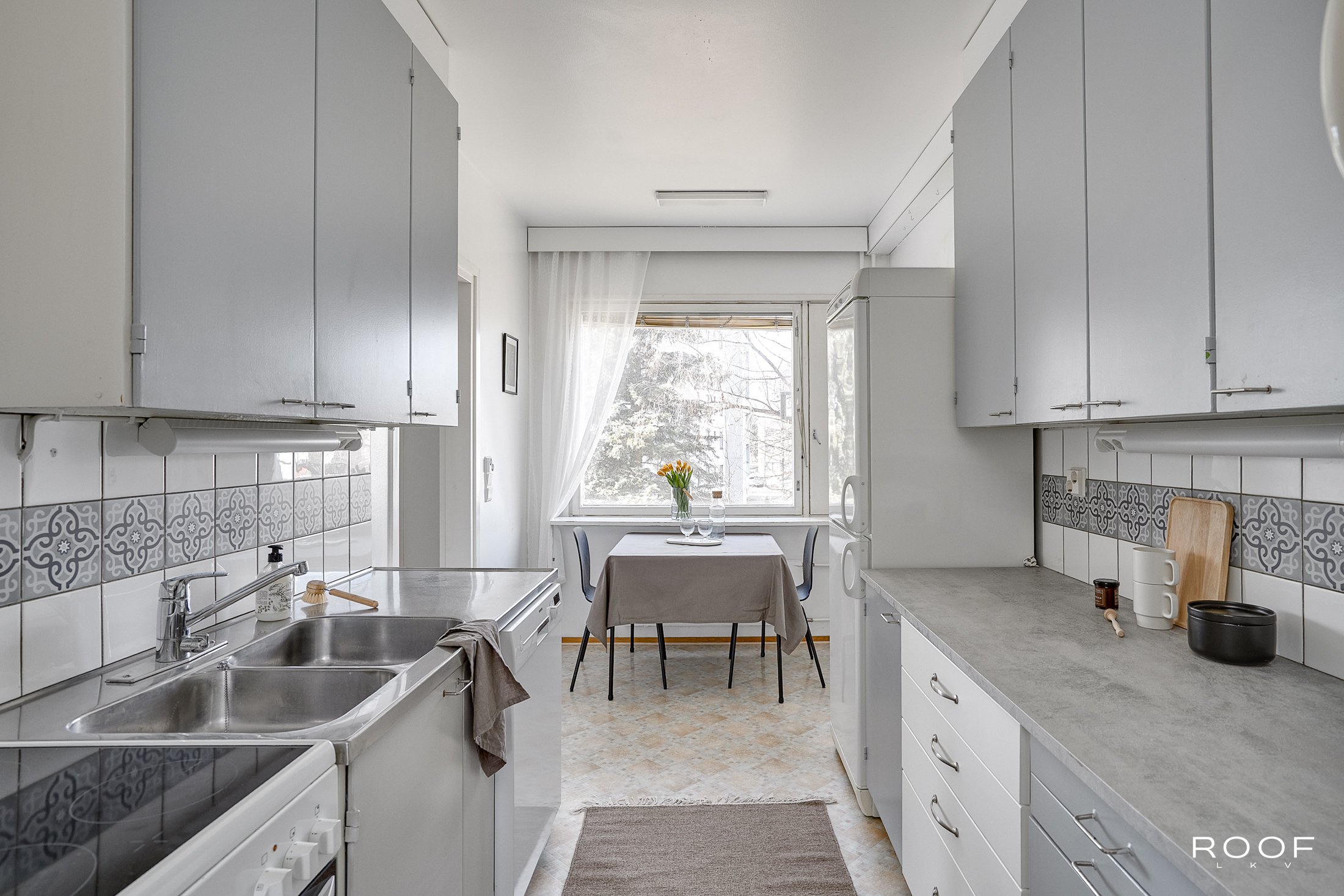 Tämä toisen kerroksen tilava asunto tarjoaa erinomaiset puitteet perheasumiselle tai tilaa kaipaavalle pariskunnalle. Asunnossa on kolme hyvän kokoista makuuhuonetta ja toimiva pohjaratkaisu. Avarasta ja valoisasta olohuoneesta on käynti lasitetulle parvekkeelle ja keittiön yhteydessä on ruokailutila. Keittiö on lähes alkuperäiskunnossa, mikä antaa sinulle loistavan tilaisuuden remontoida ja suunnitella siitä juuri sellaisen kuin haluat.