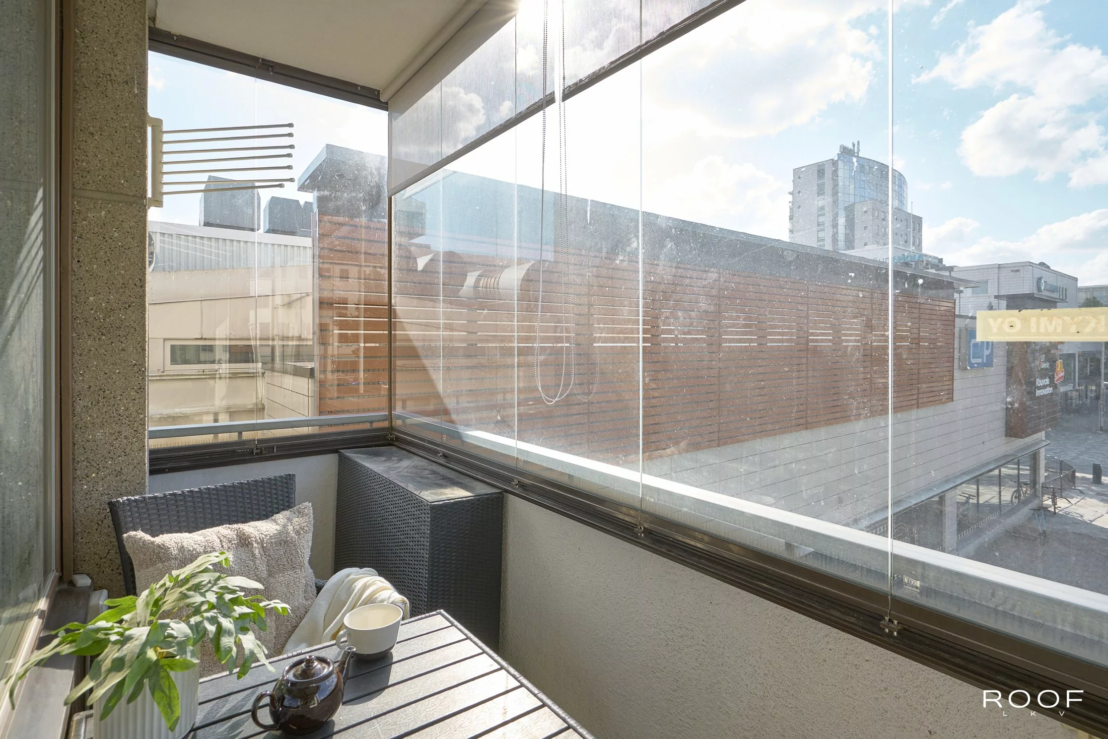 Olohuoneesta on käynti lasitetulle parvekkeelle, jossa voit nauttia kaupunkinäkymistä vuoden ympäri. Taloyhtiössä on tehty merkittäviä perusparannuksia, kuten LVIS-saneeraus ja ikkunoiden uusiminen. Hissi tuo lisämukavuutta päivittäiseen asumiseen.