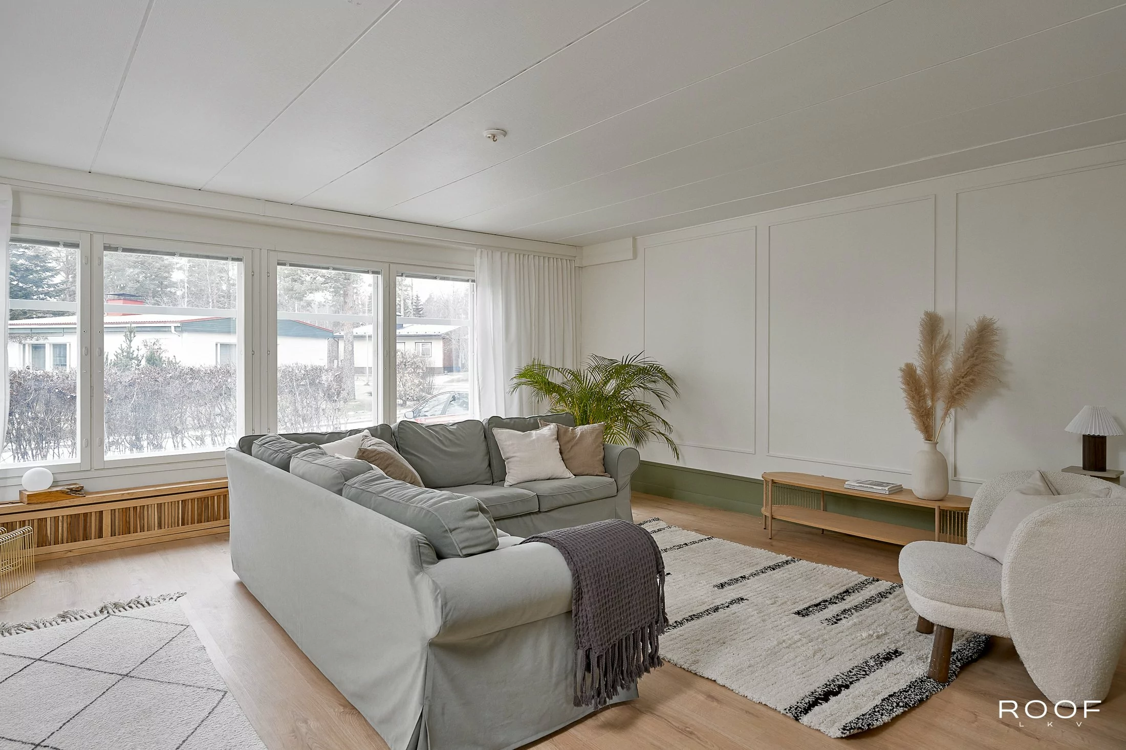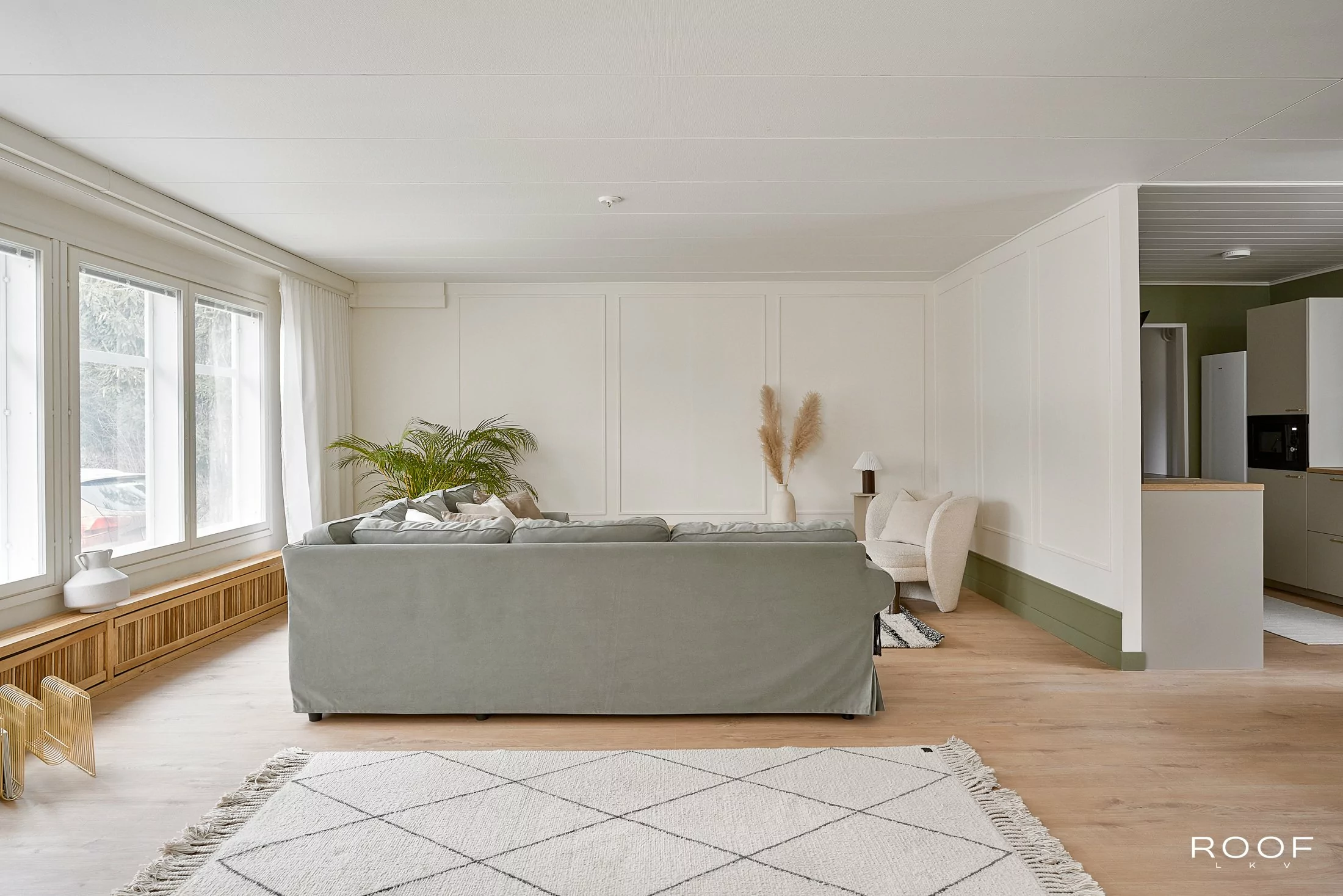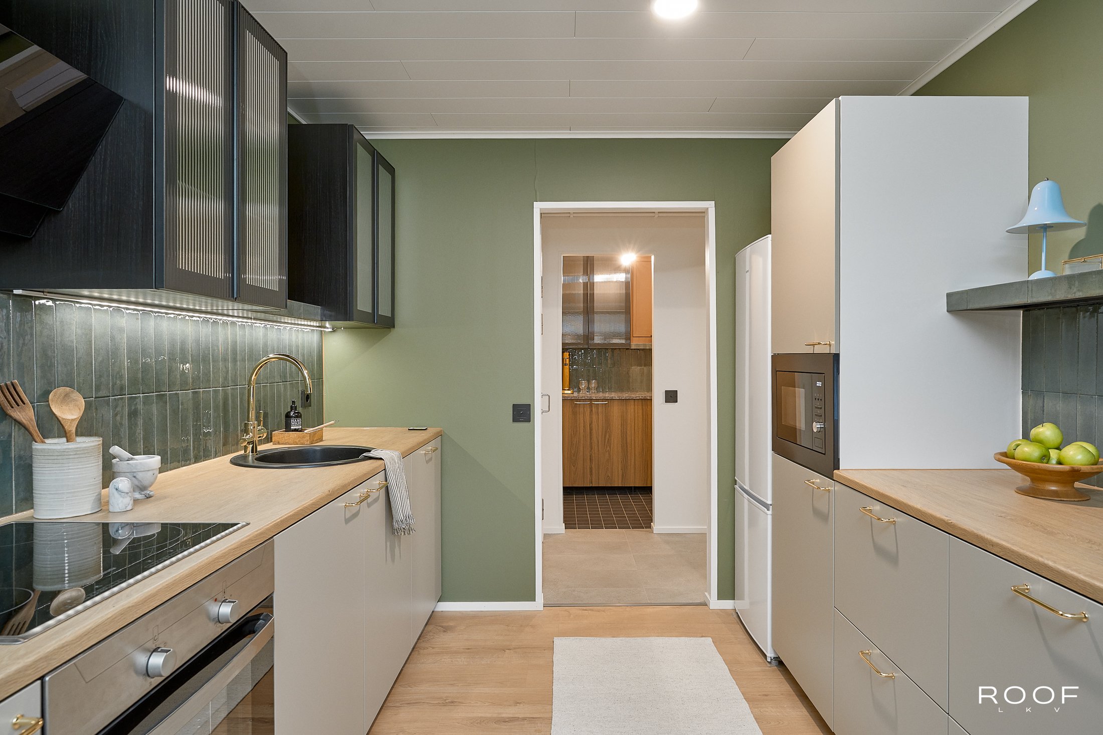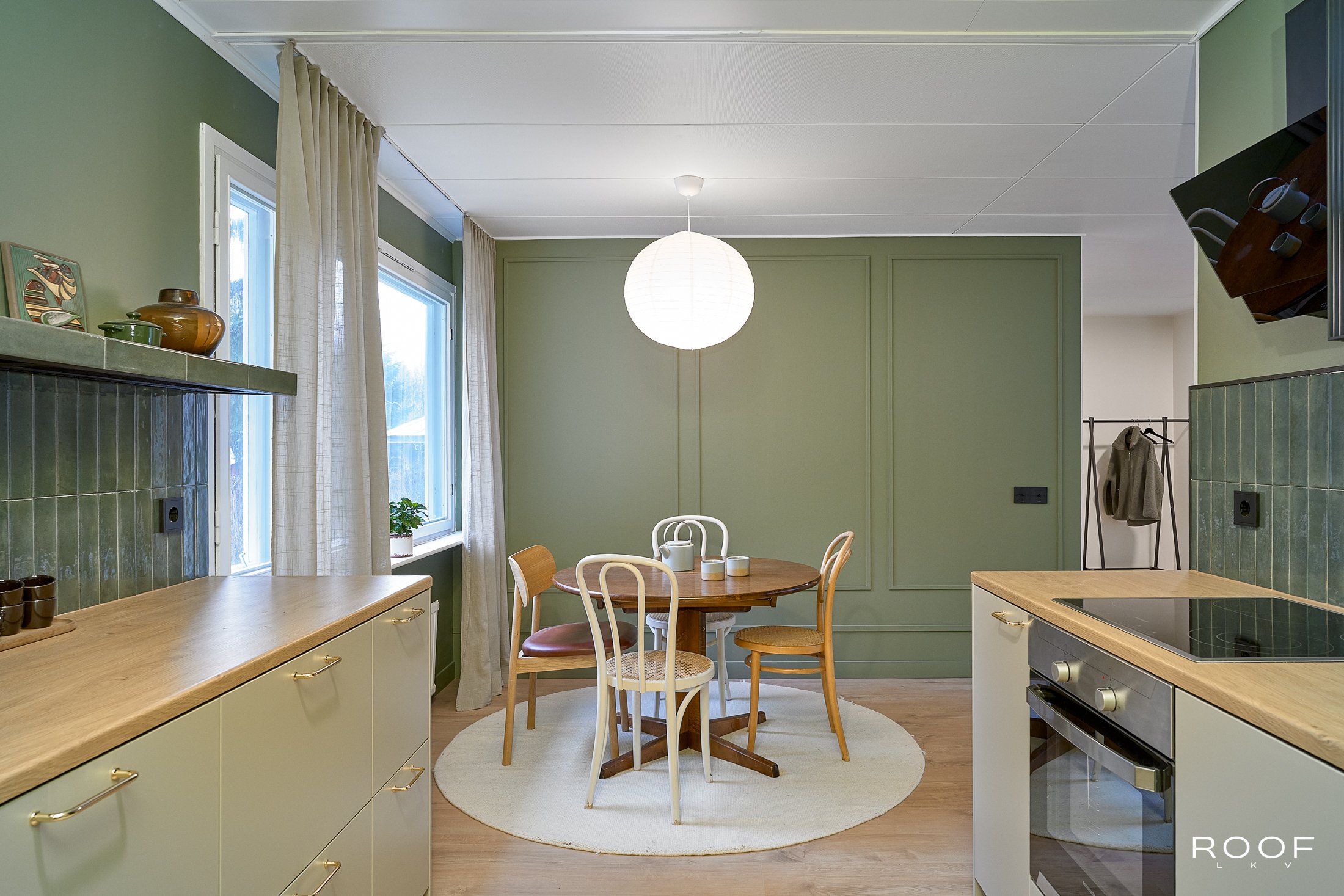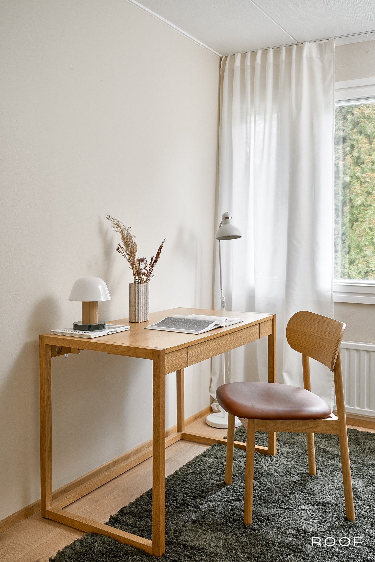 Ammattilaisen suunnittelema pintaremontti näkyy materiaalien yksityiskohdissa ja tilojen yhtenäisessä tyylissä. Talossa on kolme makuuhuonetta, joista päämakuuhuone on todella hyvän kokoinen. Isossa olohuoneessa on mukavasti tilaa kalusteille ja perheen yhteisille hetkille. Tyylikkään keittiön yhteydessä on erillinen ruokailutila sekä käytännöllinen ruokakomero, "pantry". Valoisassa kylpyhuoneessa on myös talon toinen wc. Asuintilojen lisäksi löytyy lämmin autotalli sekä lämmin varasto / tekninen tila.