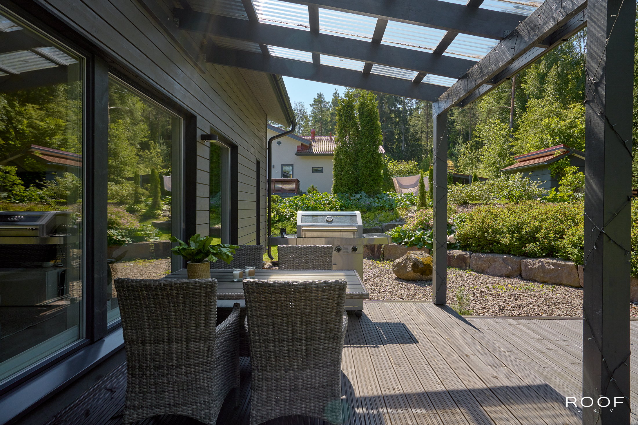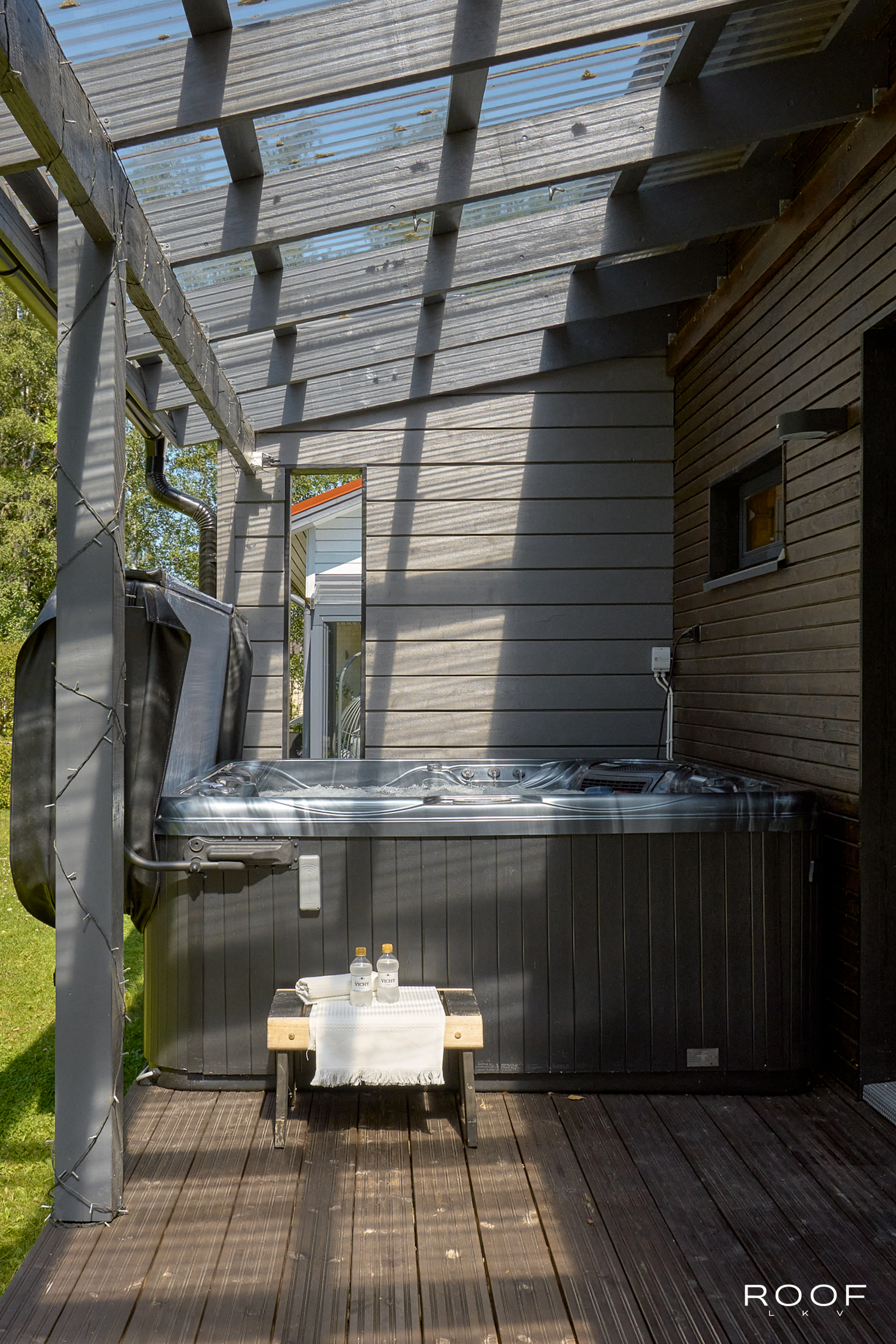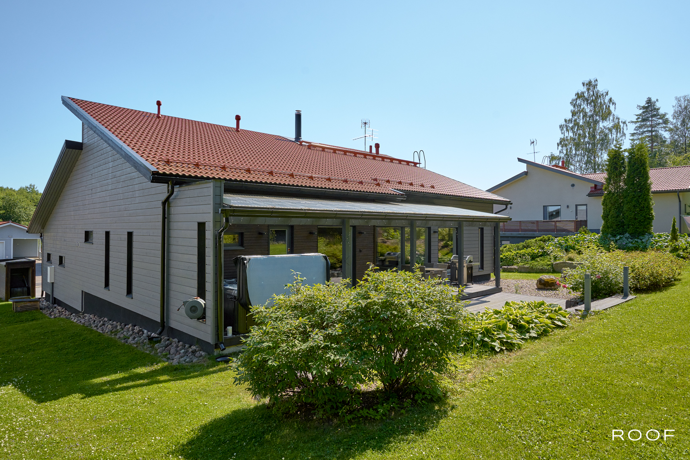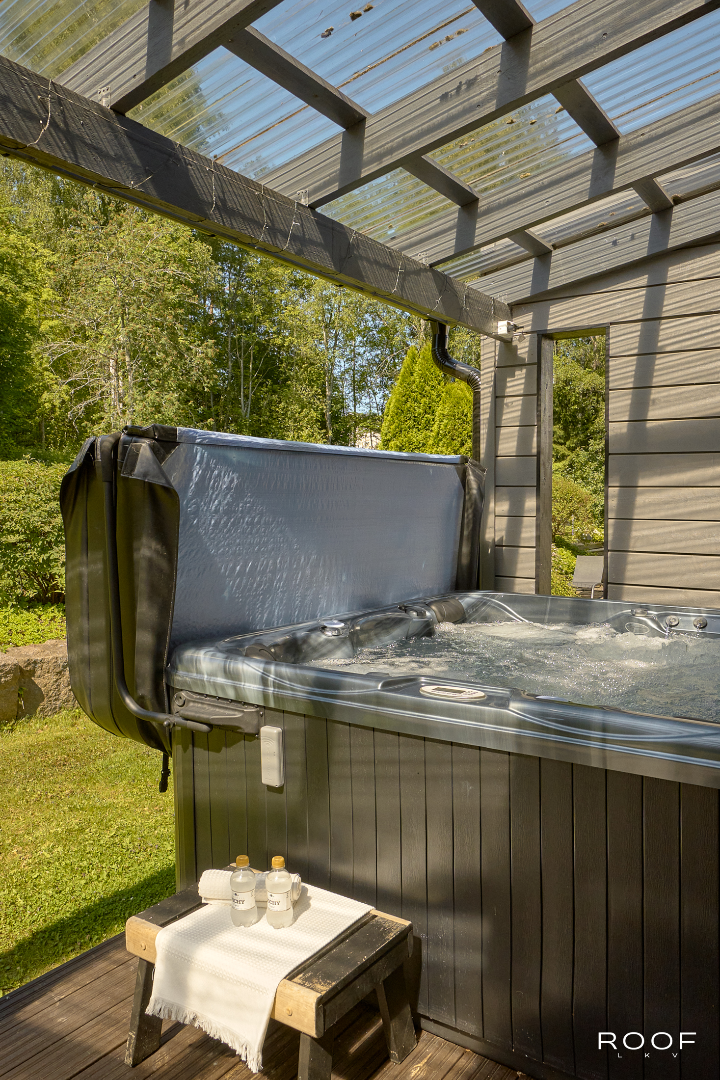 Viihtyisällä terassilla sijaitseva ulkoporeallas tarjoaa mahdollisuuden rentoutua omassa rauhassa. Sähköauton latauspiste ja valokuituyhteys tekevät arjesta sujuvaa ja nykyaikaista.