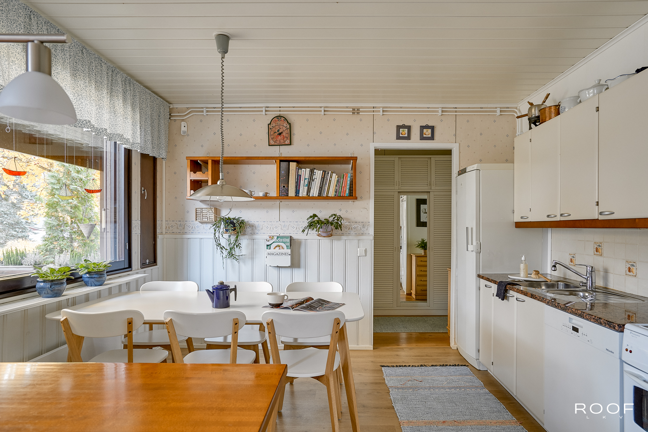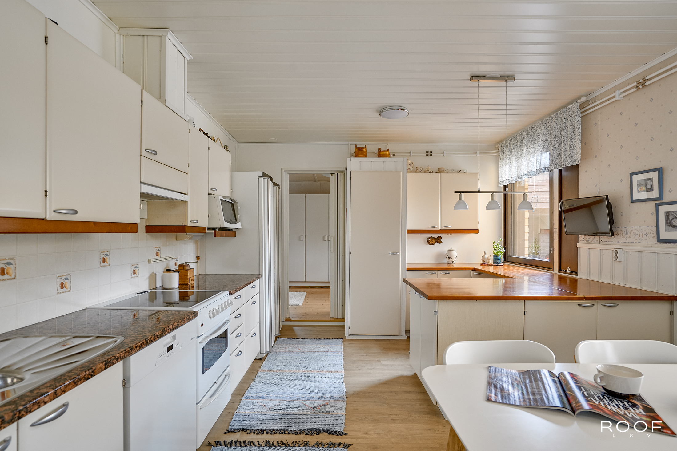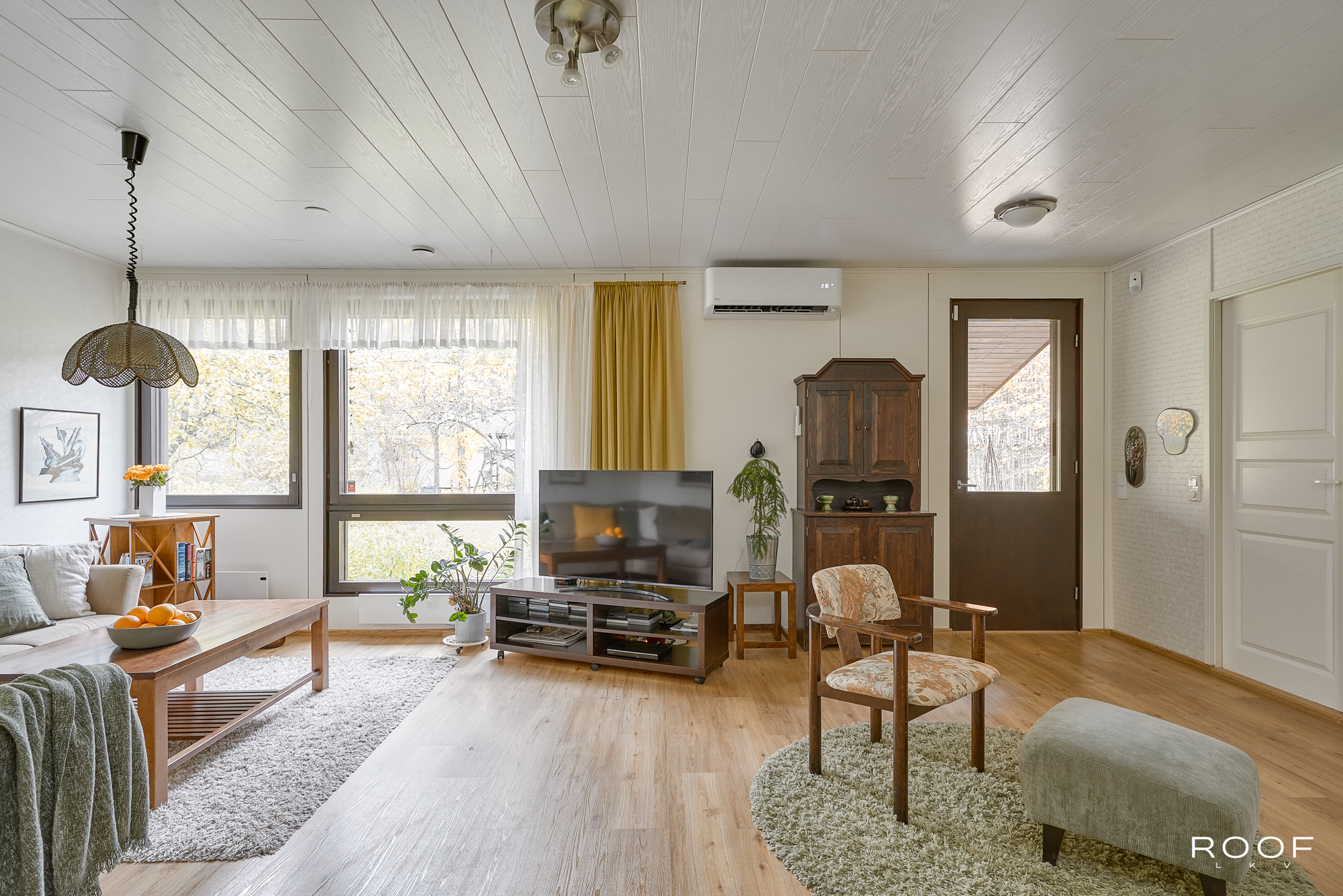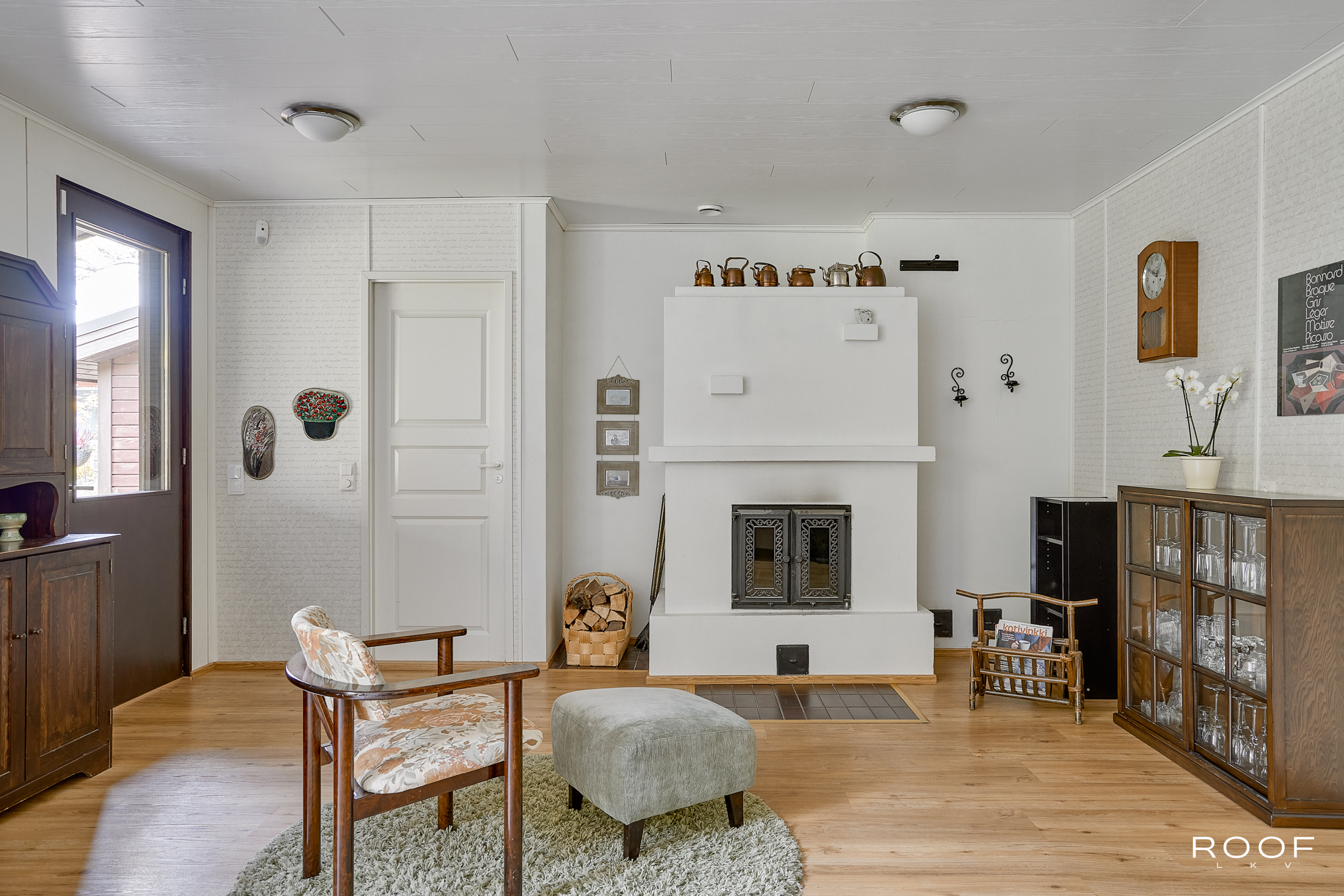 Tämä lämminhenkinen koti tarjoaa neljä makuuhuonetta, joista suurin sijaitsee omassa rauhassaan. Keittiö on suunniteltu arjen sujuvuutta ajatellen: tilaa riittää niin ruokapöydälle kuin säilytykselle, ja kokonaisuus on toimiva ja viihtyisä. Olohuone hurmaa avaruudellaan ja valoisuudellaan. Kaunis takka tuo lämpöä ja tunnelmaa, ja tilasta on suora yhteys terassille sekä vehreälle takapihalle.
