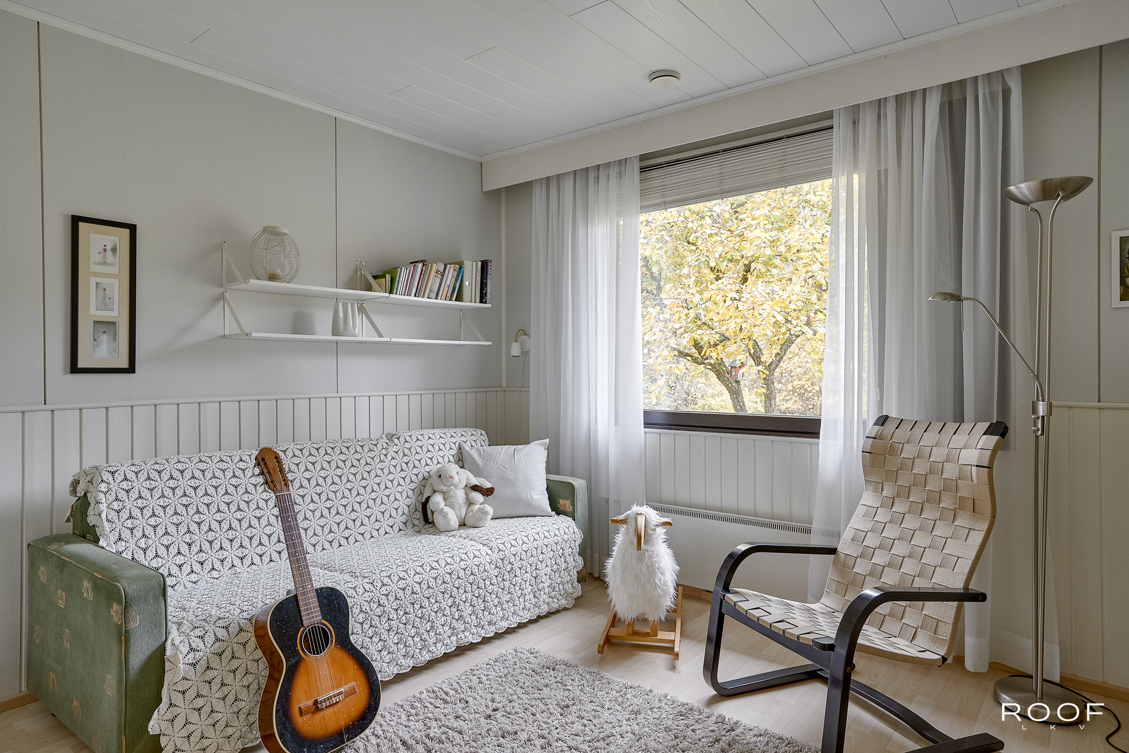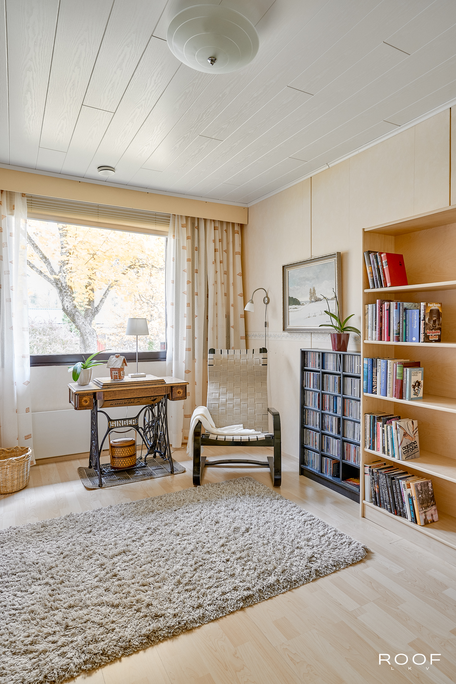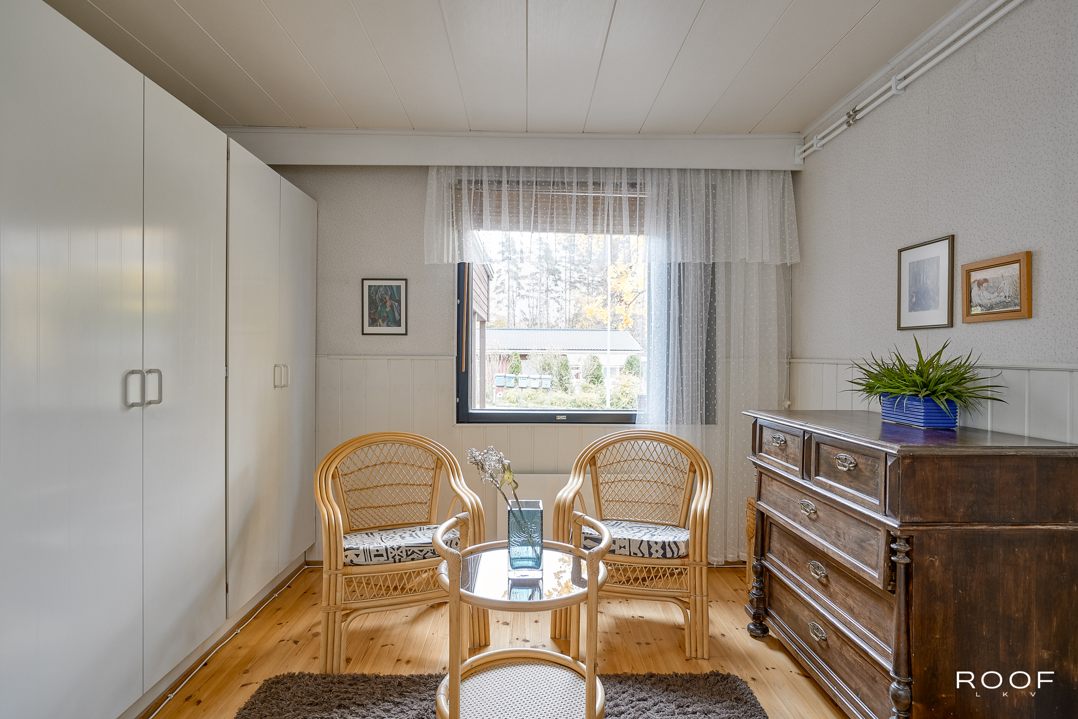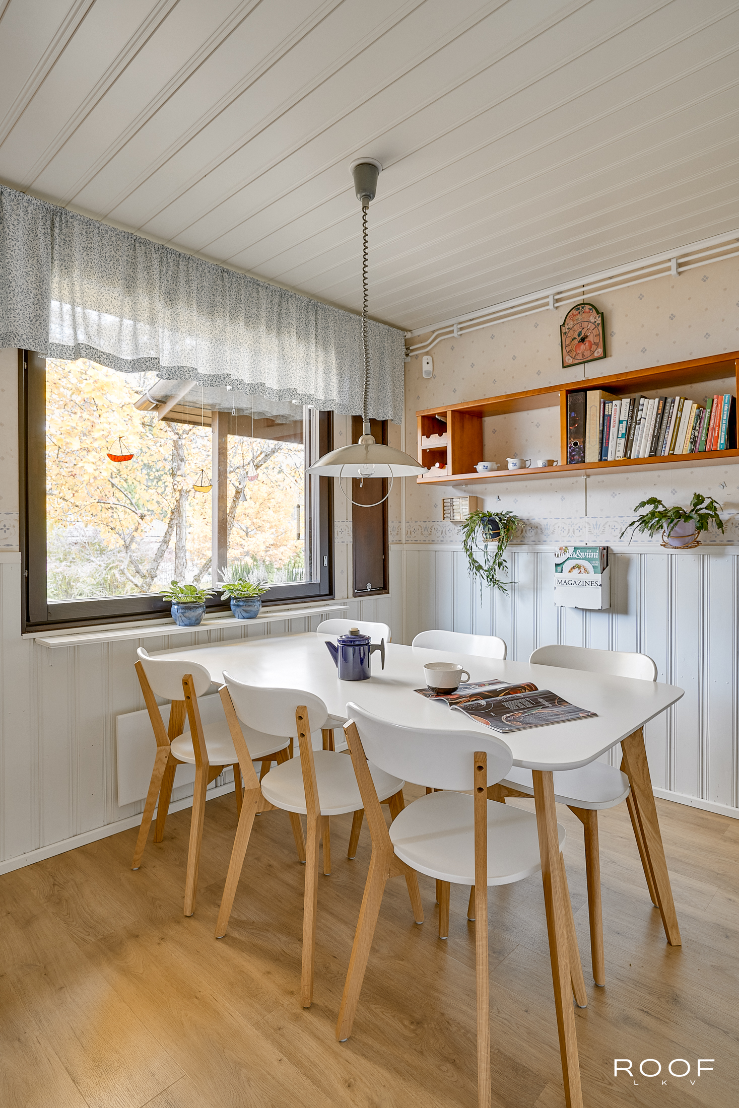 Tämä lämminhenkinen koti tarjoaa neljä makuuhuonetta, joista suurin sijaitsee omassa rauhassaan. Keittiö on suunniteltu arjen sujuvuutta ajatellen: tilaa riittää niin ruokapöydälle kuin säilytykselle, ja kokonaisuus on toimiva ja viihtyisä. Olohuone hurmaa avaruudellaan ja valoisuudellaan. Kaunis takka tuo lämpöä ja tunnelmaa, ja tilasta on suora yhteys terassille sekä vehreälle takapihalle.