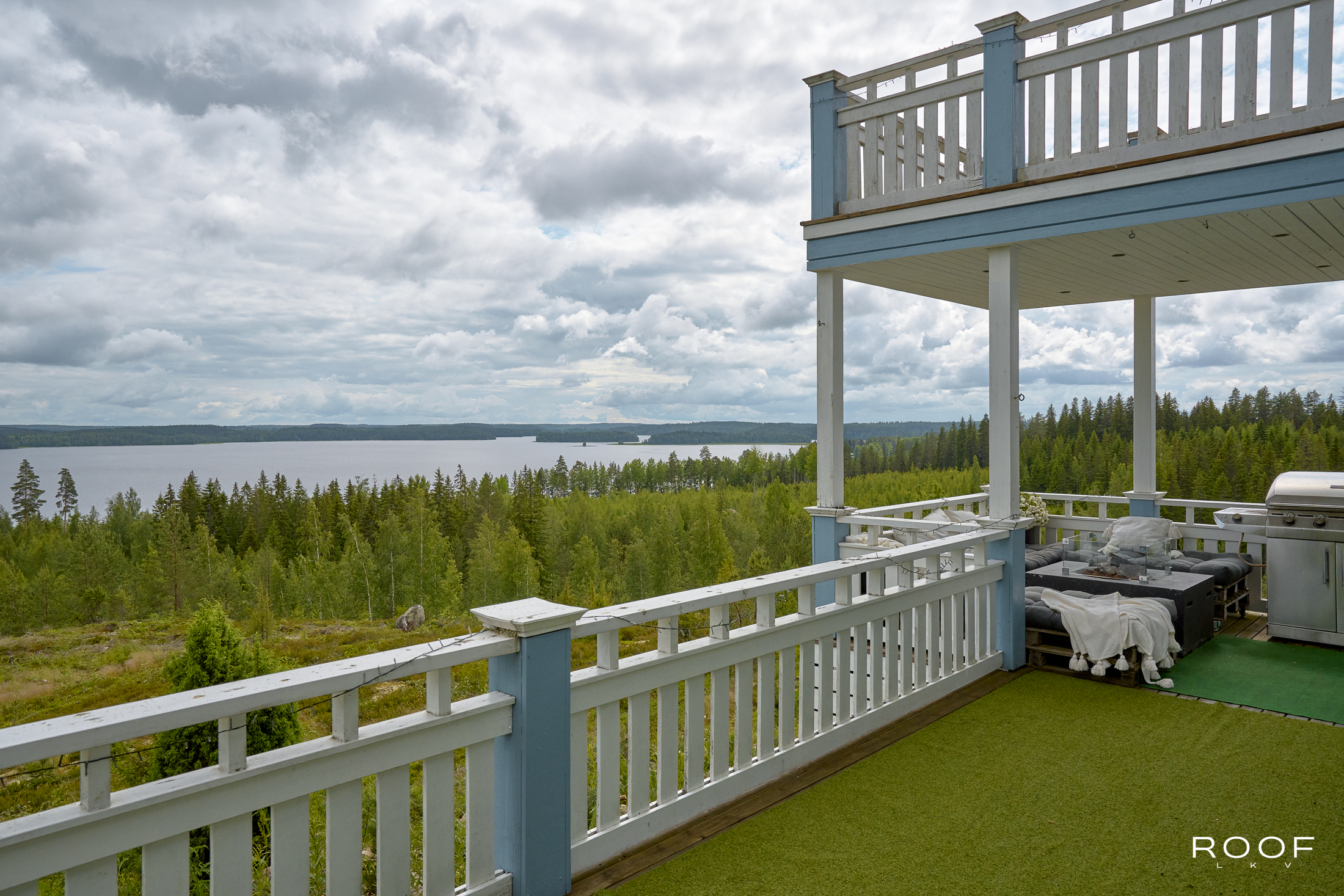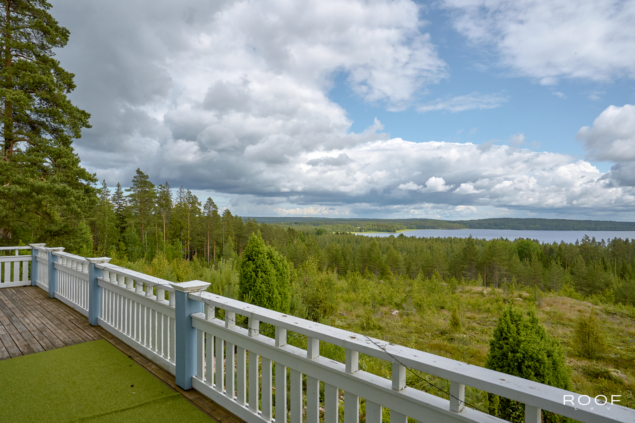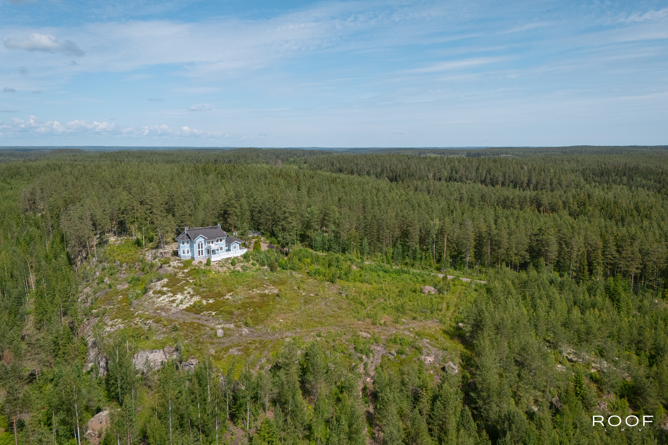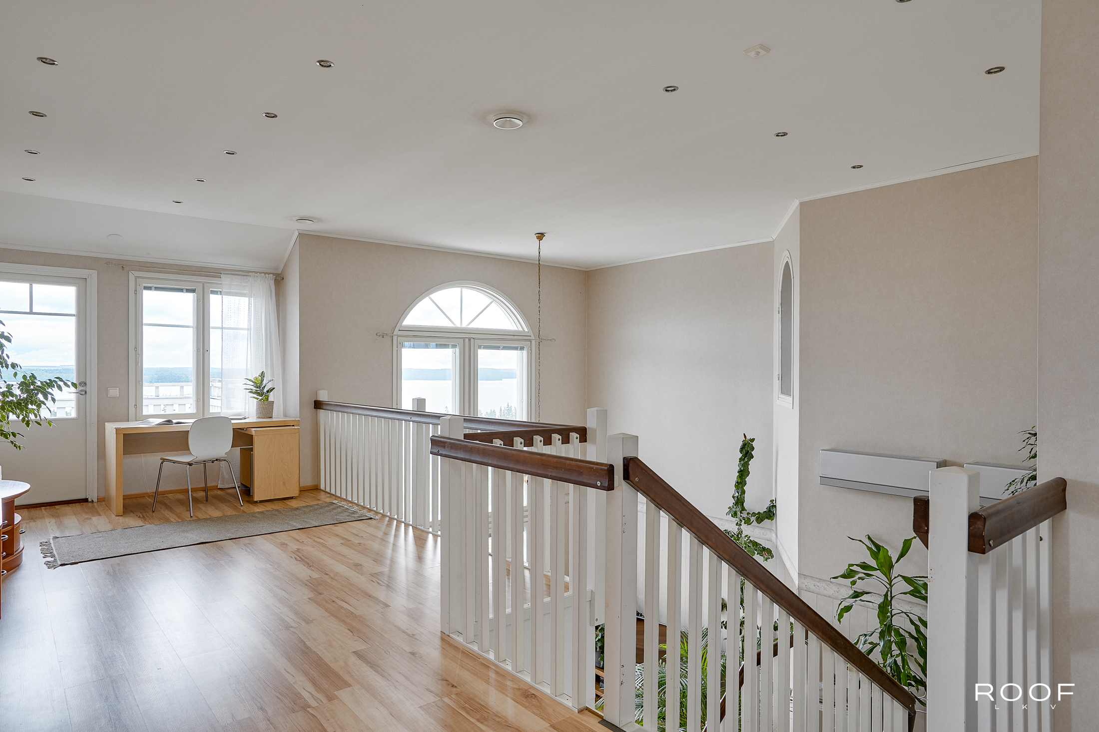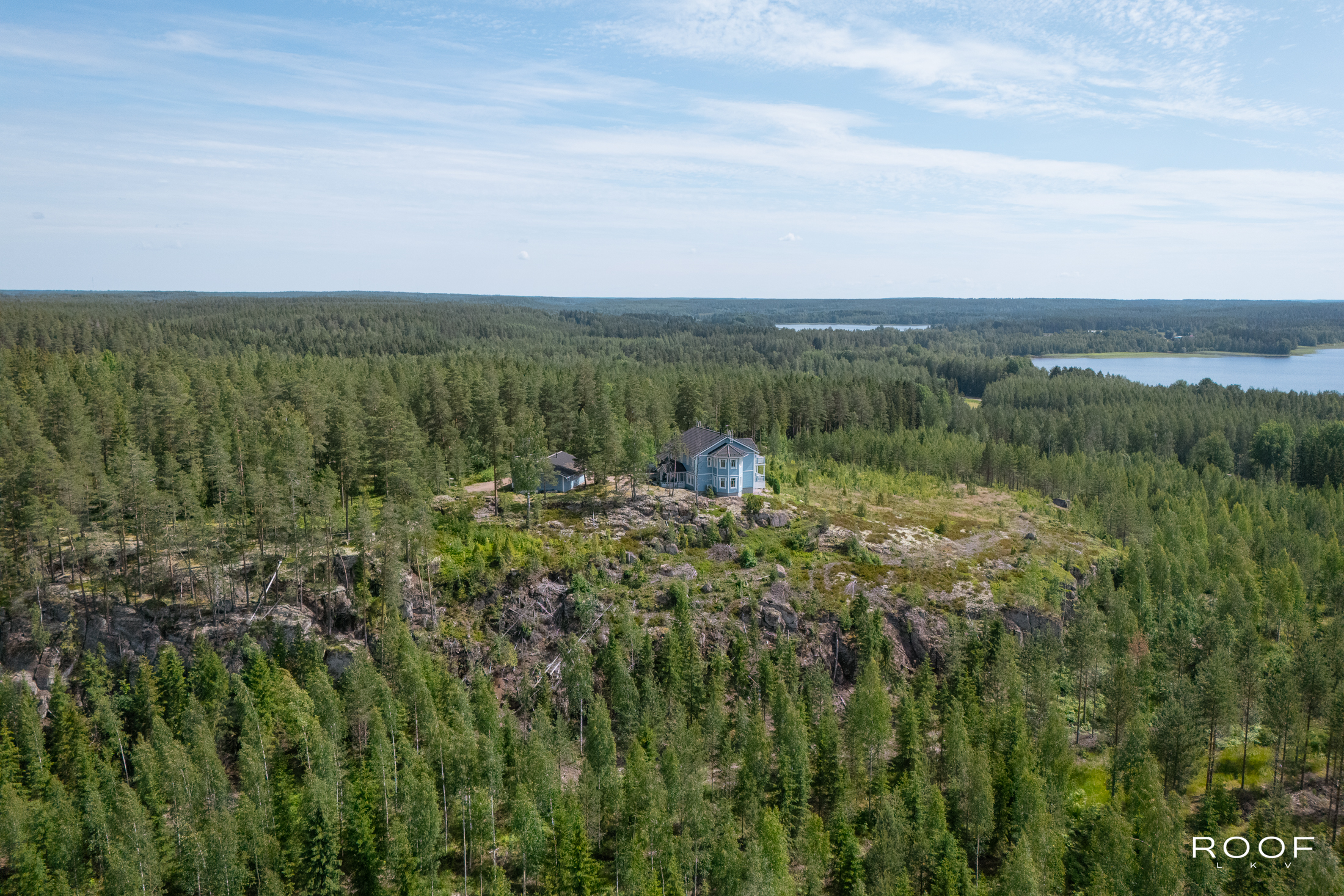 Ainutlaatuinen kokonaisuus korkealla, 50 metriä korkean kallion laella Herrala Talojen arkkitehdin suunnittelema linnamainen omakotitalo, josta avautuvat henkeäsalpaavat näkymät yli Valkealan järvien.