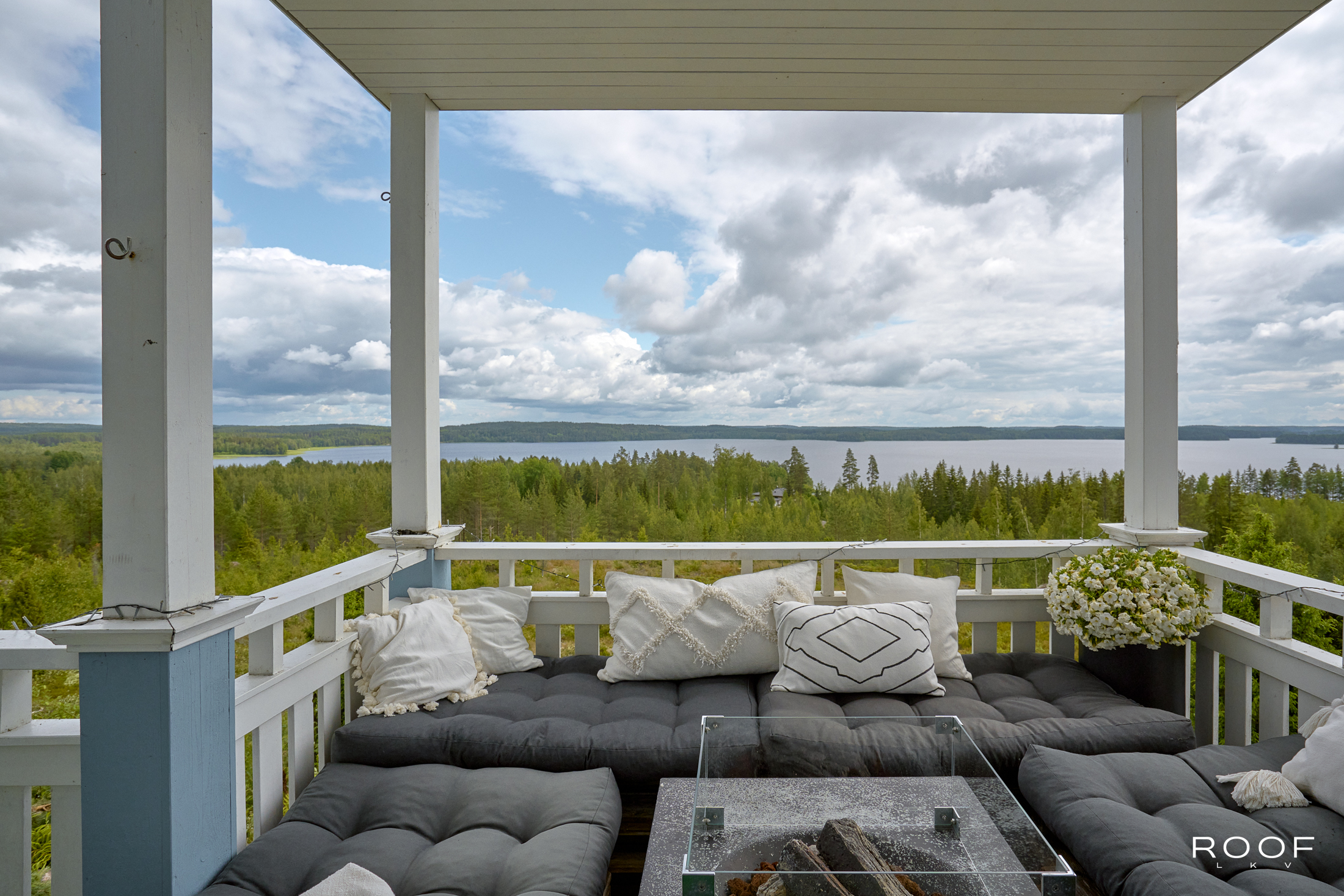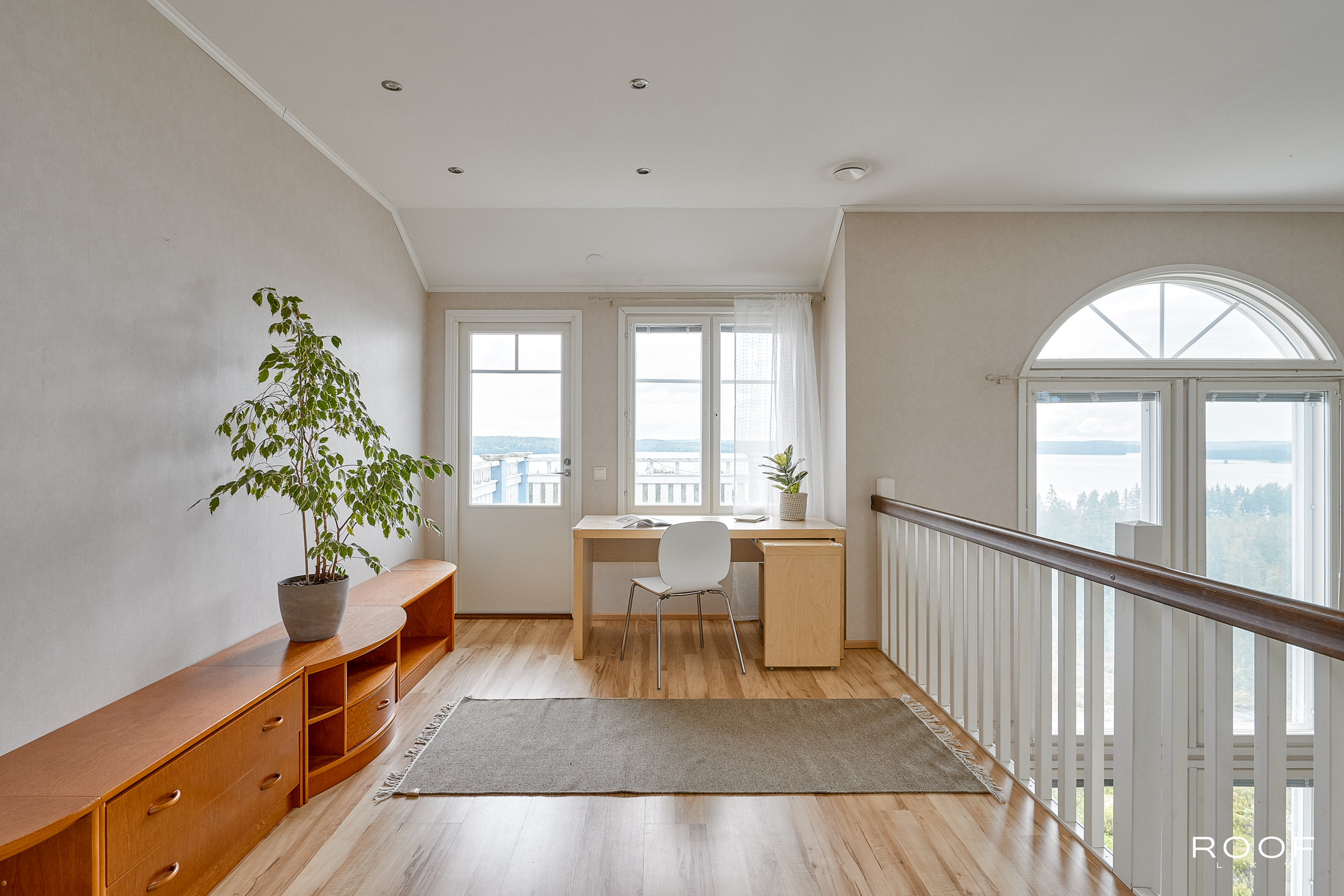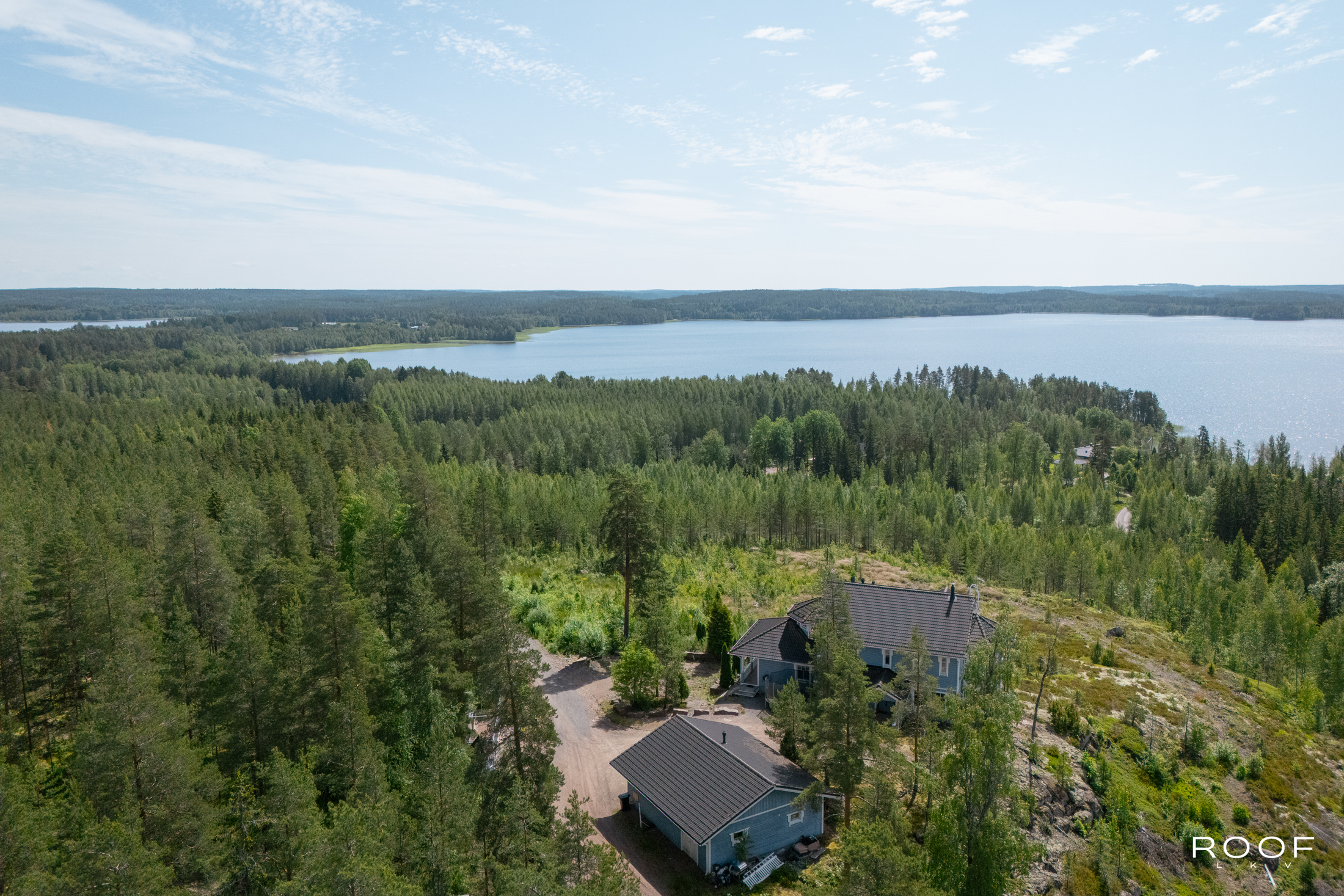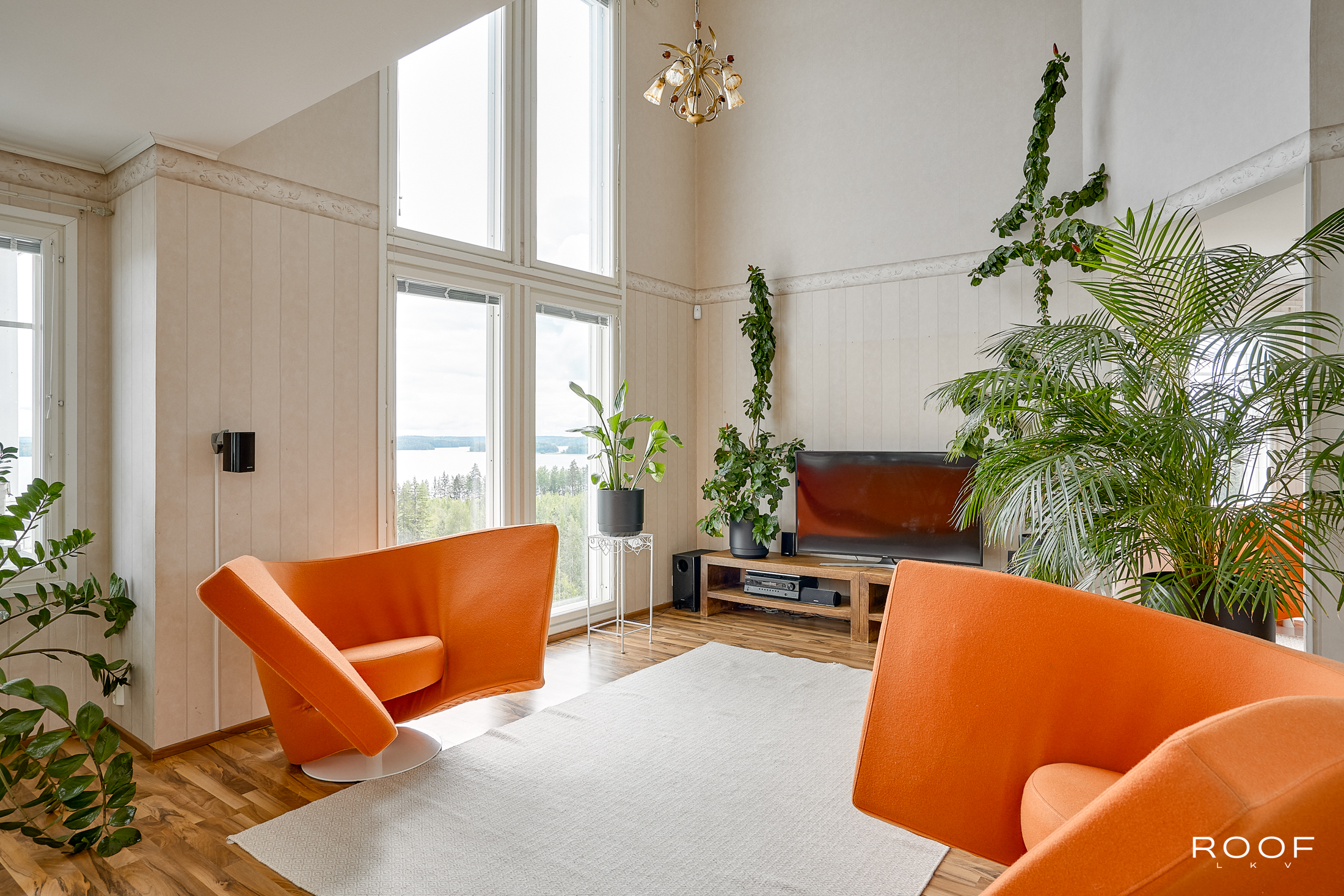 Ainutlaatuinen kokonaisuus korkealla, 50 metriä korkean kallion laella Herrala Talojen arkkitehdin suunnittelema linnamainen omakotitalo, josta avautuvat henkeäsalpaavat näkymät yli Valkealan järvien.