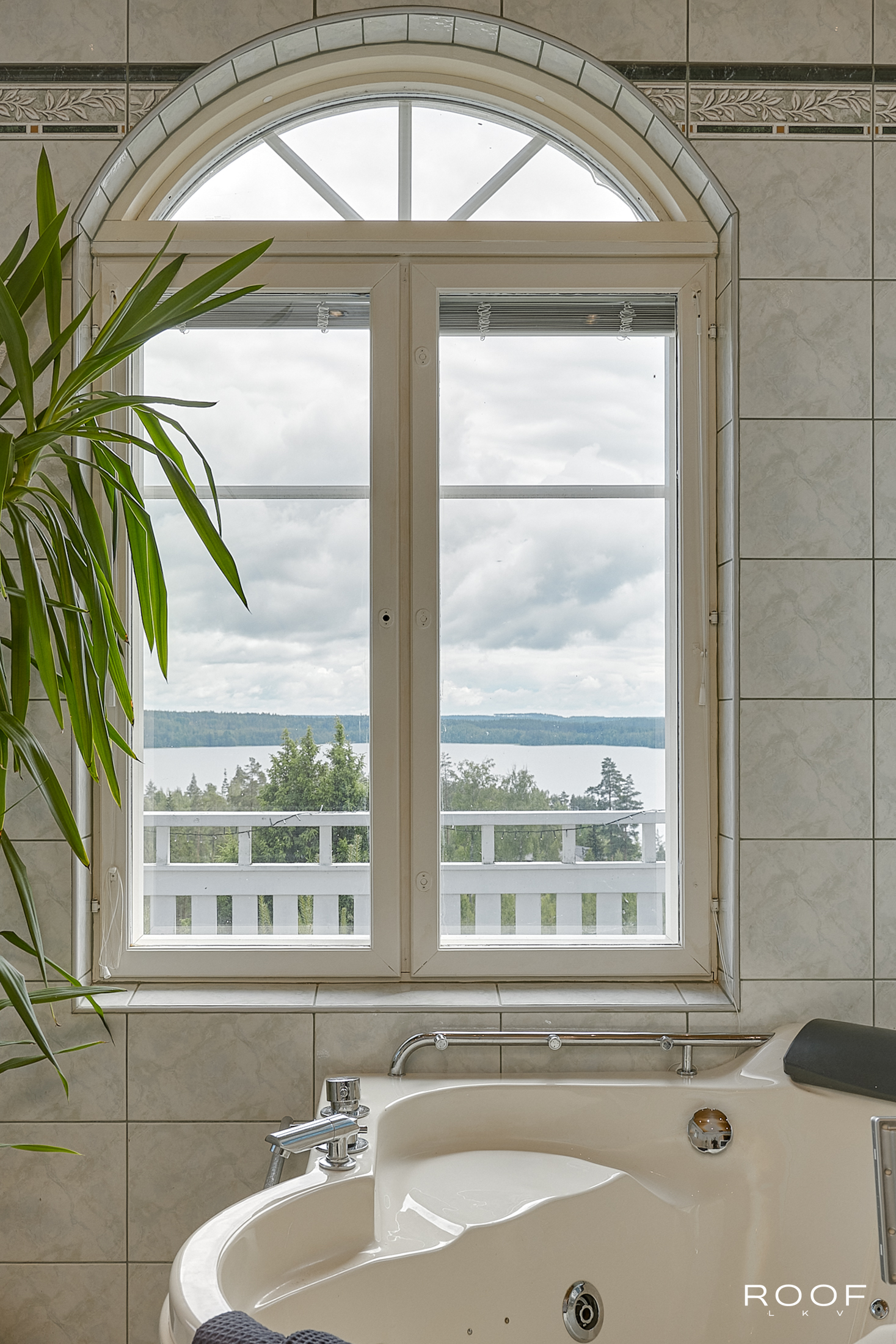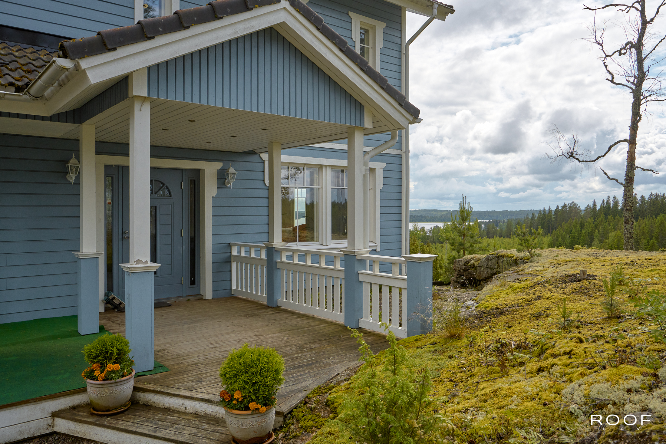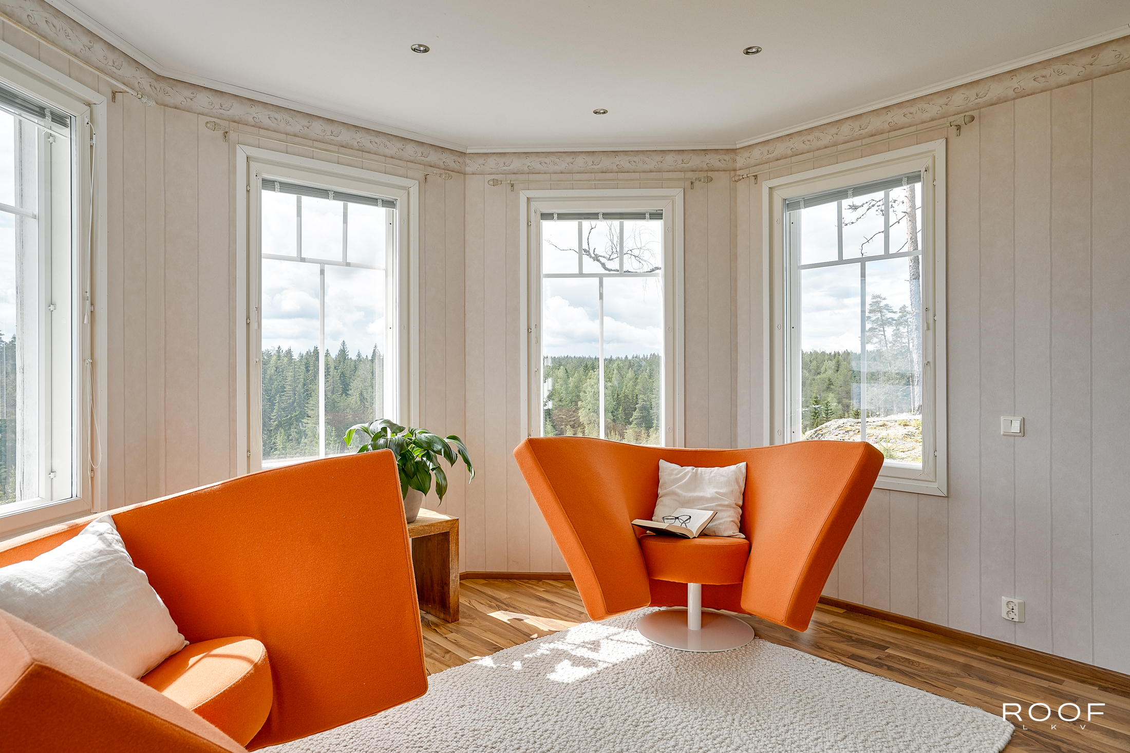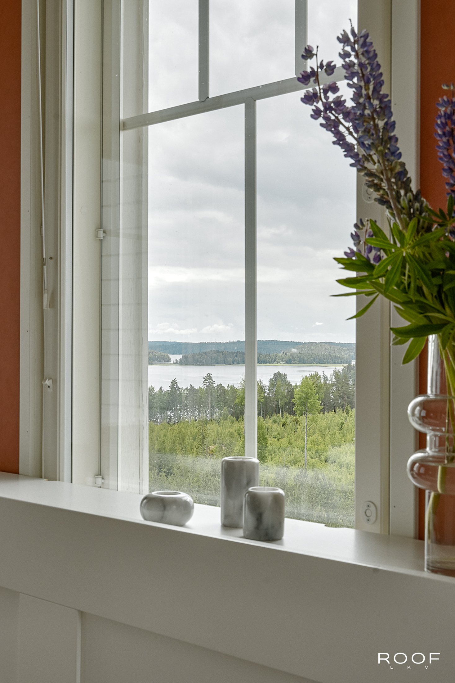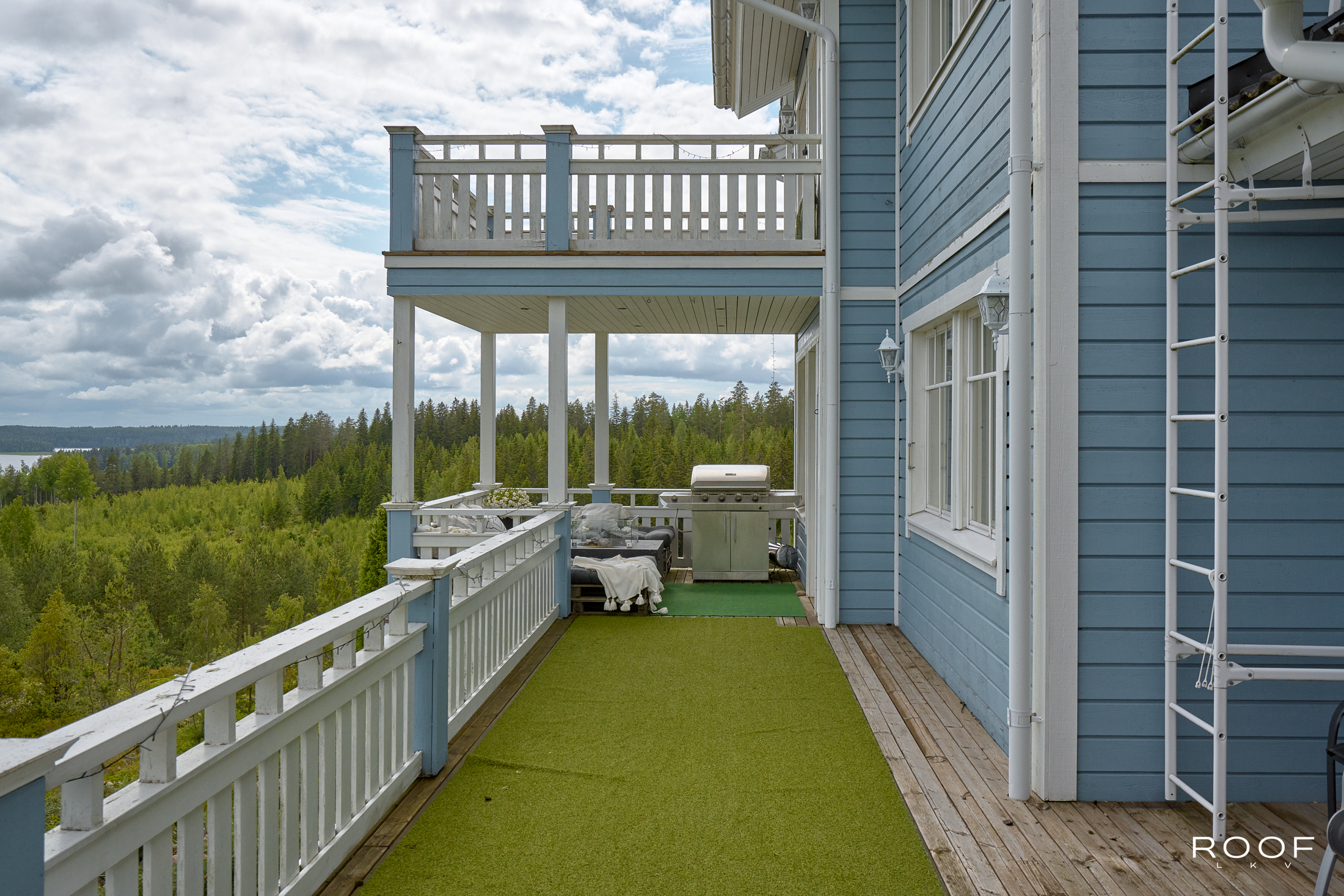 Ainutlaatuinen kokonaisuus korkealla, 50 metriä korkean kallion laella Herrala Talojen arkkitehdin suunnittelema linnamainen omakotitalo, josta avautuvat henkeäsalpaavat näkymät yli Valkealan järvien.