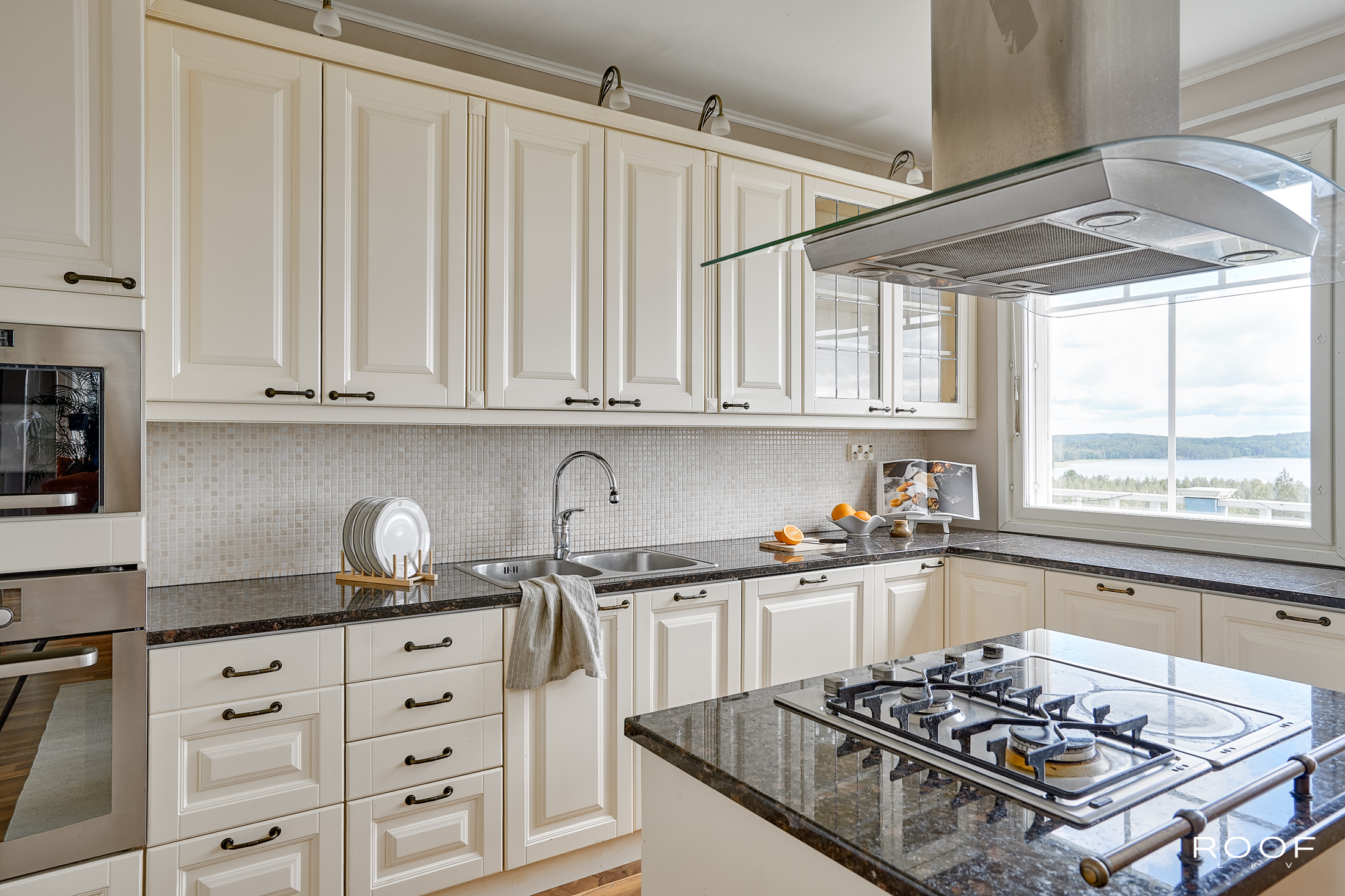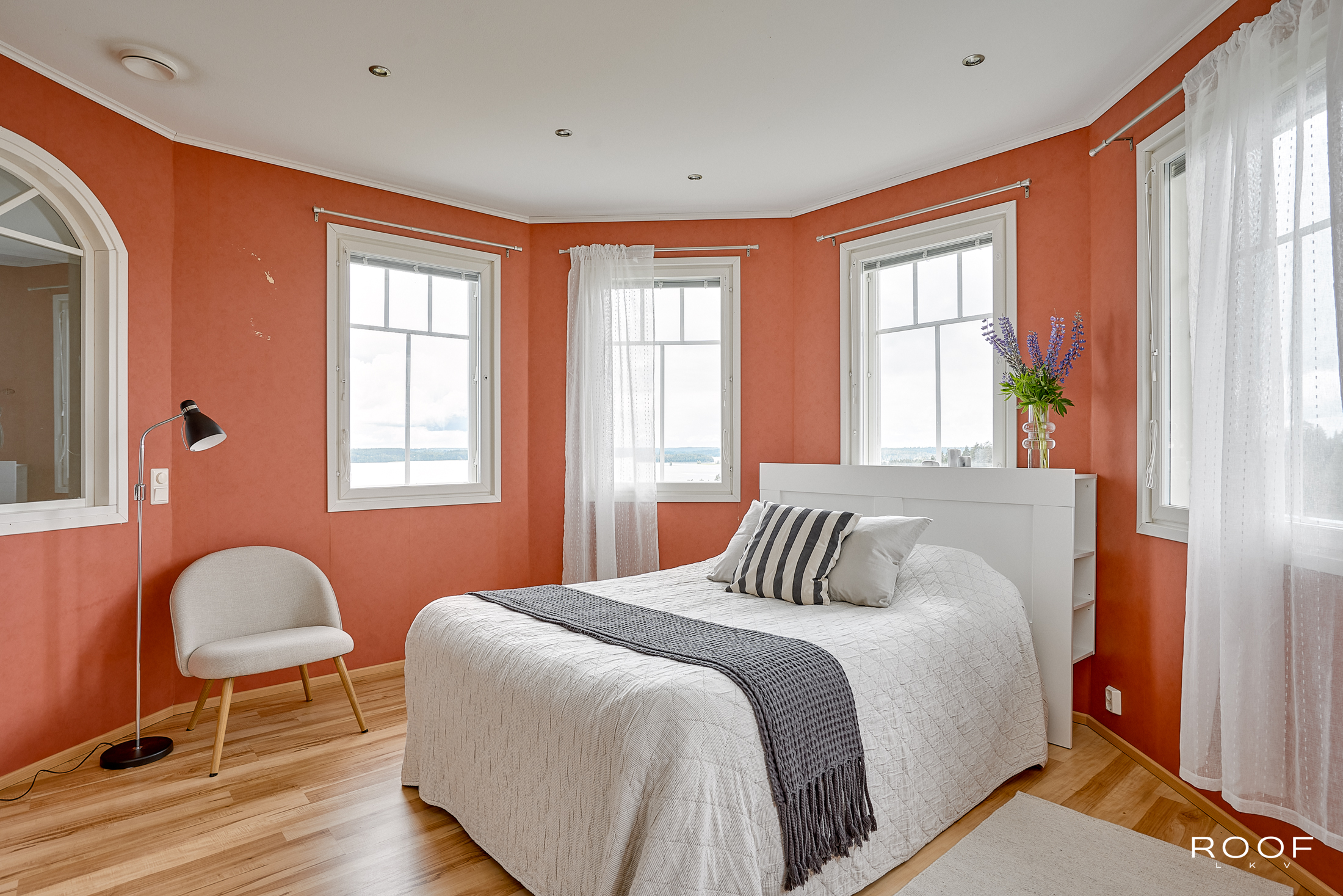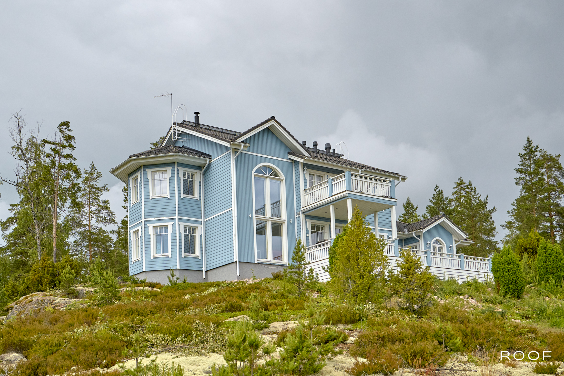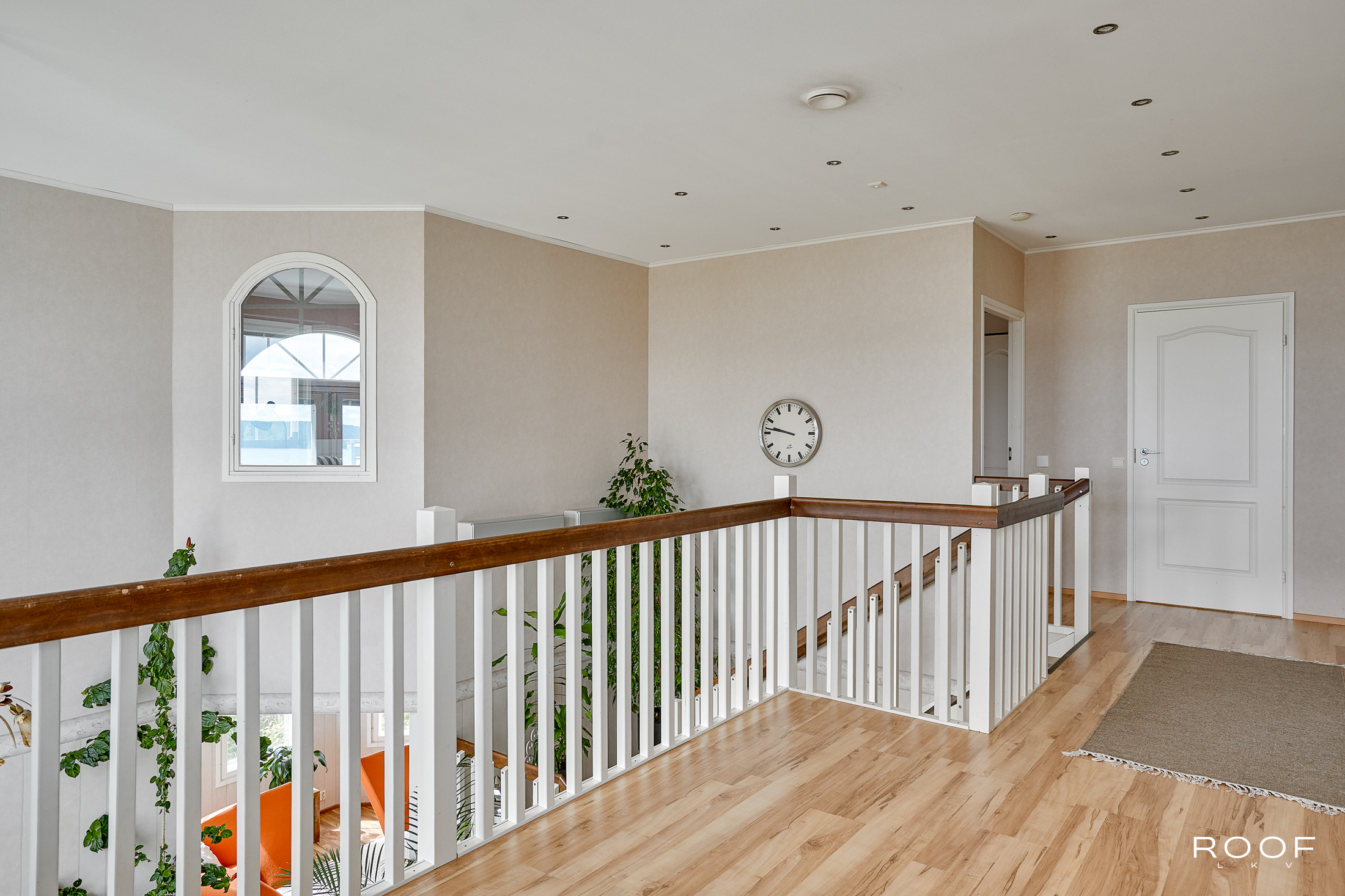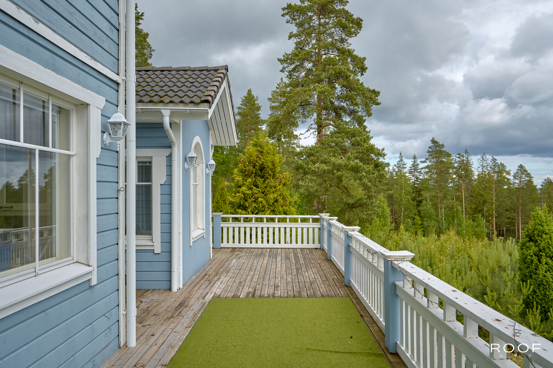Ainutlaatuinen kokonaisuus korkealla, 50 metriä korkean kallion laella Herrala Talojen arkkitehdin suunnittelema linnamainen omakotitalo, josta avautuvat henkeäsalpaavat näkymät yli Valkealan järvien.