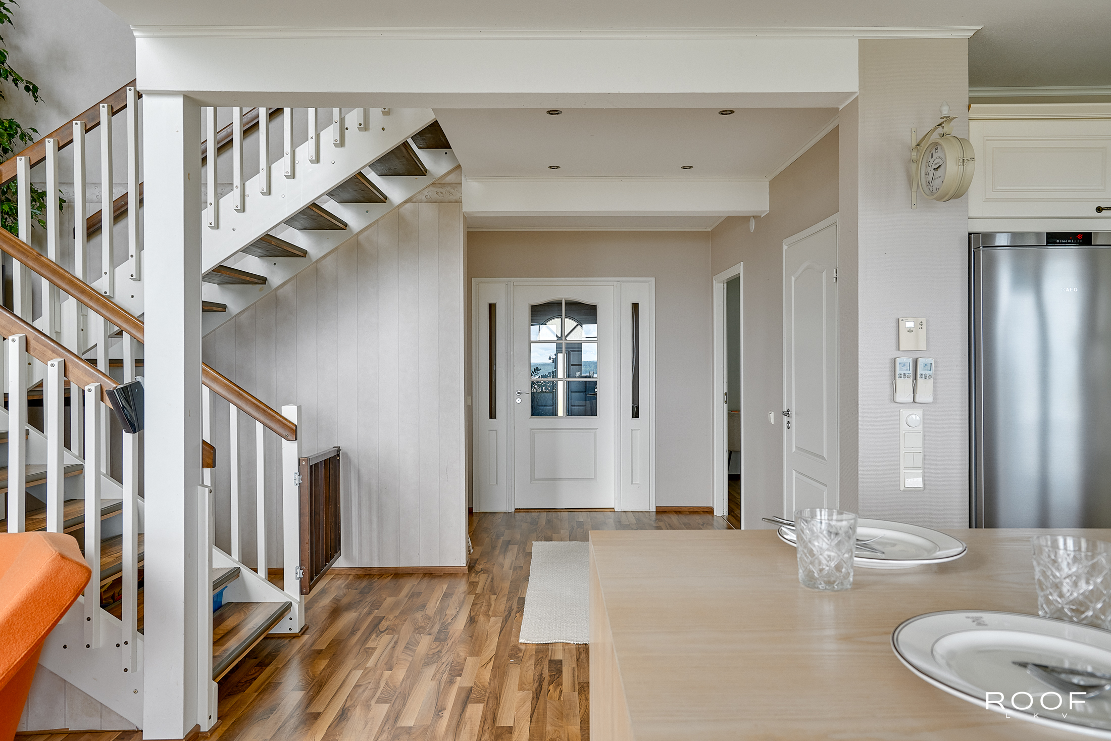 Laadukkaasti rakennettu ja huolella suunniteltu koti tarjoaa asumismukavuutta, tilaa ja rauhaa luonnon helmassa. Maalämpö sekä vesikiertoinen lattialämmitys molemmissa kerroksissa takaavat miellyttävän ja energiatehokkaan asumisen. Yläkerran valettu lattia varmistaa lämmön tasaisen jakautumisen koko talossa.