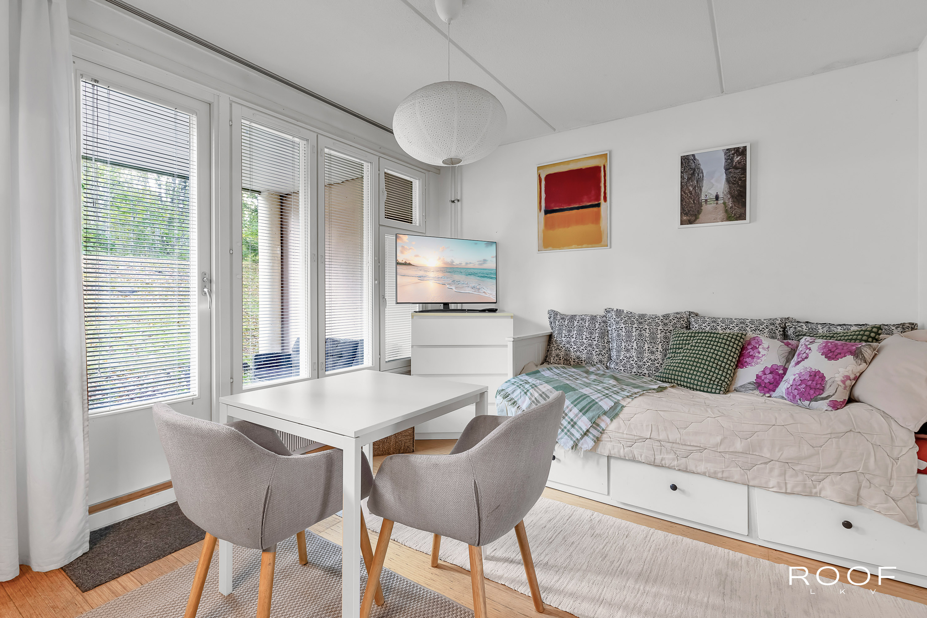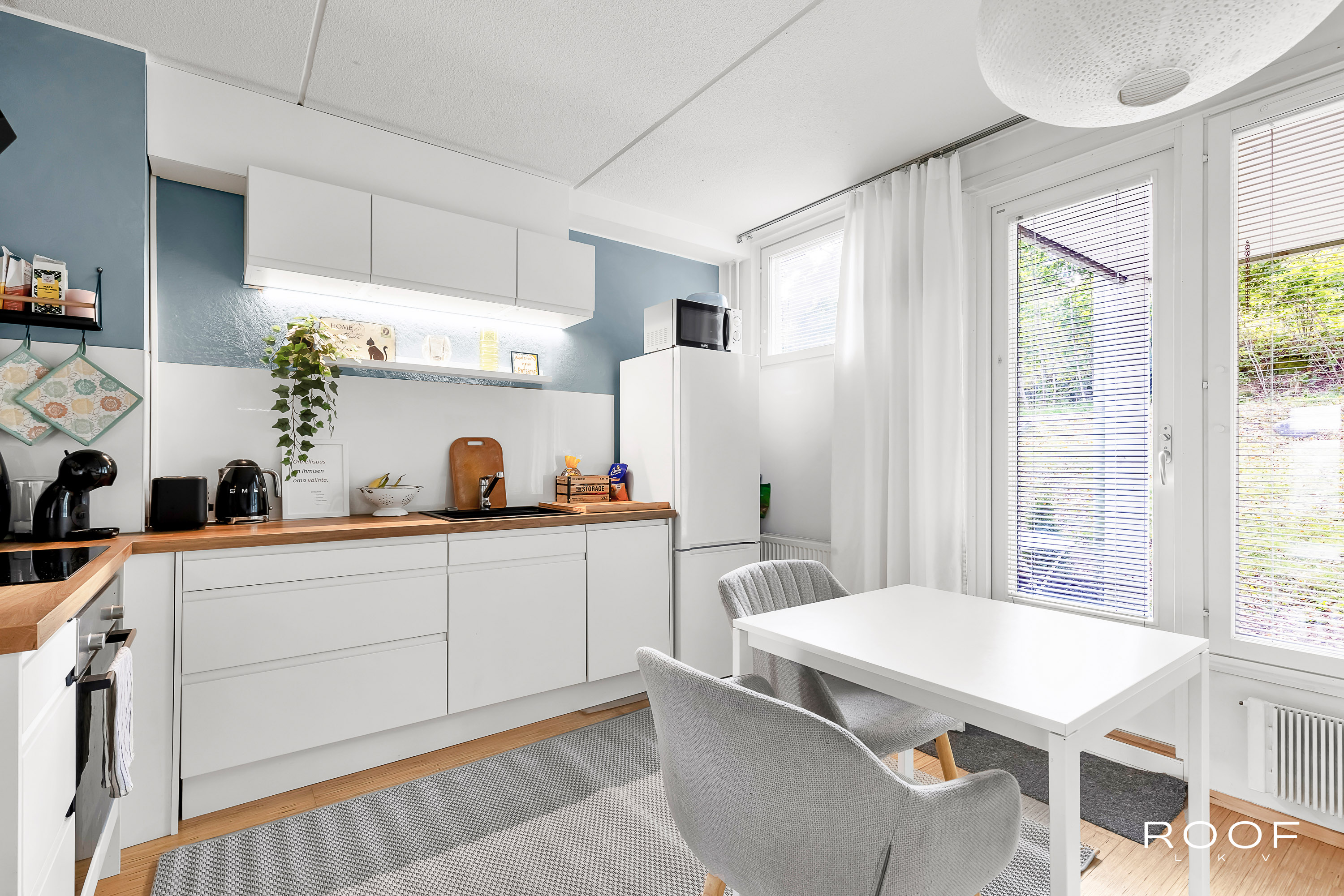 Makea, kompakti asunto omalla sisäänkäynnillään ja maaterassilla, rauhallisella sijainnilla hyvin hoidetussa taloyhtiössä Karjaan keskustassa. Keittiö ja kylpyhuone uusittu. Oma sauna! Asunnossa avoin keittiö/olohuone, makuuhuone sekä kylpyhuone ja sauna. Lämmitysmuotona maalämpö. Taloyhtiössä mm. käyttövesiputket ja ikkunat uusittu hiljattain. Takapihan parannus ”remontti” käynnissä taloyhtiössä, nopea ostaja voi vielä vaikuttaa terassiratkaisuihin ja istutuksiin.