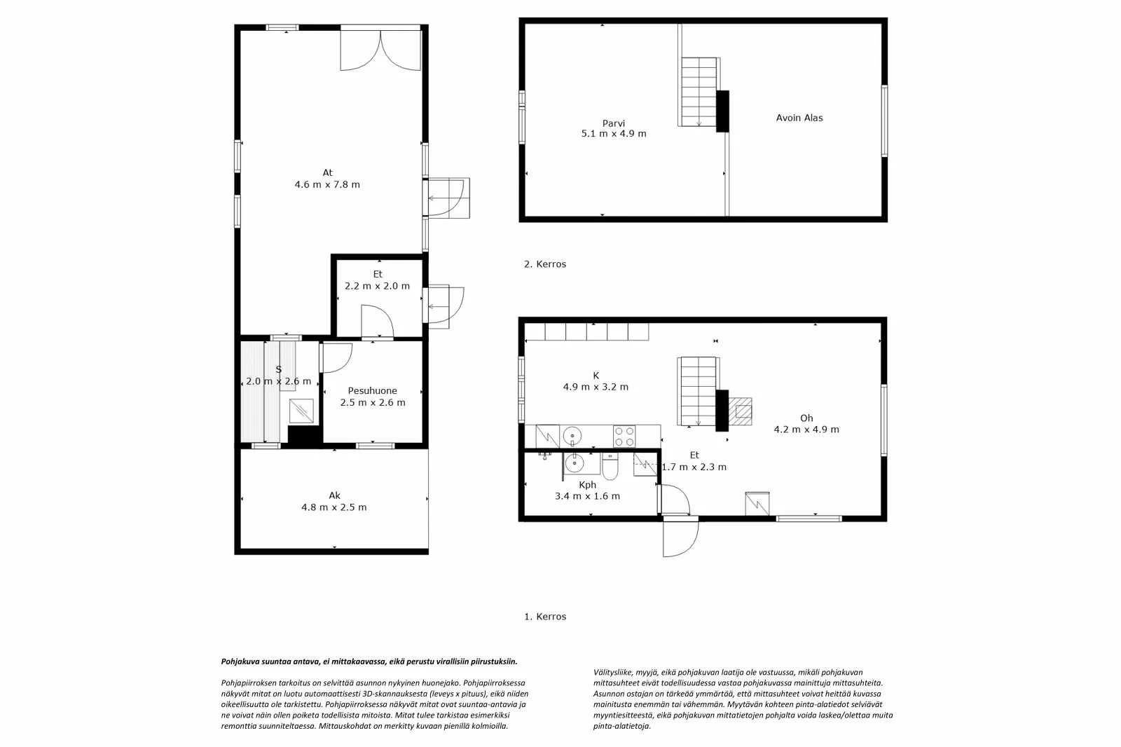 Oh, k, kph/wc, mh (parvi) + erillinen talousrakennus, jossa sauna,ak,autotalli/verstas/varastotilaa