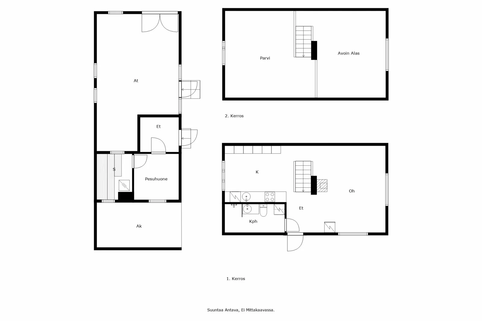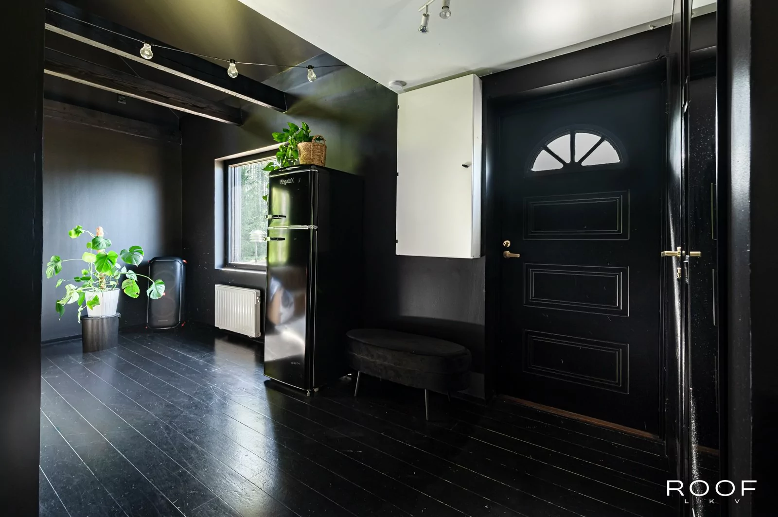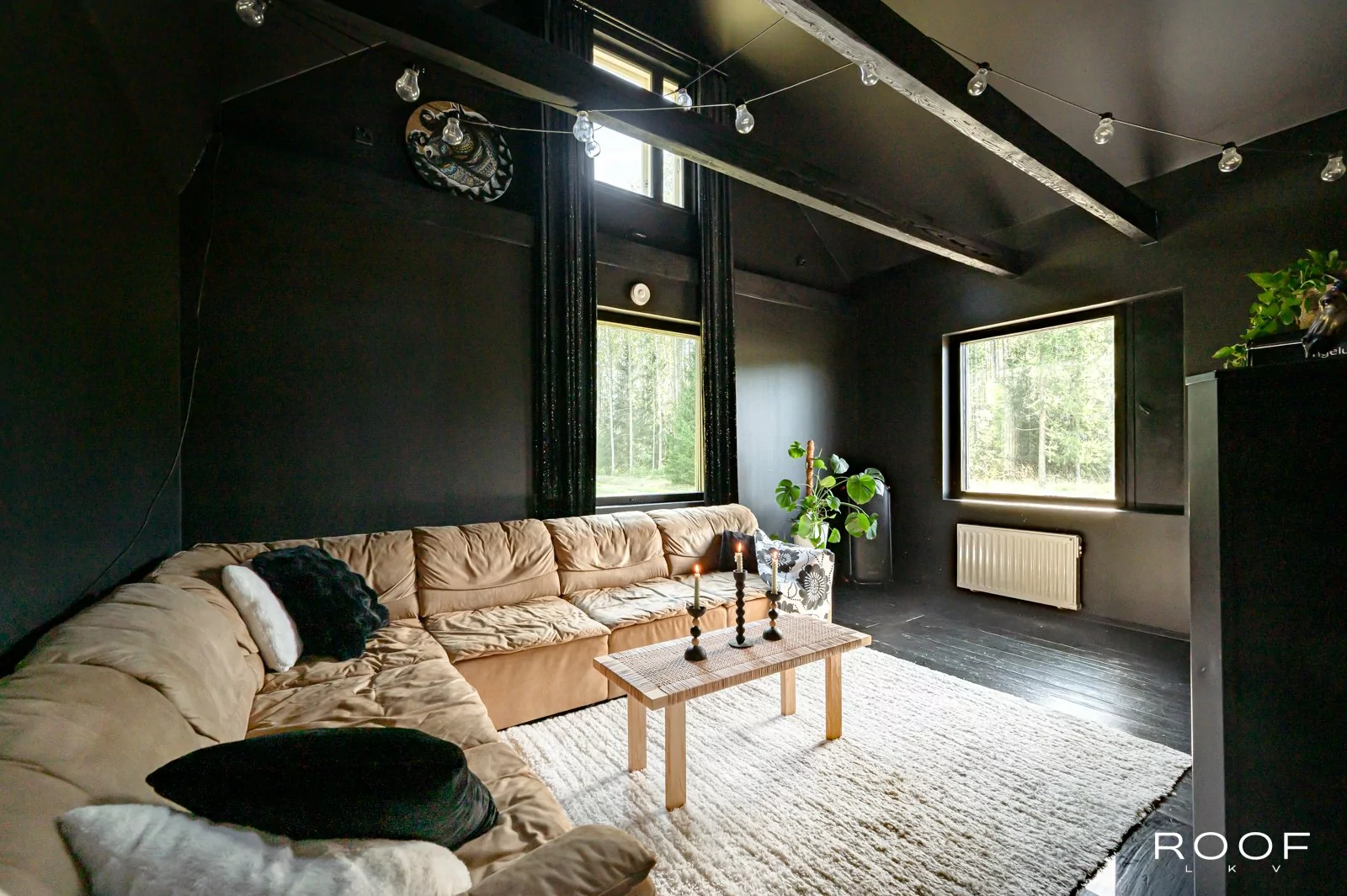 Tämä reilulla tuhannen neliön kiinteistökokonaisuudella 50-luvulla valmistunut soma pieni talo sopii hyvin niin yksin kuin kaksin asujalle. Talossa viihtyisyyttä luo avoin korkea olohuone, jonka sohvan nurkkaan on kiva käpertyä takkatulen loimua katsellen. 2016 uusitussa keittiössä on hyvin tilaa ruokapöydälle. Ylös parvelle johtaa tukevat portaat jonne saa nukkumapaikan.