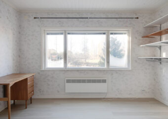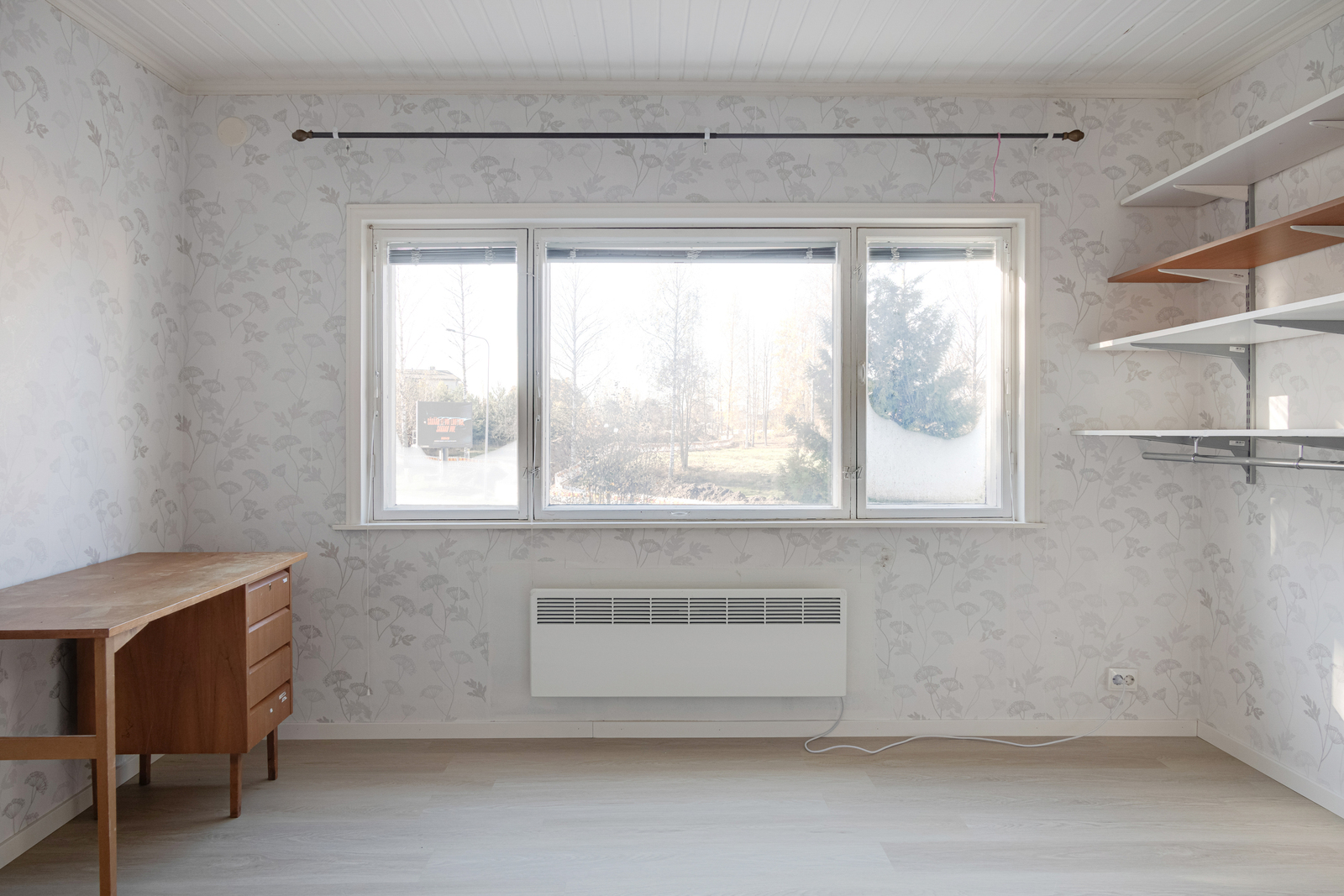 Sähkölämmityksen rinnalla uudehko pönttöuuni tuo miellyttävää lämpöä ja auttaa pitämään lämmityskulut kohtuullisina.