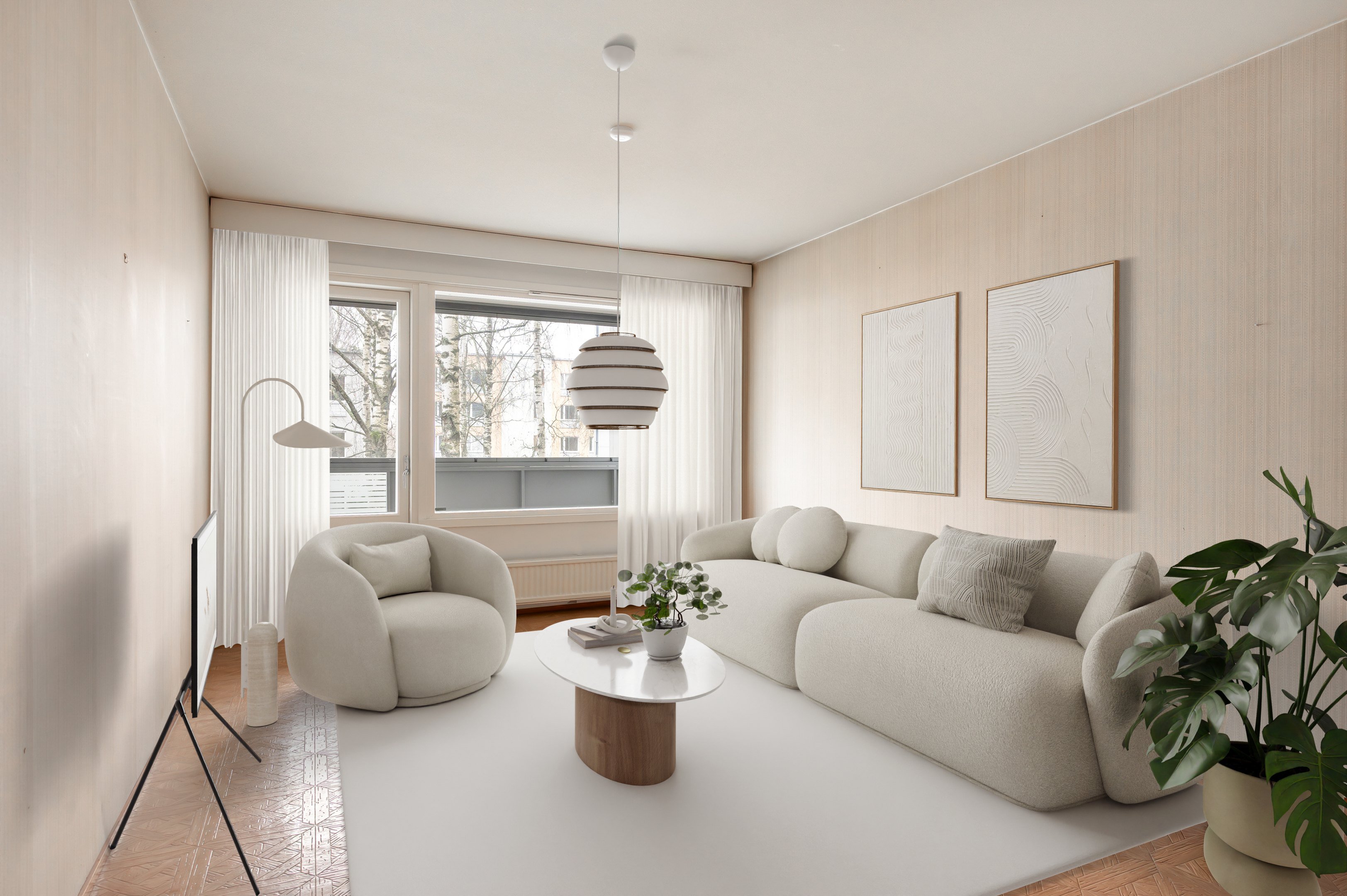 Taavetti Laitisen katu 3 Pikku Huopalahti, Helsinki 320 000 € 75 m2 3h, avok, kph, sauna, wc, lasitettu parveke kerrostalo , 1994