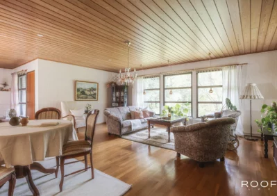 Santrankuja 4 Noormarkku, Pori 148 000 € 250 m2 3mh, oh, kph, s, k, ruokasali, uima-allas- ja takkahuone, 3x wc ja autokatos. omakotitalo , 1972